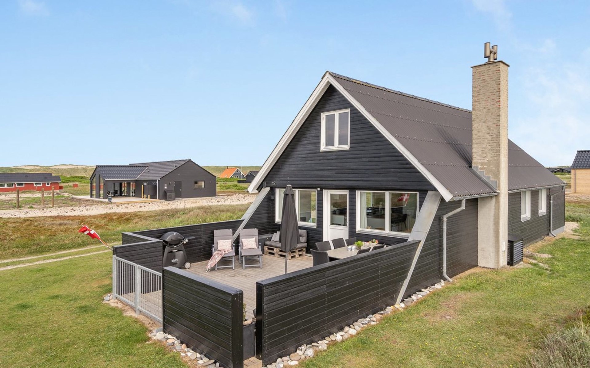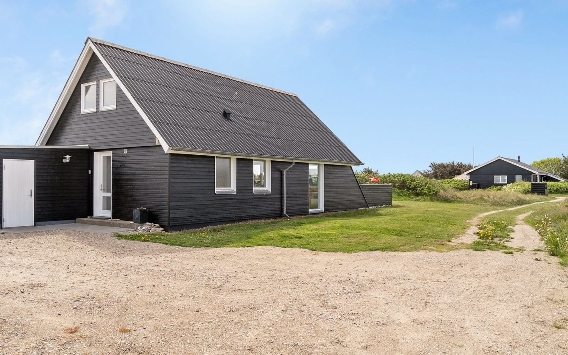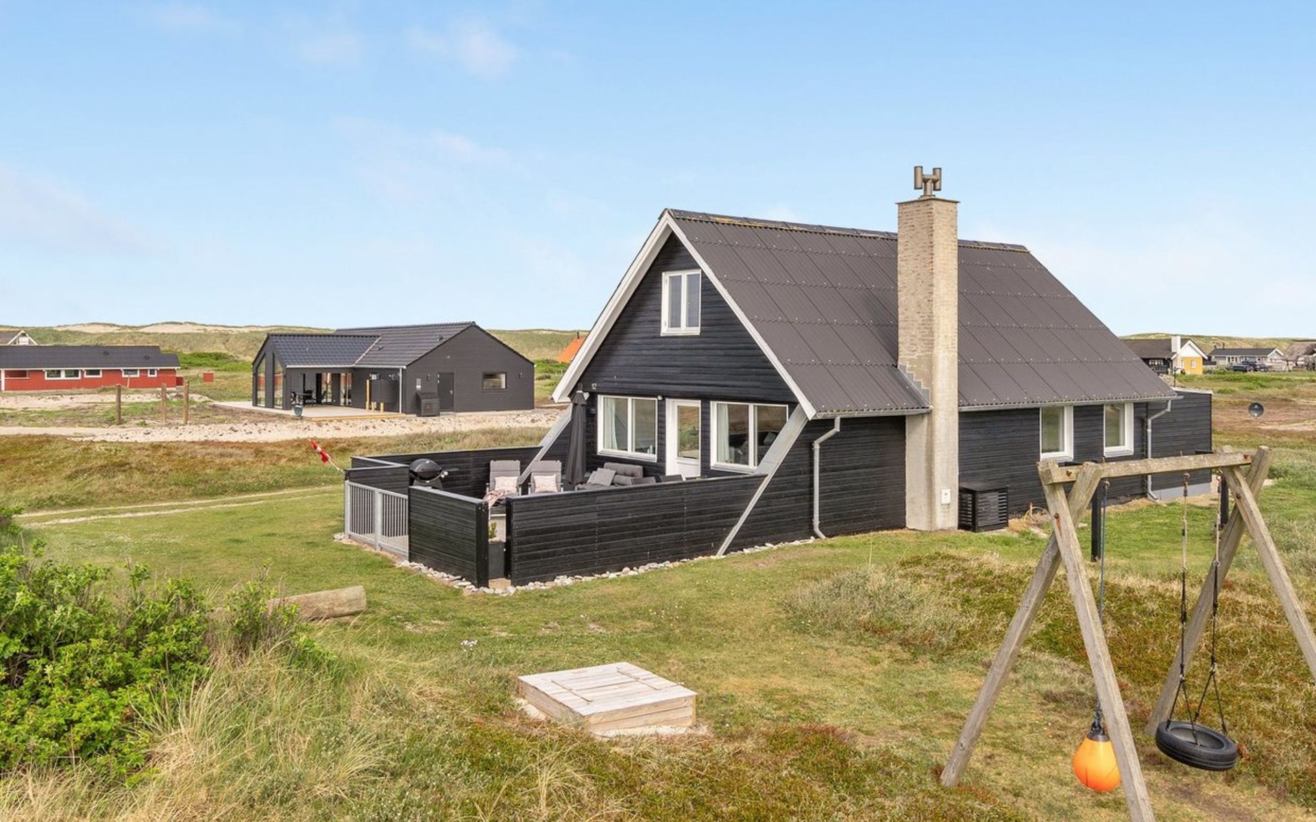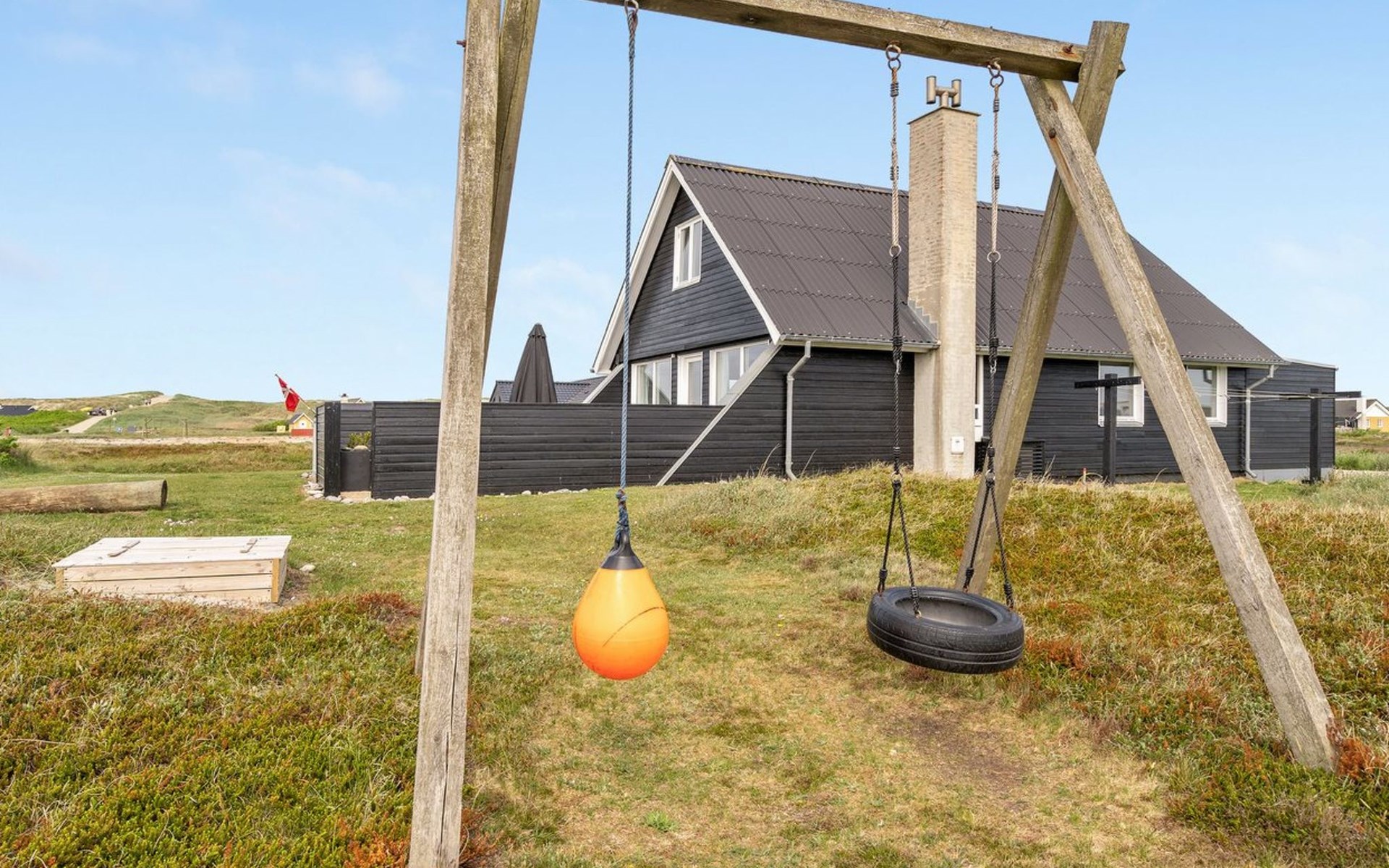 Einfamilienhaus, Baujahr 1972. 200 m vom Meer. Zur Alleinbenutzung: naturbelassenes Grundstück 2'500 m2. Terrasse (42 m2), Grill, Kinderspielplatz (Schaukel). Im Hause: Sauna, Waschmaschine. Parkplatz beim Haus. E-Ladestation. Lebensmittelgeschäft 500 m. Der Besitzer akzeptiert keine Jugendgruppen.