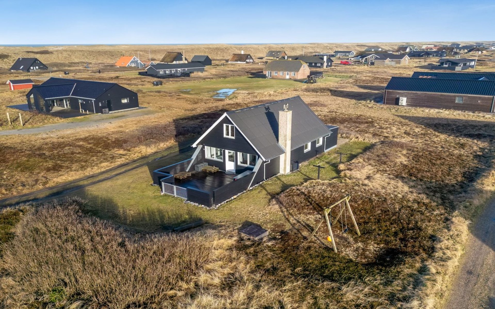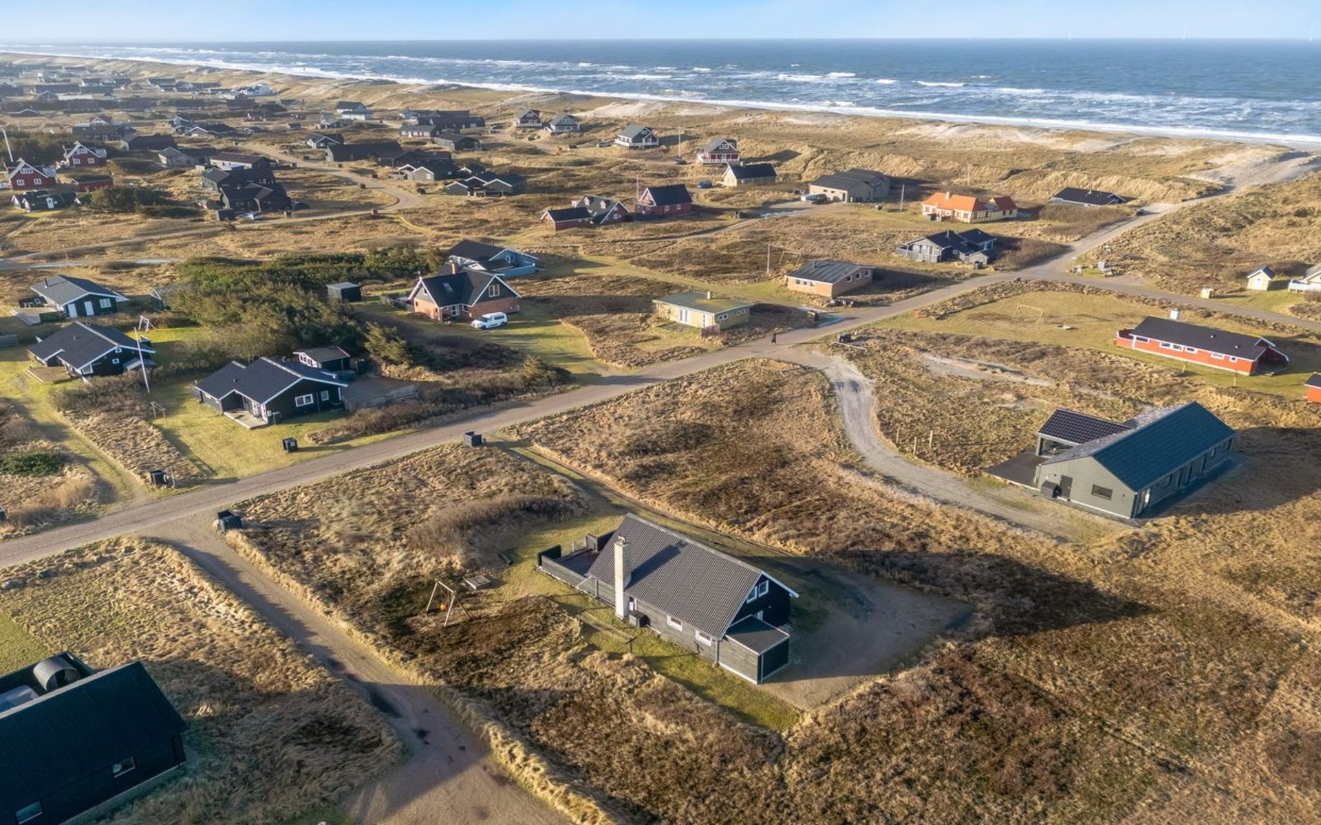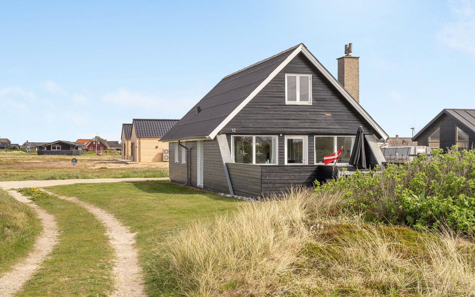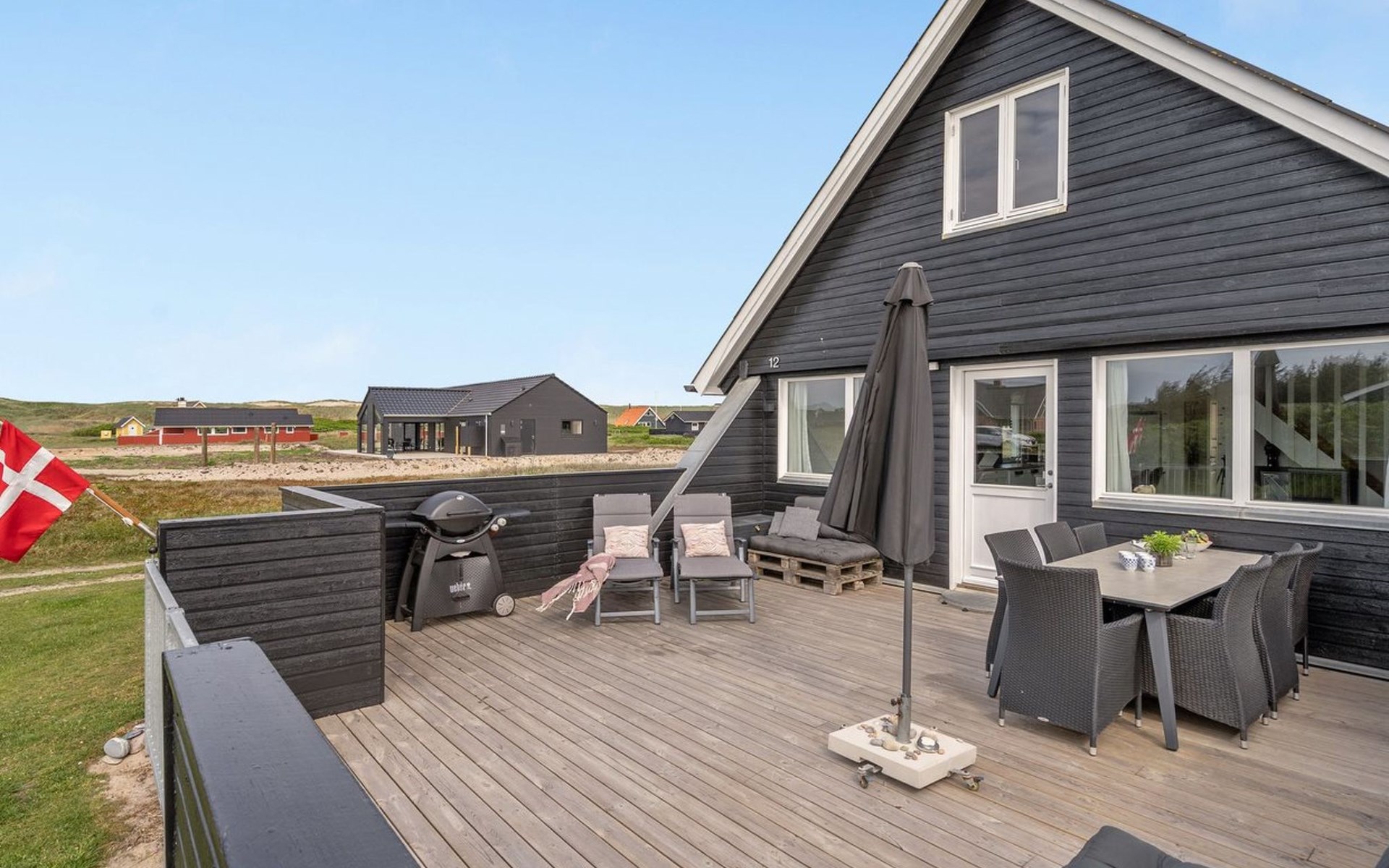 Einfamilienhaus, Baujahr 1972. 200 m vom Meer. Zur Alleinbenutzung: naturbelassenes Grundstück 2'500 m2. Terrasse (42 m2), Grill, Kinderspielplatz (Schaukel). Im Hause: Sauna, Waschmaschine. Parkplatz beim Haus. E-Ladestation. Lebensmittelgeschäft 500 m. Der Besitzer akzeptiert keine Jugendgruppen.