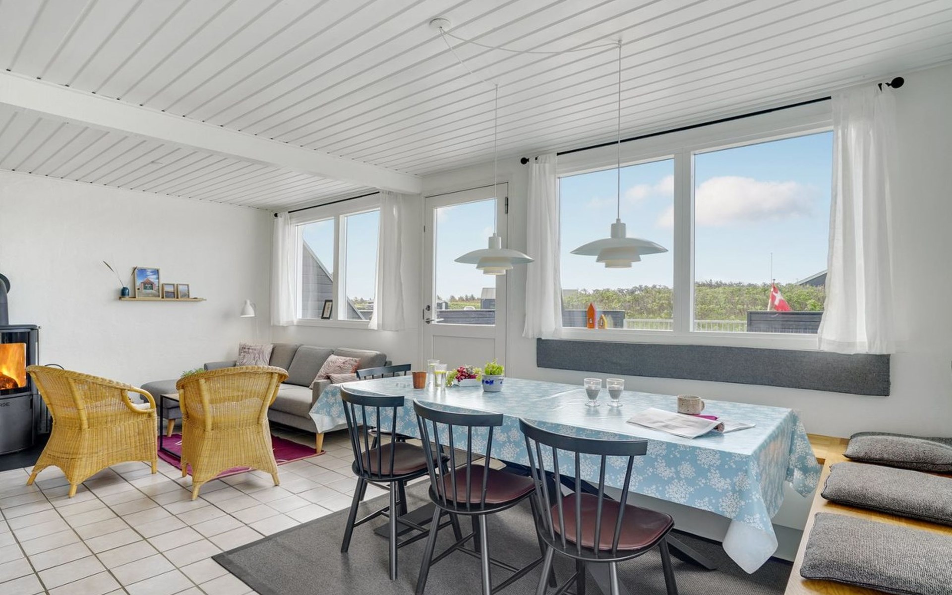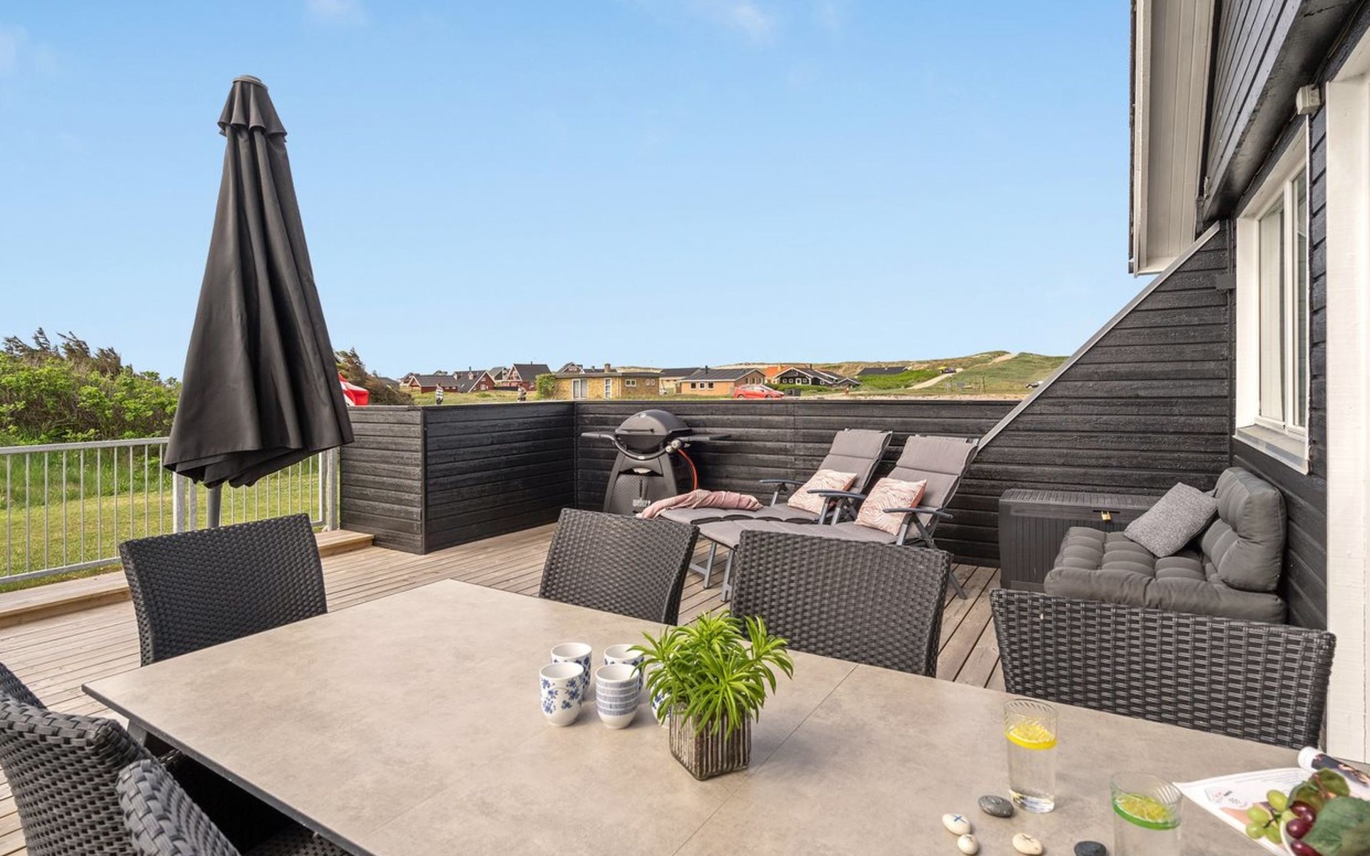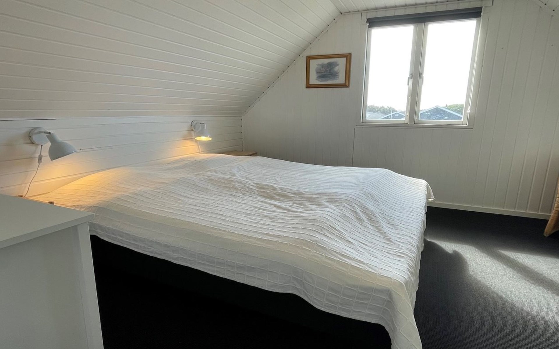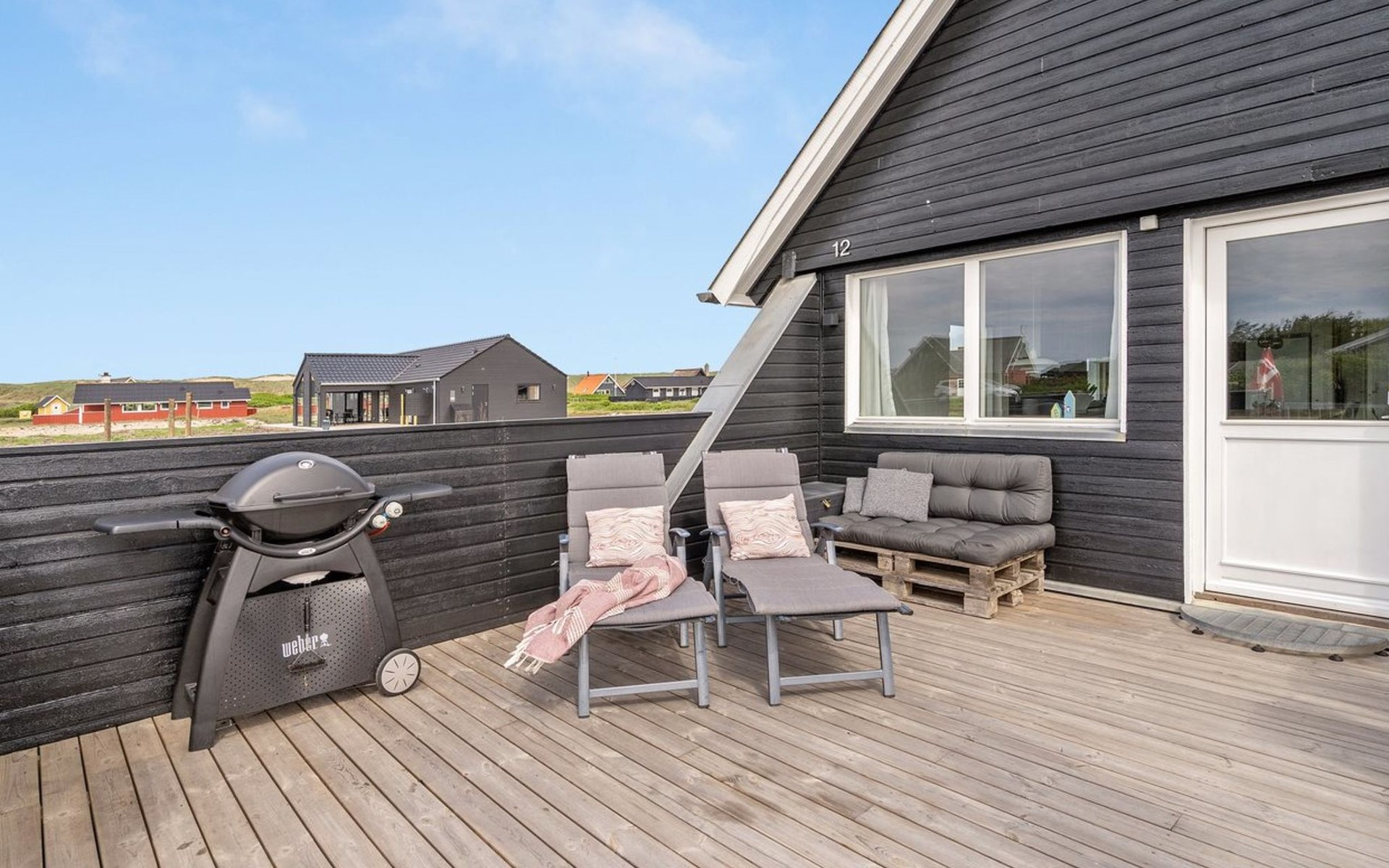 Einfamilienhaus, Baujahr 1972. 200 m vom Meer. Zur Alleinbenutzung: naturbelassenes Grundstück 2'500 m2. Terrasse (42 m2), Grill, Kinderspielplatz (Schaukel). Im Hause: Sauna, Waschmaschine. Parkplatz beim Haus. E-Ladestation. Lebensmittelgeschäft 500 m. Der Besitzer akzeptiert keine Jugendgruppen.