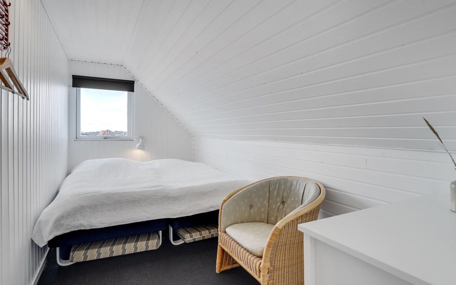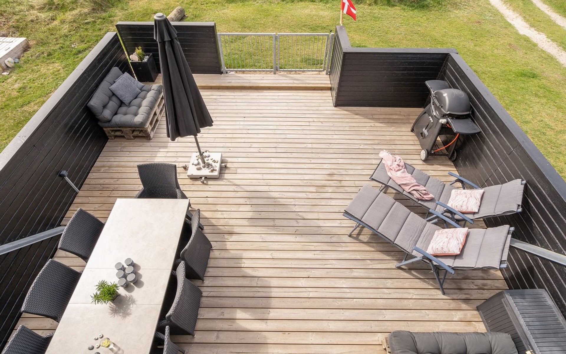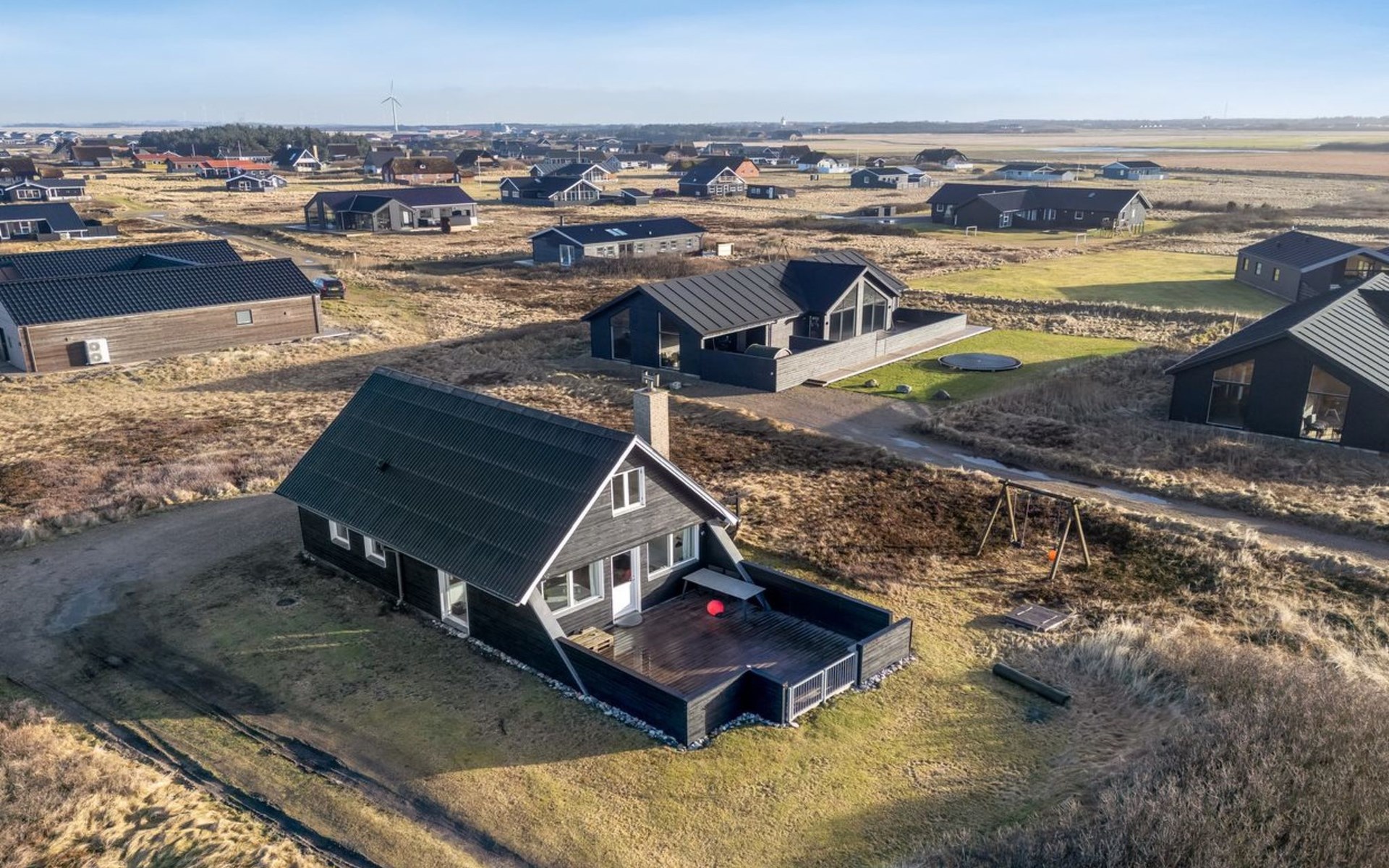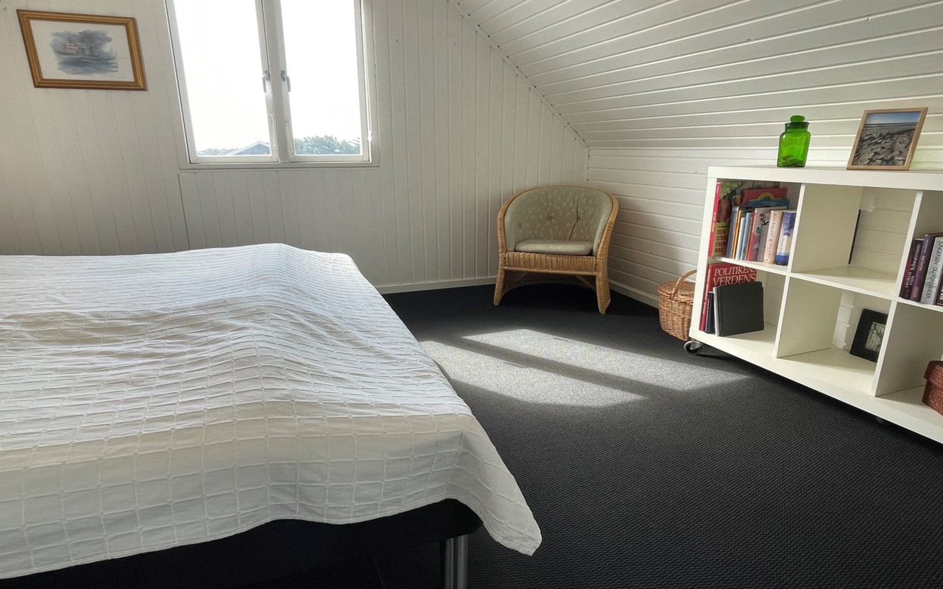 Einfamilienhaus, Baujahr 1972. 200 m vom Meer. Zur Alleinbenutzung: naturbelassenes Grundstück 2'500 m2. Terrasse (42 m2), Grill, Kinderspielplatz (Schaukel). Im Hause: Sauna, Waschmaschine. Parkplatz beim Haus. E-Ladestation. Lebensmittelgeschäft 500 m. Der Besitzer akzeptiert keine Jugendgruppen.