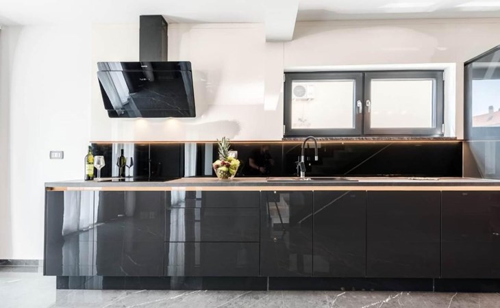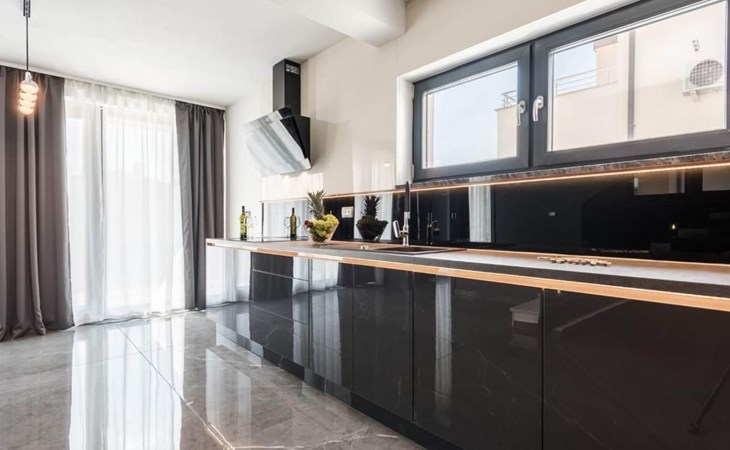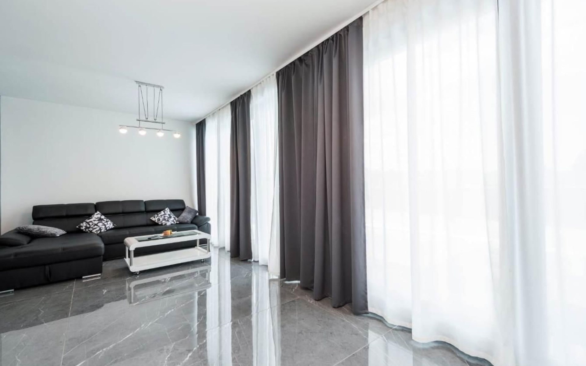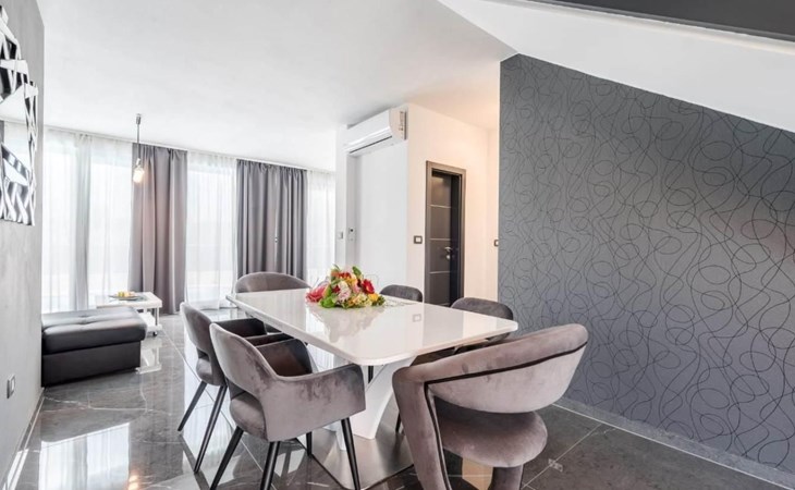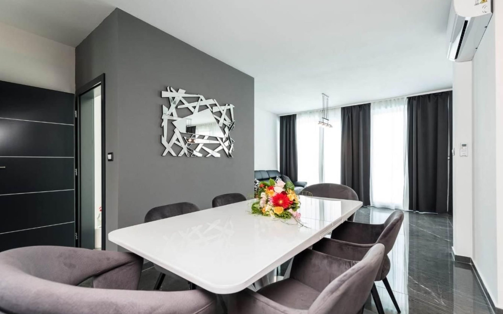 Außerdem können Sie sich auf dem gesamten Grundstück an einer erstaunlichen und sorgfältig ausgewählten Inneneinrichtung in Grautönen erfreuen, die dieser Villa einen zusätzlichen Hauch von anspruchsvollem Luxus verleiht. In der ersten Etage gibt es eine voll ausgestattete Küche, ein Esszimmer und ein geräumiges, modernes Wohnzimmer, das zum Entspannen und zum gemütlichen Beisammensein mit der Familie einlädt.