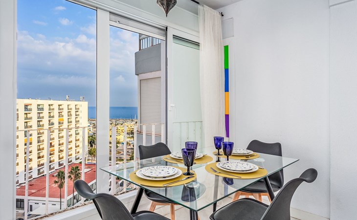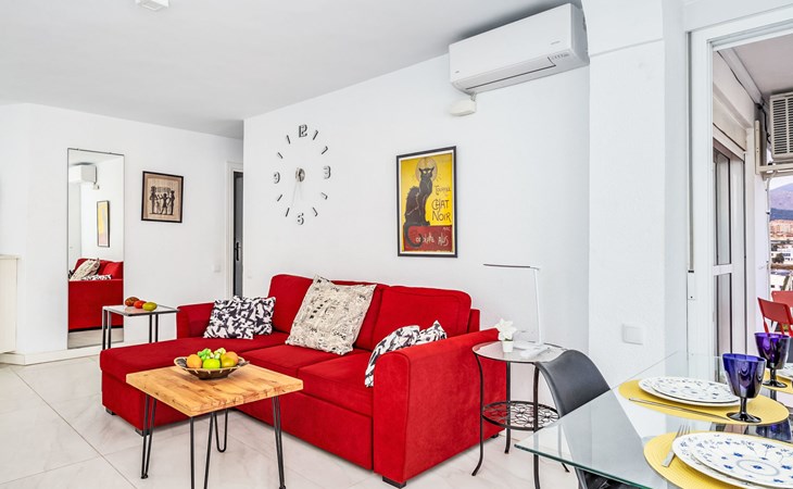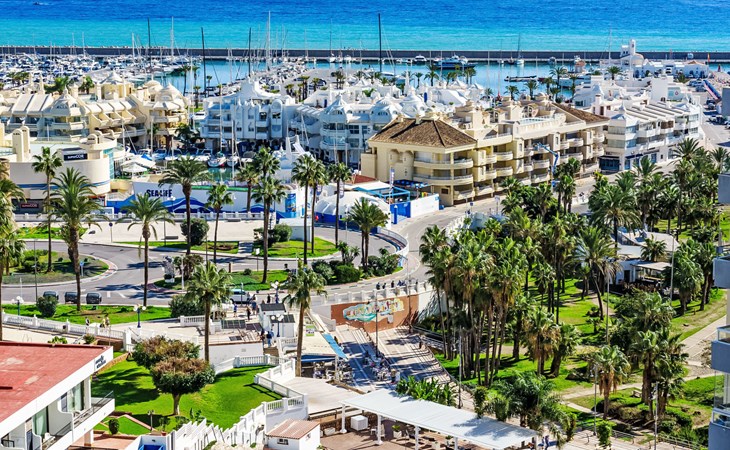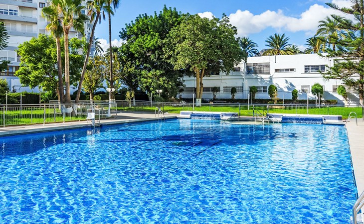 Puerto Marina: Gemütliches, komfortables Appartementhaus "Diana". Acceso paseo martimo por jardin, zentrale, belebte Lage, 50 m vom Meer, 50 m vom Strand, Strasse zu überqueren. Zur Mitbenutzung: Garten mit Rasen, Schwimmbad eckig (saisonale Verfügbarkeit: 01.Jul. - 01.Sep.). Dusche/WC im Poolbereich. Im Hause: Empfang, Restaurant, Fahrstuhl. Einkaufsgeschäft, Lebensmittelgeschäft, Supermarkt, Bar, Café, Bushaltestelle 50 m, Bahnstation 2 km, Sandstrand 50 m. Sporthafen 100 m, Jacht-Hafen, Surfschule, Segelschule 100 m, Luftseilbahn 5 km. Nahe gelegene Sehenswürdigkeiten: Puerto Marina 50 m, Sea Life 50 m, Selwoo Marina 2 km, Malaga 20 km, Marbella 20 km. Objekt geeignet für 2 Erwachsene + 2 Kinder.