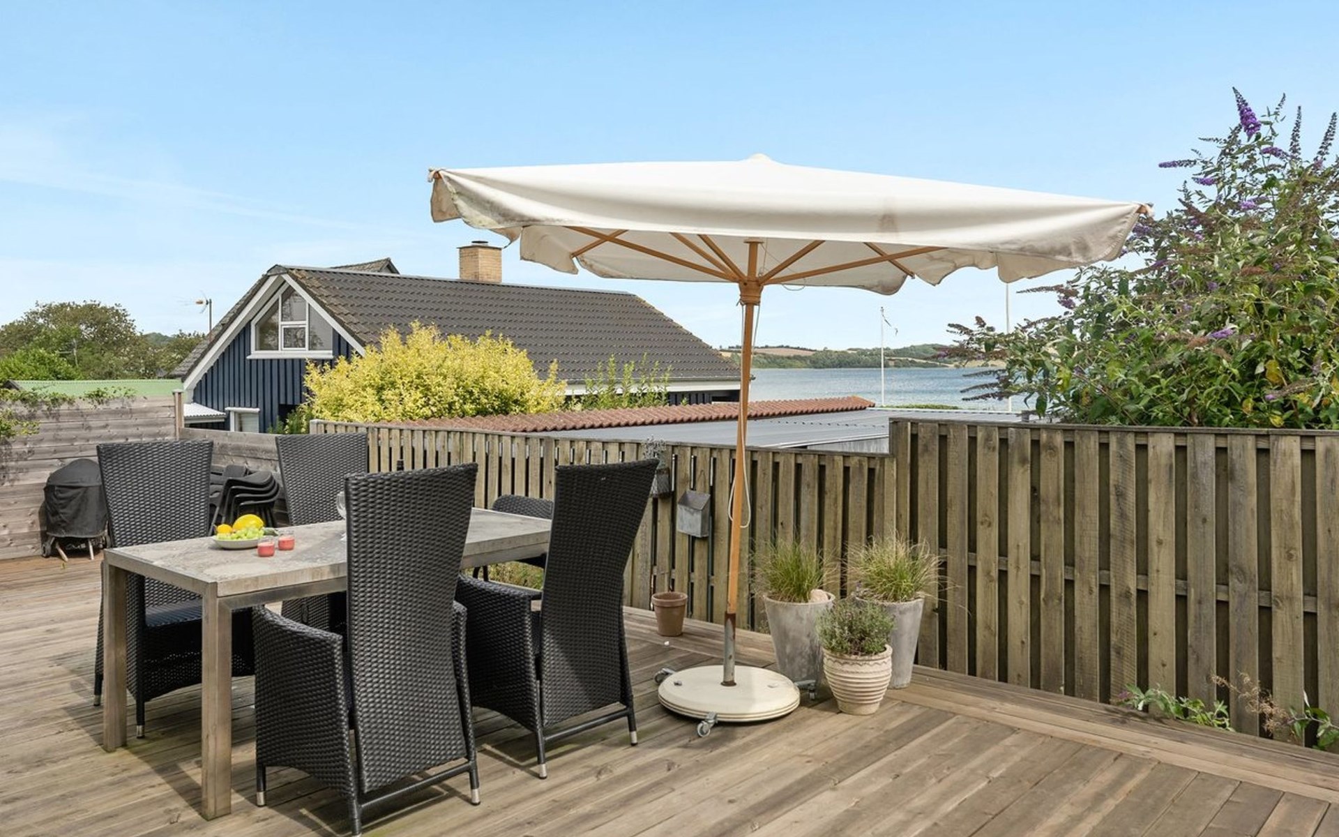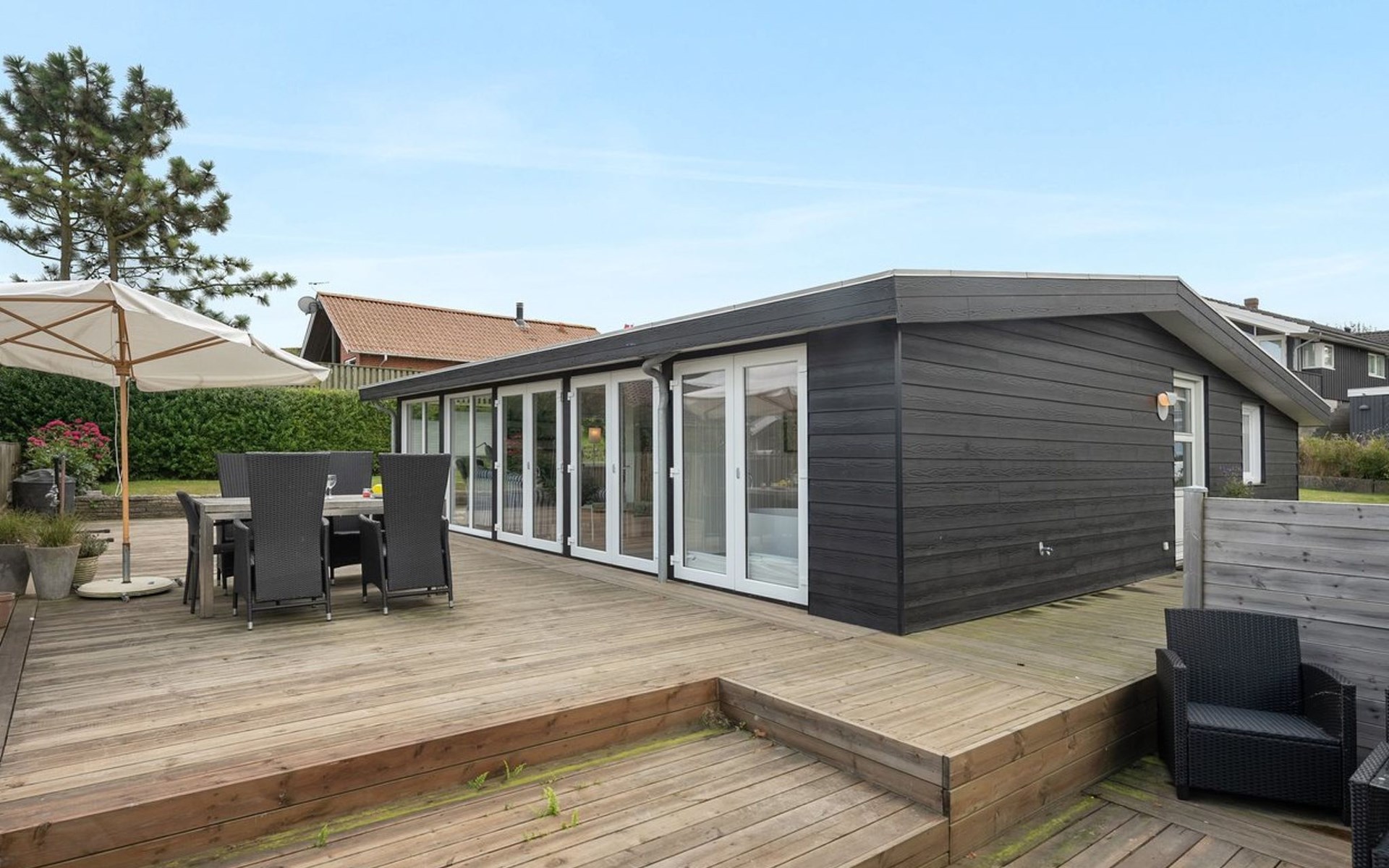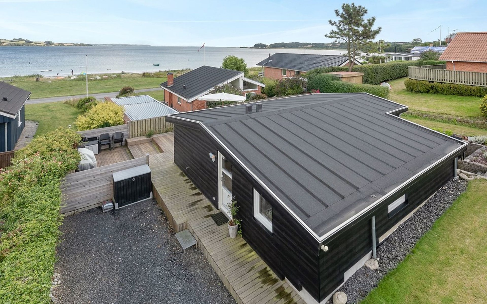 Einfamilienhaus, Baujahr 1957. 100 m vom Meer. Zur Alleinbenutzung: Grundstück 404 m2, gepflegter Garten. Terrasse (100 m2), Grill, Parkplatz beim Haus. Lebensmittelgeschäft 2.1 km.
