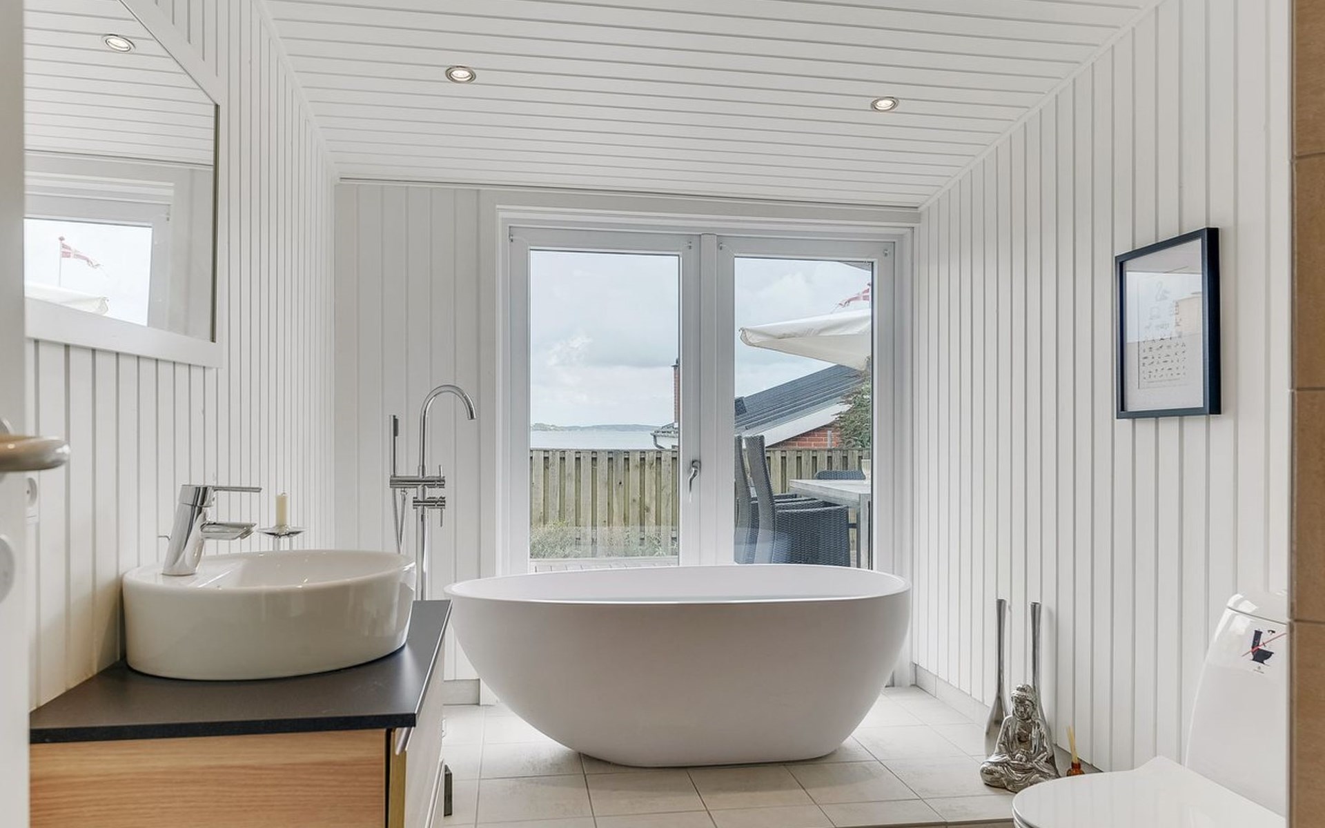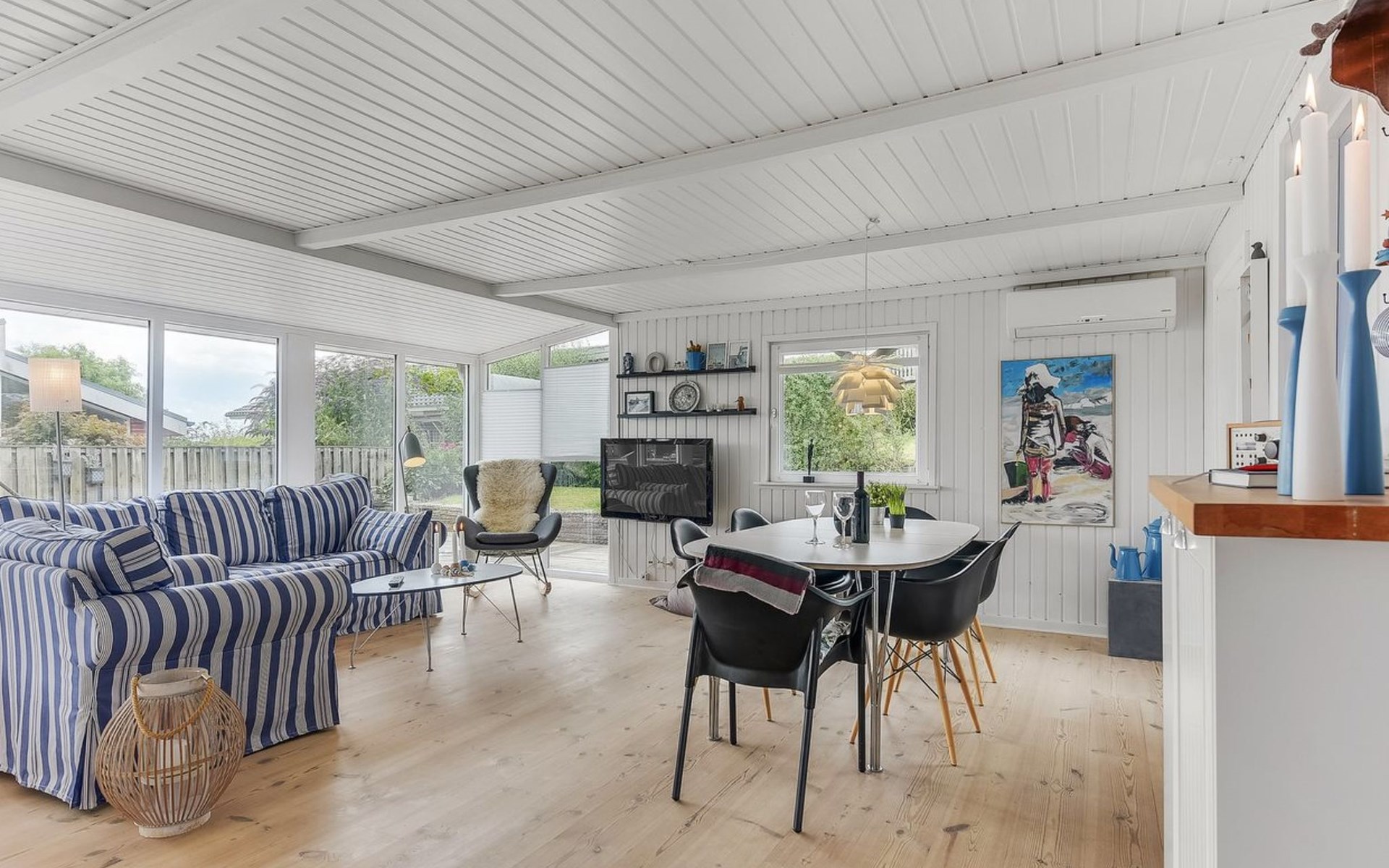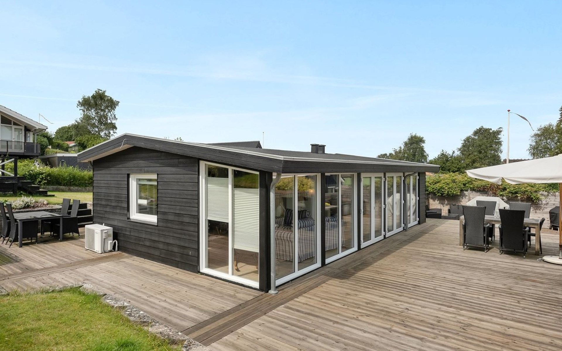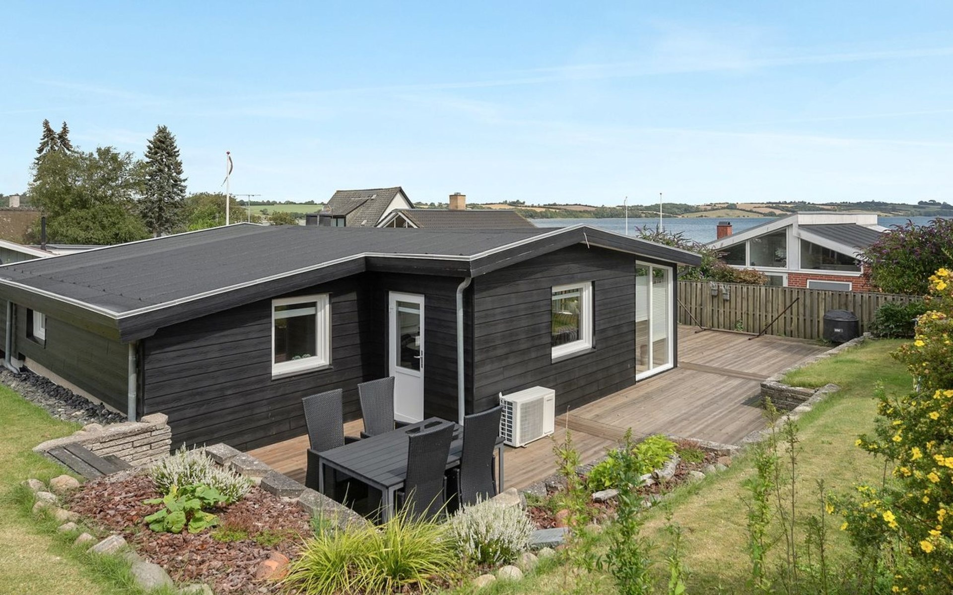 Einfamilienhaus, Baujahr 1957. 100 m vom Meer. Zur Alleinbenutzung: Grundstück 404 m2, gepflegter Garten. Terrasse (100 m2), Grill, Parkplatz beim Haus. Lebensmittelgeschäft 2.1 km.