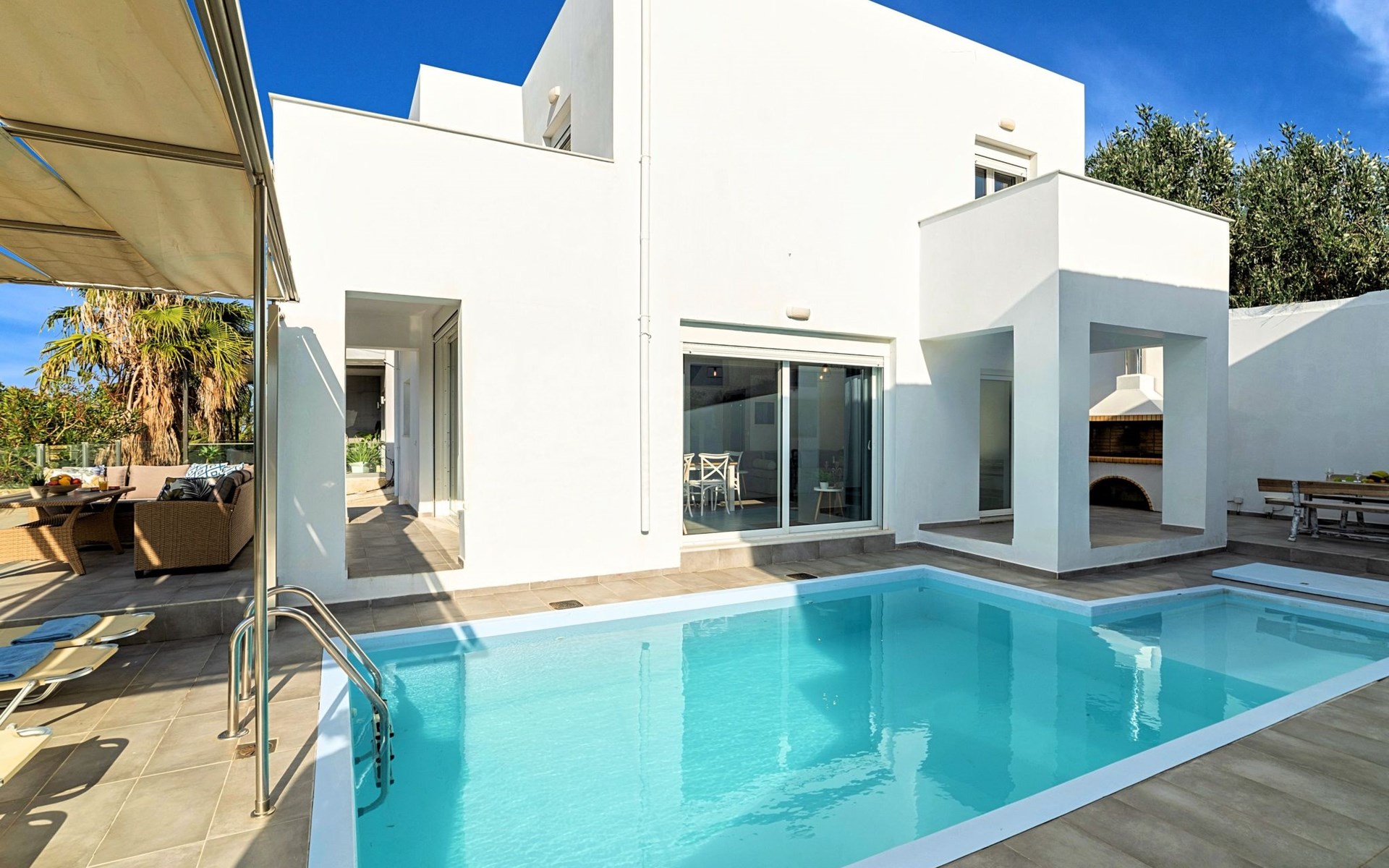 Die Cretan Sunset Villa verfügt über folgende Einrichtungen: Erdgeschoss● Ein Wohnzimmer mit einem großen Schlafsofa und zwei Sesseln/Betten, das Platz für bis zu 4 Personen bietet ● Eine voll ausgestattete Küche mit Backofen, Kühlschrank, Mikrowelle, Geschirrspüler, Waschmaschine, Wäschetrockner, Kaffeemaschine, Teezubehör und Saftpresse● Eine Essecke mit Fernseher● Ein großes Badezimmer mit Dusche.● Zwei geräumige Terrassen, beide mit Essbereich, Liegen und Sonnenschirmen und Außendusche.● Ein großer Grill● Ein beheizter Swimmingpool.Obergeschoss● Ein Badezimmer● Drei Schlafzimmer, jedes mit einem Balkon. Zwei der drei Schlafzimmer bieten zwei zusammengeschobene Einzelbetten, das dritte Schlafzimmer zwei Einzelbetten.● Klimaanlage in allen Bereichen● Kostenloser WiFi-Internetzugang● Bügeleisen und Bügelbrett● Haartrockner● Feine Bettwäsche und Handtücher● Toilettenartikel● Safe● Sonnenliegen● Babybett● Hochstuhl● Handtücher/Bettwäsche, Reinigung - alle 3 oder 4 Tage ● Kostenloser Parkplatz ● GrillCretan Sunset Villa bietet folgende Einrichtungen:Erdgeschoss● Ein Wohnzimmer mit einem großen Schlafsofa und zwei Sesseln/Betten.Das Wohnzimmer bietet Platz für bis zu 4 Personen.● Eine voll ausgestattete Küche mit Backofen, Kühlschrank, Mikrowelle, Geschirrspüler, Waschmaschine, Trockner, Kaffeemaschine, Teekocher und Saftpresse.● Eine Essecke mit TV-Gerät● Ein großes Badezimmer mit Dusche.● Zwei große Terrassen, beide mit Essbereich, Sonnenliegen und Sonnenschirmen und Außendusche.● Ein großer Grill● Ein beheizter Swimmingpool.Obergeschoss● Ein Badezimmer● Drei Schlafzimmer, jedes mit einem Balkon. Zwei der drei Schlafzimmer verfügen über zwei zusammengeschobene Einzelbetten, das dritte über zwei Einzelbetten.● Klimaanlage in allen Bereichen● Kostenloser WiFi-Internetzugang● Bügeleisen und Bügelbrett● Haartrockner● Feine Bettwäsche und Handtücher● Toilettenartikel● Safe● Sonnenliegen● Babybett● Hochstuhl● Handtücher/Bettwäsche, Reinigung - alle 3 oder 4 Tage ● Kostenloser Parkplatz ● BBQ