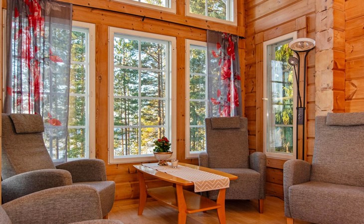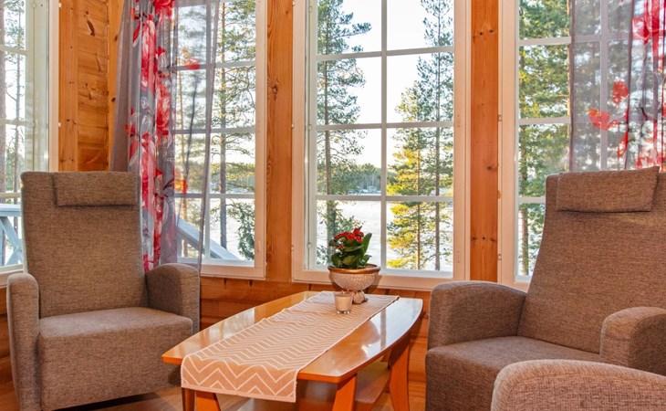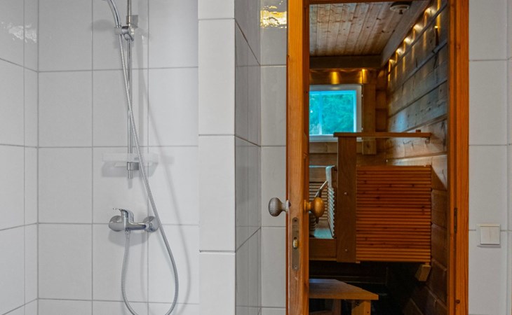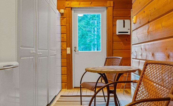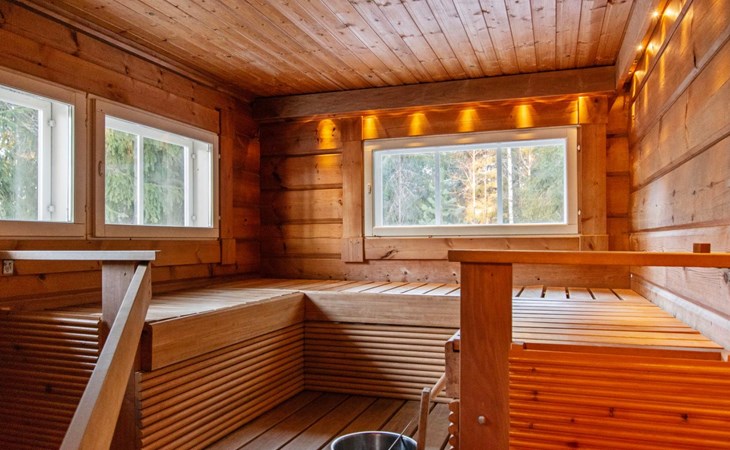 The only neighbor is 30 m away, the owner's other cabin, 17312 Näsinjoutsen. Together, these two neighboring cabins can accommodate groups of up to 15 people.