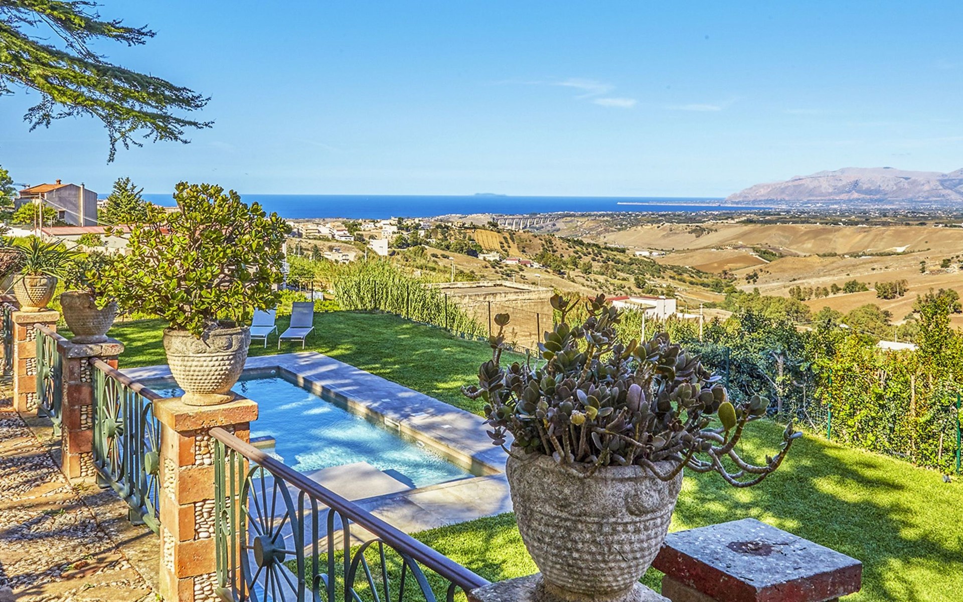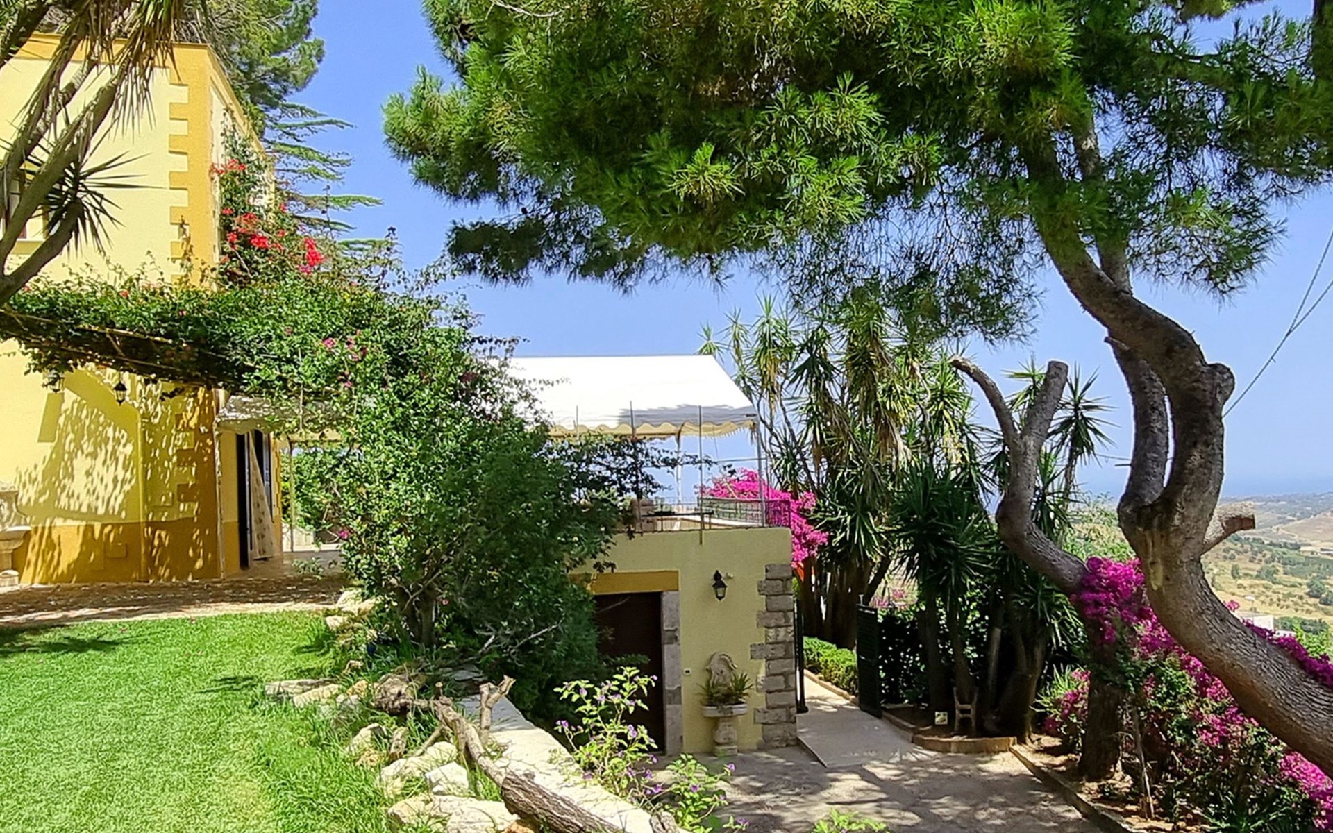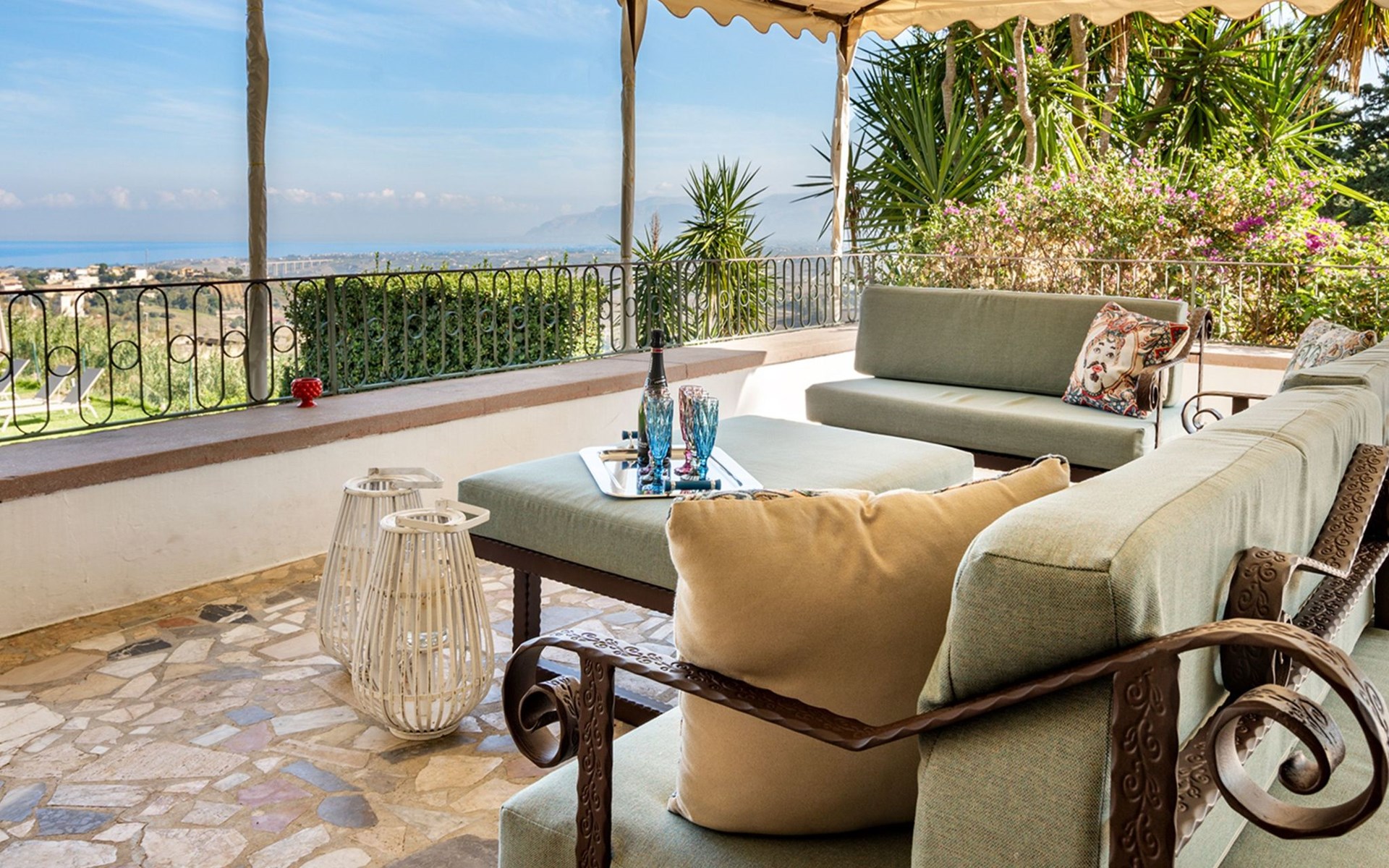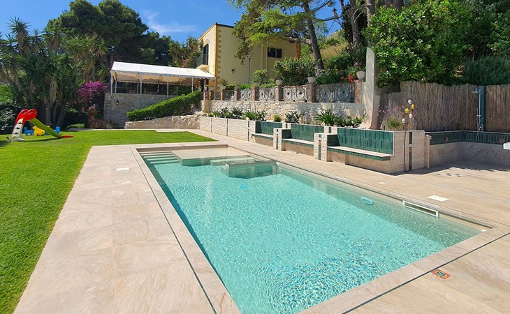 Spektakulär ist die große Terrasse mit einem herrlichen Blick auf den Golf von Castellammare und, an klaren Tagen, auf die Insel Ustica.