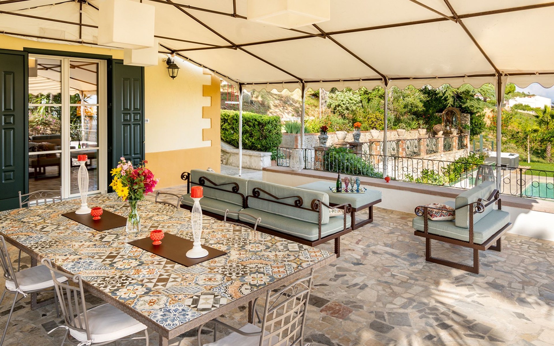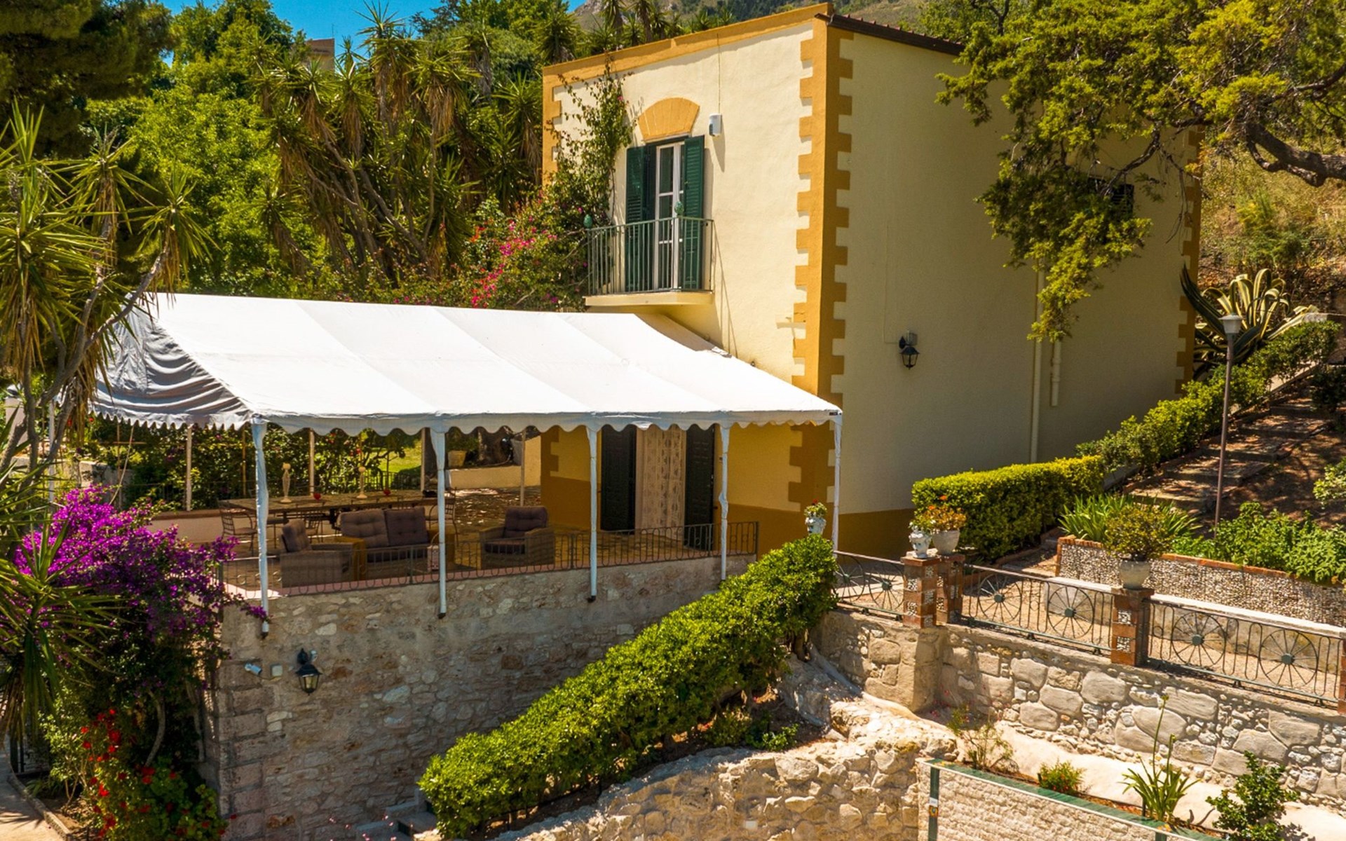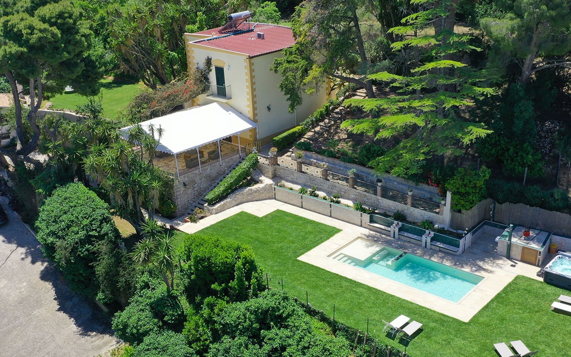 Spektakulär ist die große Terrasse mit einem herrlichen Blick auf den Golf von Castellammare und, an klaren Tagen, auf die Insel Ustica.
