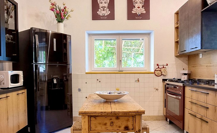 Die Villa Tommaso Maruggi besteht aus einem Erdgeschoss mit einem Wohnzimmer mit zwei großen Schlafsofas, einer Küche, einem Bad mit Dusche und einer großen Terrasse; im ersten Stock befinden sich zwei Schlafzimmer mit Doppelbetten, zwei Schlafzimmer mit je zwei Einzelbetten (insgesamt 8 Betten) und zwei Bäder mit Hydromassage-Duschen. Alle vier Schlafzimmer haben einen Blick auf den umliegenden grünen Wald und Garten. Das Haus ist mit Stilmöbeln eingerichtet, ausgestattet mit Bose-Musikanlage, Klimaanlage, Waschmaschine, Geschirrspüler, Küche, Geschirr, Backofen, Kühlschrank, Fernseher, Bügeleisen und Bügelbrett, Liegestühlen, Kaffeemaschine, Wasserkocher, Tischen, Stühlen und Lounge im Freien, Rutsche und Schaukel für die Kinder, Grill und Außendusche. Warmwasser wird durch eine Photovoltaikanlage bereitgestellt.