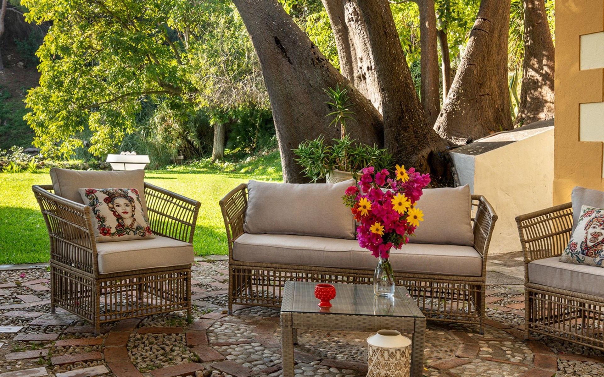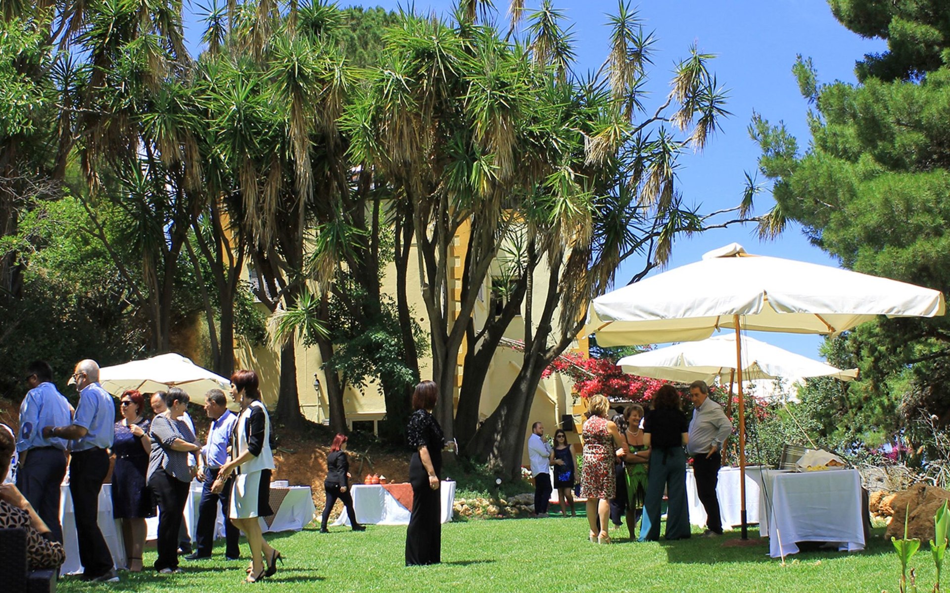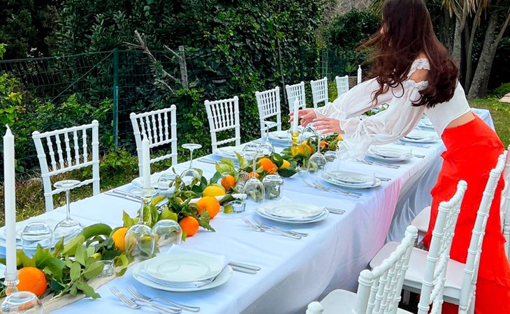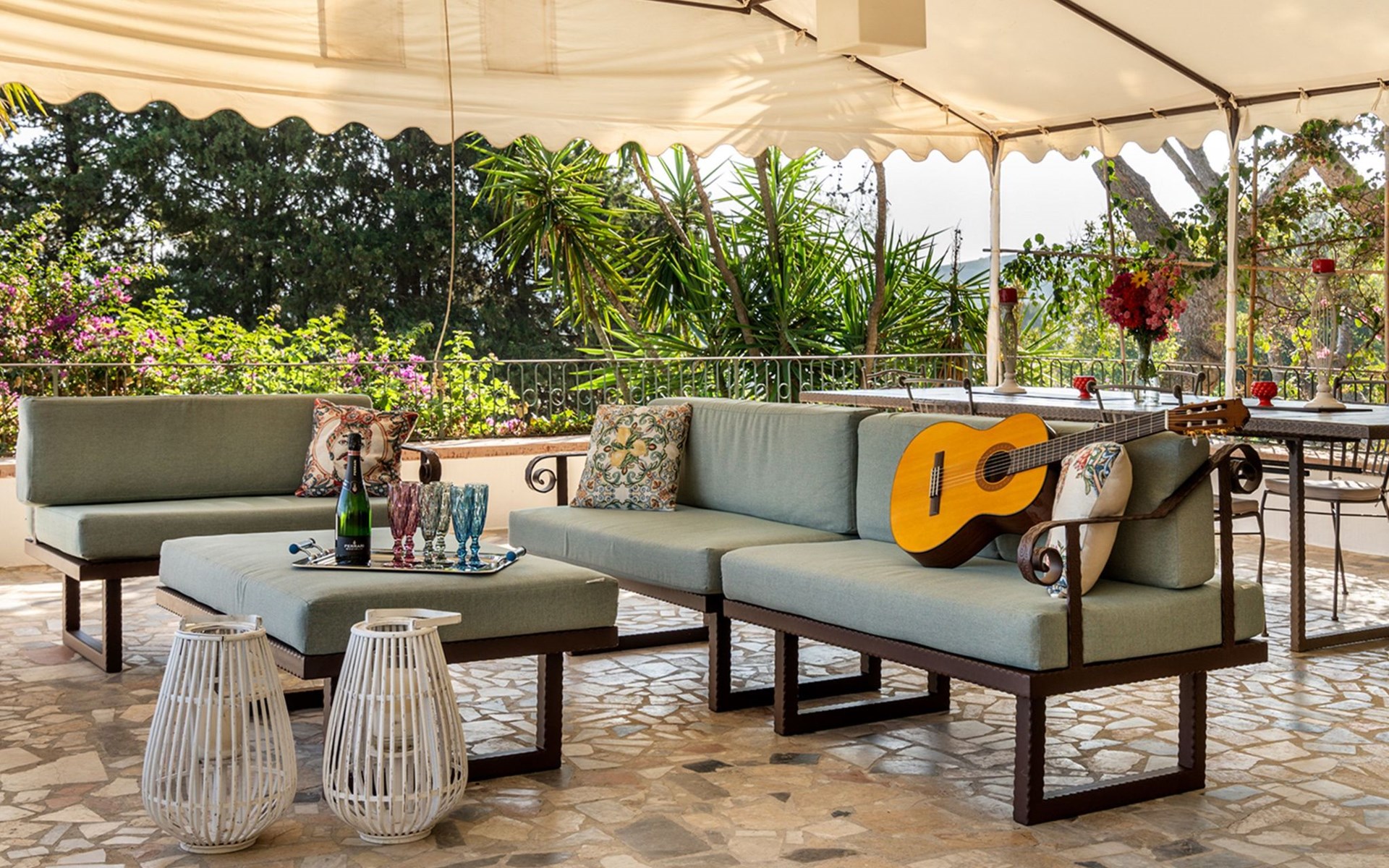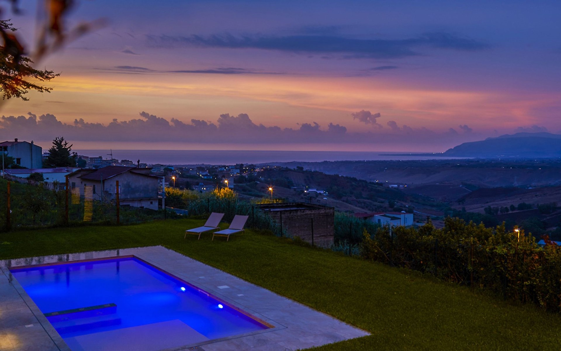Beeindruckend ist der nachts beleuchtete Garten mit üppiger Vegetation, mediterraner Macchia und einem Zitronenhain.