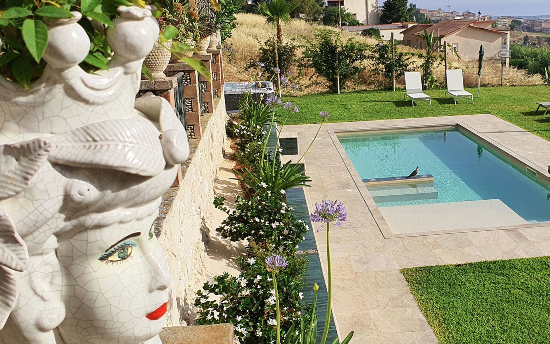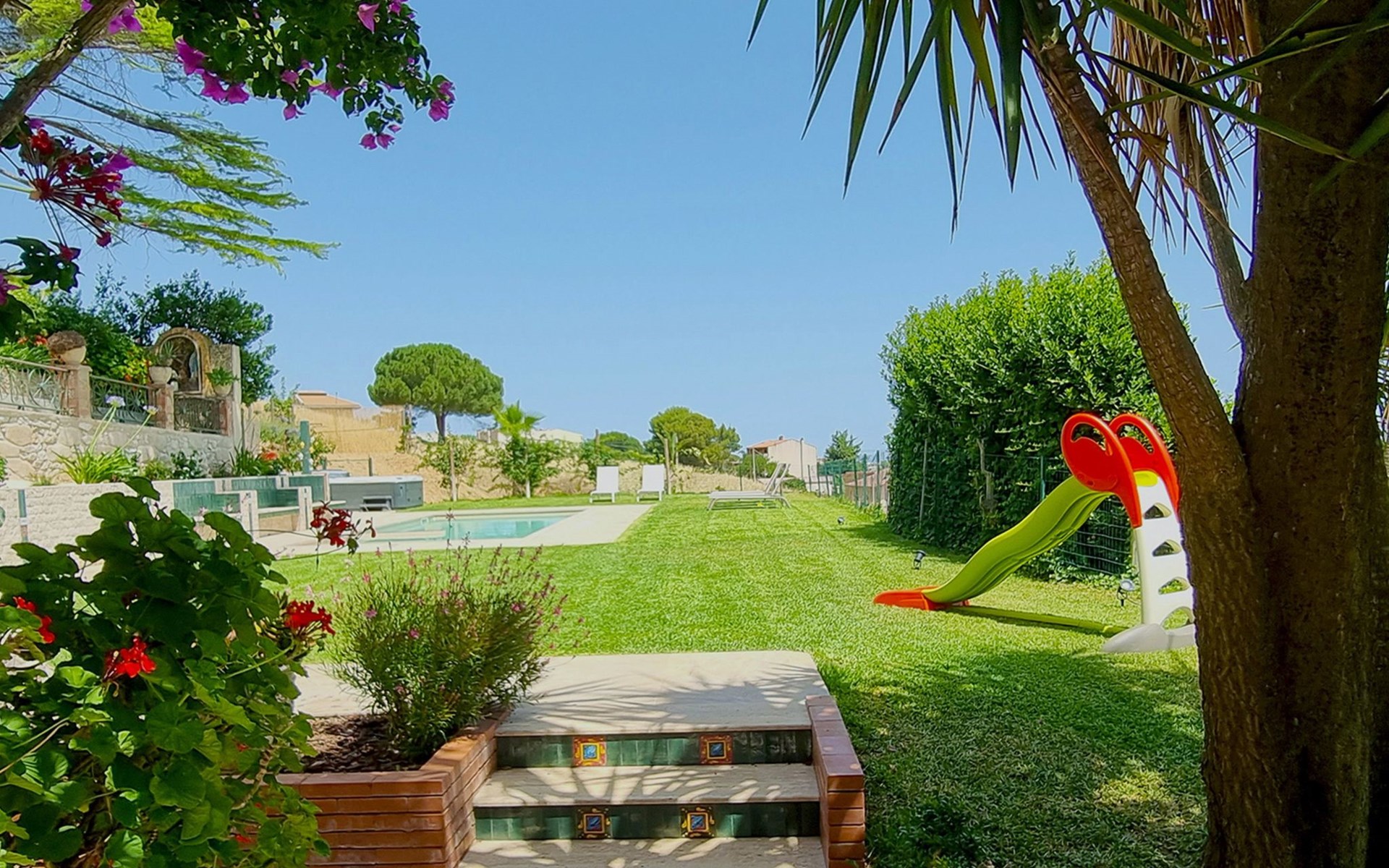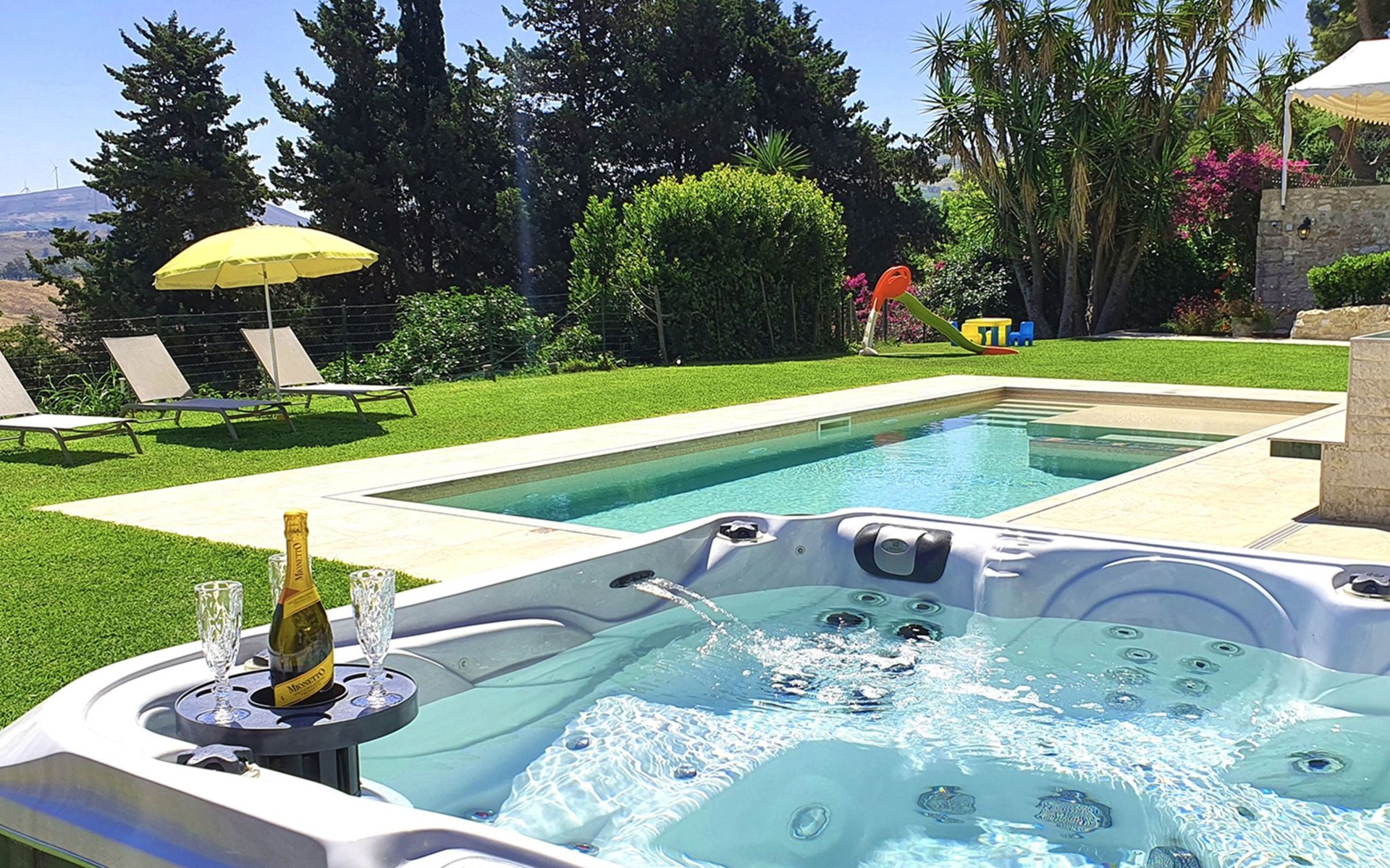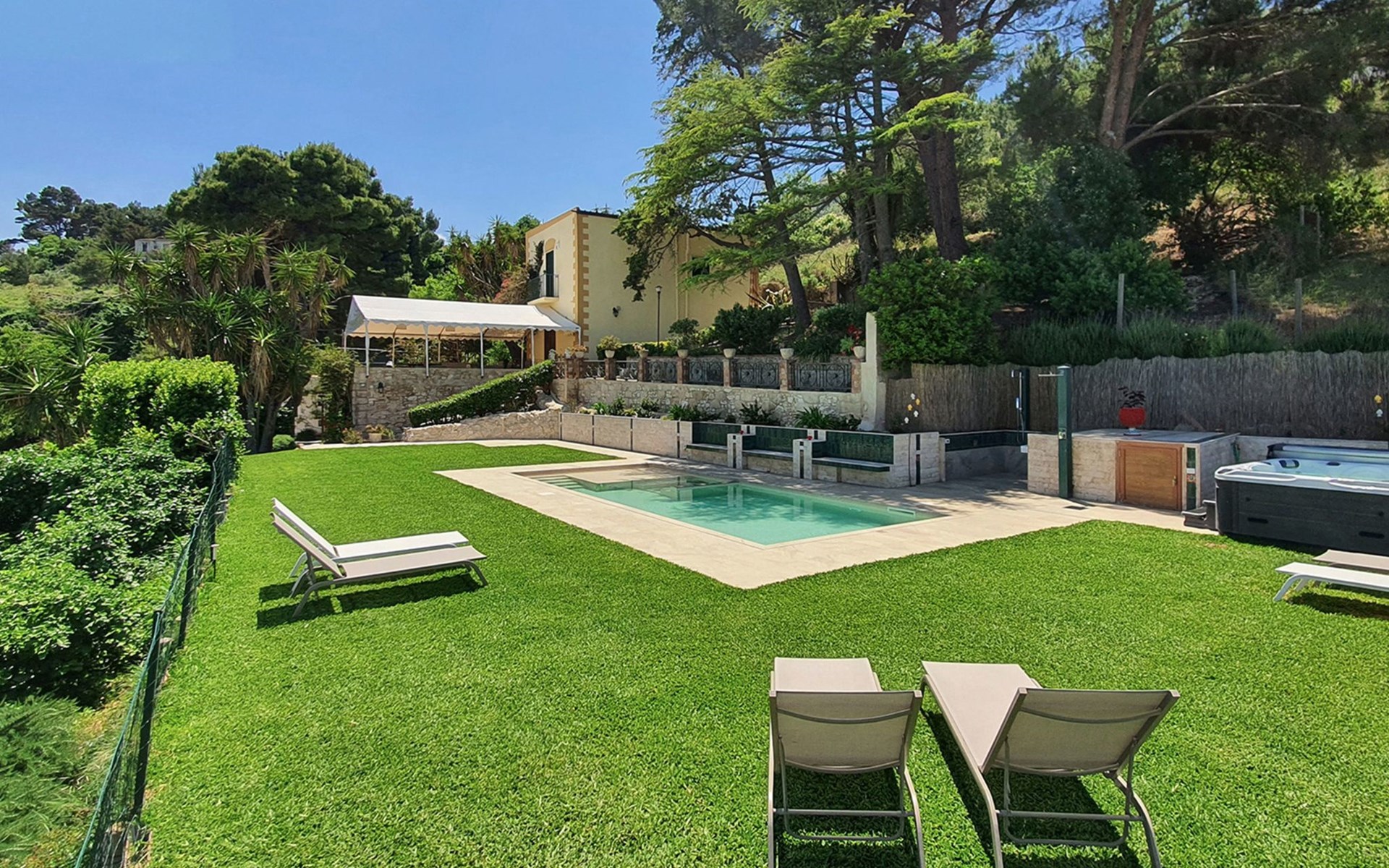 WUNDERSCHÖNES SCHWIMMBECKEN, AUF EINER GROSSEN HEIMATWIESE MIT SCHÖNEM BLICK AUF DAS MEER, MIT EINEM HYDROMASSAGEBEREICH; außerdem wurde vor kurzem ein Warmwasser-Whirlpool mit Blick auf das Meer und die nahe gelegenen Inseln installiert!