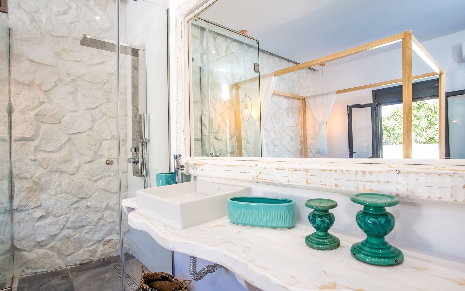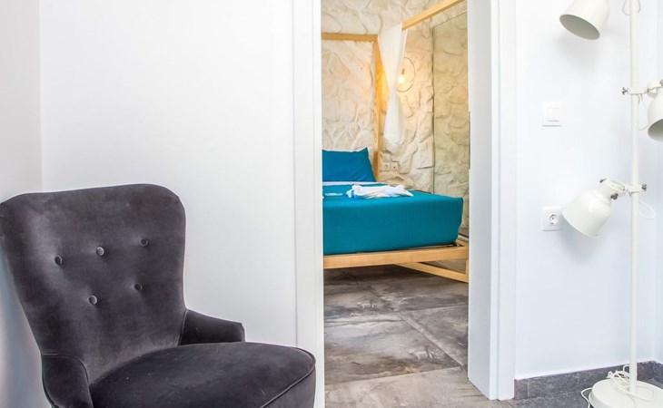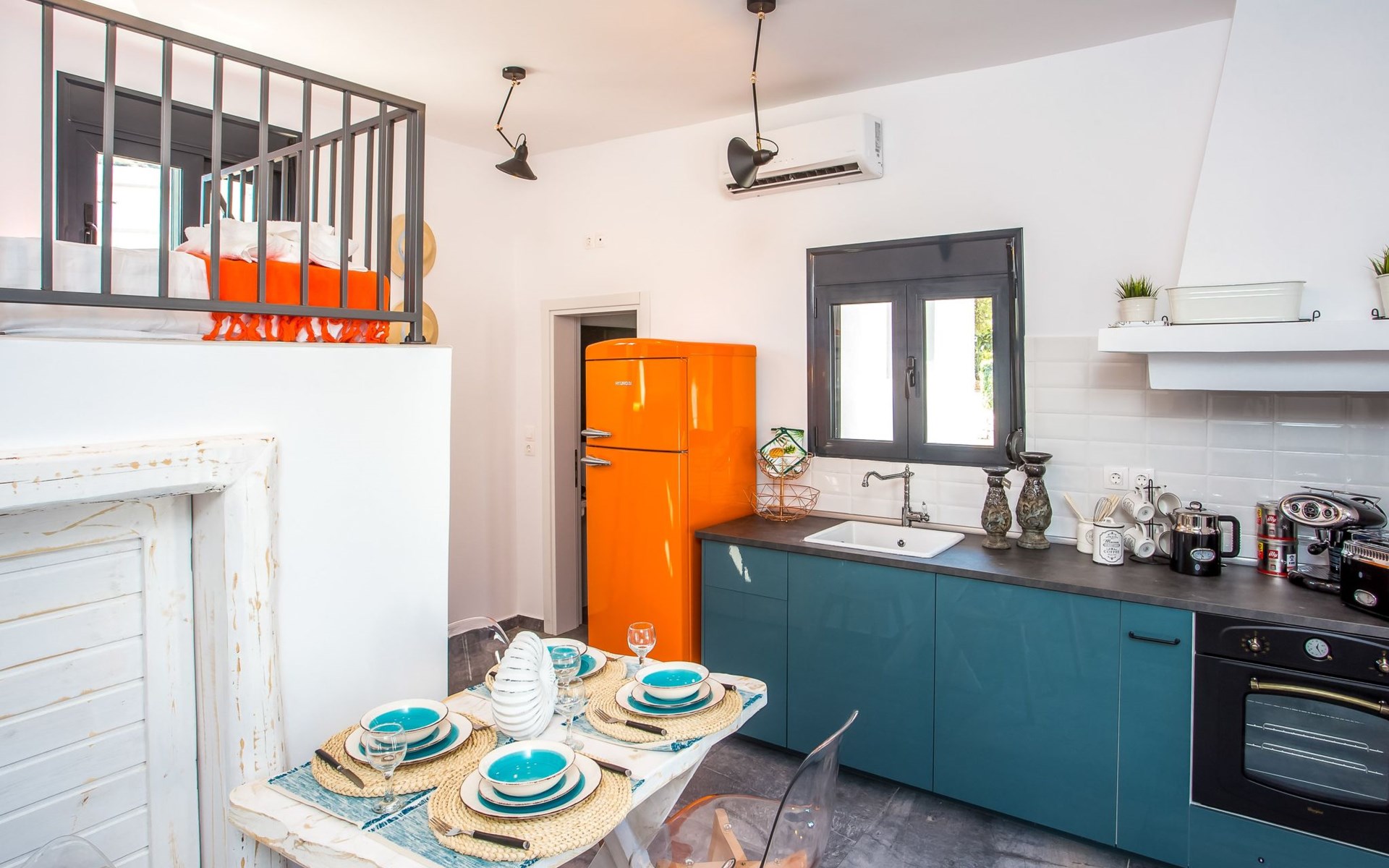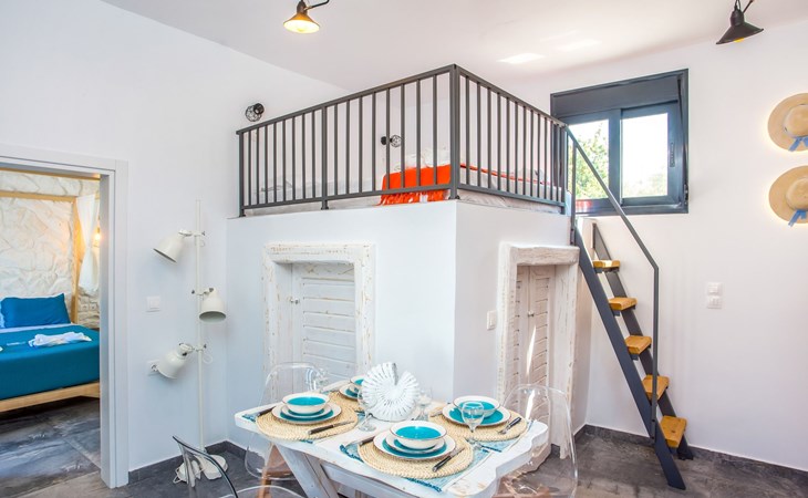 Der Doppelhaus-Bungalow ist sehr schön und modern eingerichtet. Er verfügt über ein Hauptschlafzimmer mit eigenem Duschbad und ausgezeichneter Qualität der Matratzen und Kopfkissen. Der Raum mit der modernen Küche ist offen gestaltet: eine Holztreppe führt zu einem romantischen Zwischengeschoss mit einem Kingsize-Bett. Die Küche ist voll ausgestattet und ein Esstisch für 4 Personen ist ebenfalls vorhanden.