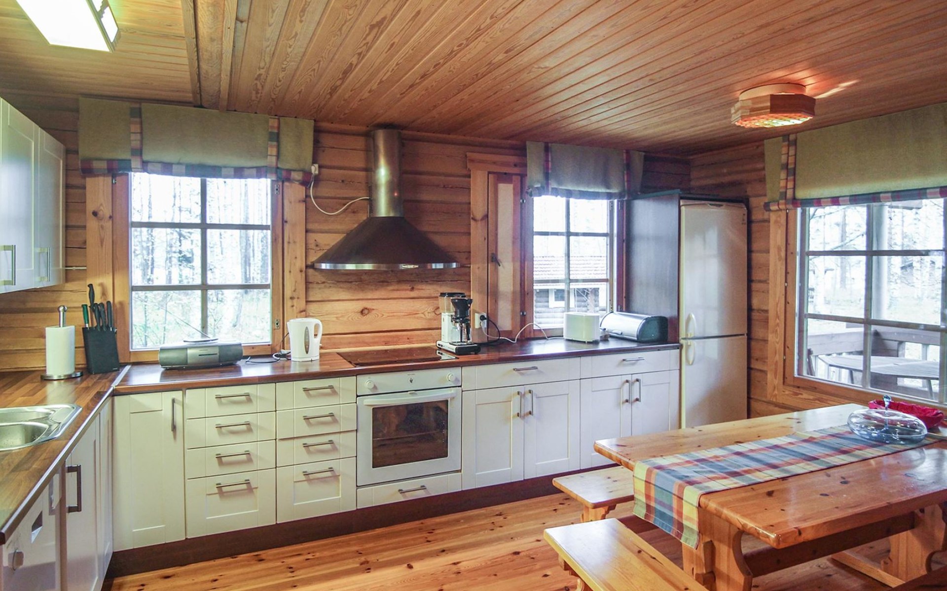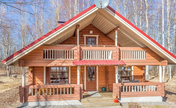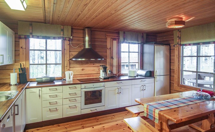 44 km nordöstlich von Heinola, See Peruvesi 40 m (Länge 12 km, Breite 2 km), hartes und sanft vertiefendes Ufer, Anlegestelle und eigenes Ruderboot. Blockferienhaus, Baujahr 1992, renoviert 2007, Wohnzimmer, Küche, Schlafzimmer (10 m²) mit 2 Betten, Ankleideraum, Waschraum, Sauna mit Holzofen, separate Toilette. Im Obergeschoss drei Betten und Schlafsofa für 2 Personen, Balkon. Es gibt Glasfaserverbindung und drahtloses Netzwerk. Parabolantenne, Beachvolleyballfeld. Seesauna mit Holzofen, Waschraum mit Dusche und WC, Kaminzimmer mit Schlafsofa als alternative Betten für 2 Personen. In der Seesauna steht, gegen Aufpreis von EURO 90, auch Whirlpool zur Verfügung, der im Voraus mit Wasser gefüllt wird. Haustiere sind erlaubt. Fügen Sie bitte zu Ihrer Buchung eine Haustiergebühr von EURO 40 hinzu, wenn Sie mit einem Haustier anreisen wollen. Hinweis! In der Nebensaison (ausserhalb der Sommerzeit) enden die Wochenendbuchungen in diesem Objekt am Sonntag, um 14:00 Uhr. Wenn Sie ein Wochenende mit Ihren Freunden verbringen und Ihren Urlaub bis zum Ende geniessen wollen, empfehlen wir Ihnen auch die Endreinigung zu buchen. Wenn nach Ihrer Buchung mehr gereinigt werden muss, als im Preis inbegriffen ist, ist der Eigentümer berechtigt, Ihnen eine zusätzliche Reinigungsgebühr zu berechnen. Niinimökki ist ein gut ausgestattetes Ferienhaus, für einen komfortablen Urlaub. Es gibt grossen Garten, der für viele Arten von Spielen geeignet ist. Die Unterkunft ist auch für die Unterbringung einer grösseren Gruppe geeignet. In wenigen hundert Metern Entfernung von diesem Ferienhaus befinden sich die anderen Ferienhäuser desselben Eigentümers, die Ferienhäuser: 14323, 14324, 14325 und 14326. Zusätzlich können Sie direkt vom Eigentümer elektrischen Aussenborder, Fahrräder, Eisbohrmaschine und Schneeschuhe mieten. Vola-Golf 3.5 km, Pertunmaa 9 km, Kuortti 10 km, Taidekeskus Salmela 18 km, Mäntyharju 21 km, Ristiina 50 km, Mikkeli 54 km, Repovesi Nationalpark 68 km, Imatra 153 km, Helsinki 181 km.