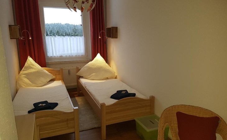 In unserem Nichtraucherdomizil, in dem das Rauchen auf dem Balkon jedoch erlaubt ist, finden Sie eine voll ausgestattete Küche, ein Badezimmer mit WC, und eine gemütliche Wohnlandschaft vor. Zur technischen Ausstattung gehören SAT-TV, Video, DVD, ein MP3CD-Kassetten-Radio, für Unterhaltung sorgen zudem Brettspiele und Kinderspielzeug. Eine Waschmaschine steht auf Anfrage (05,00€) zur Verfügung. Für Familien mit Kindern bieten wir einen Kinderstuhl, zwei Kinderfahrräder für bis zu 12 Jahre (auf eigene Verantwortung) und sogar kostenlosen Kinderski für die Kleinsten an.
