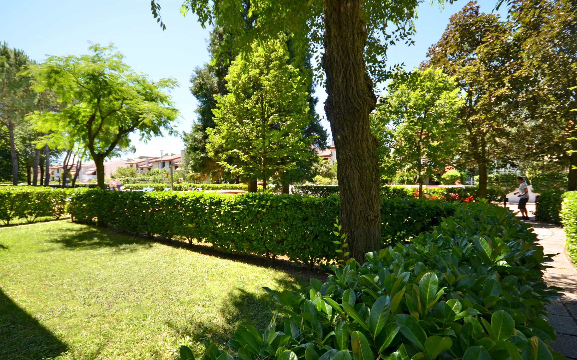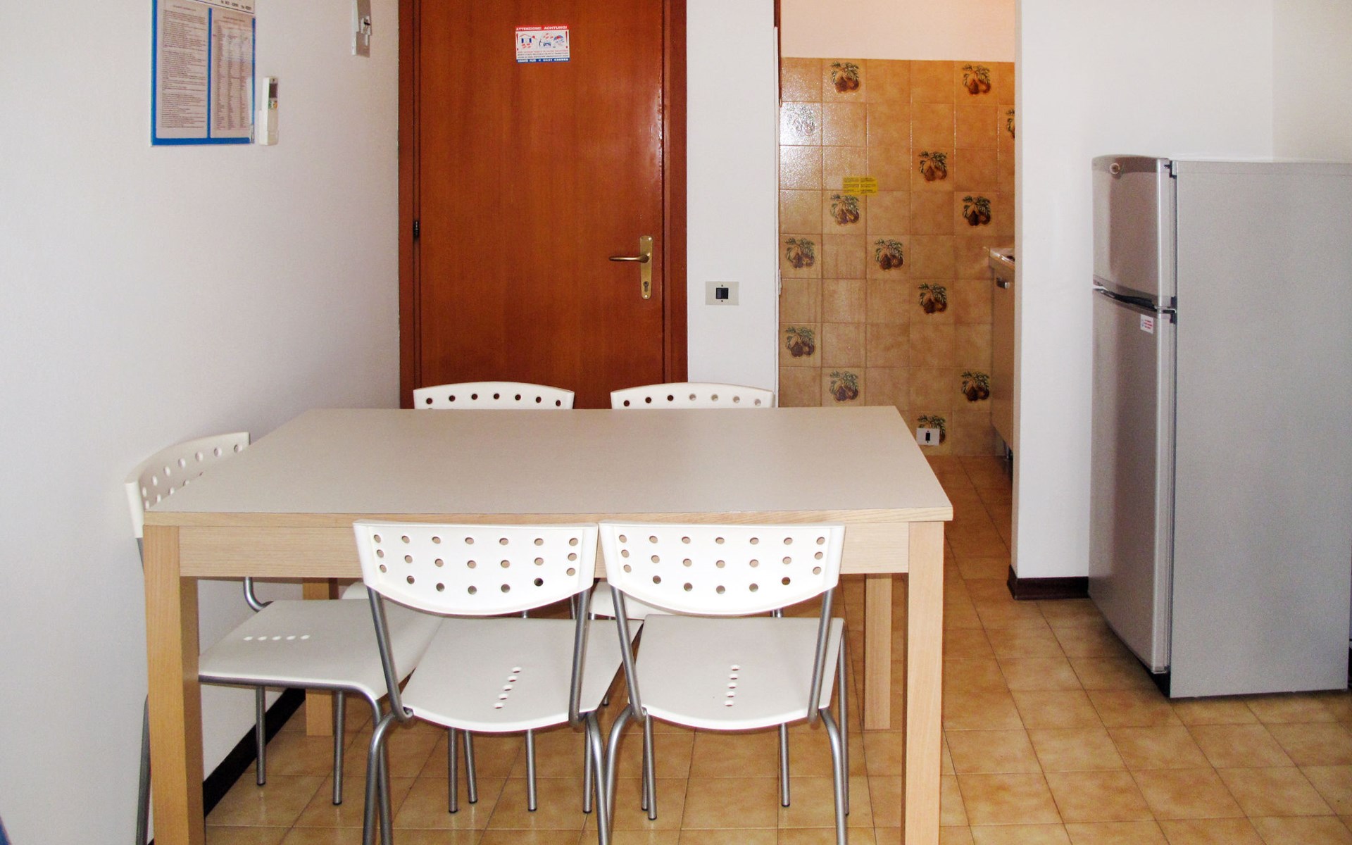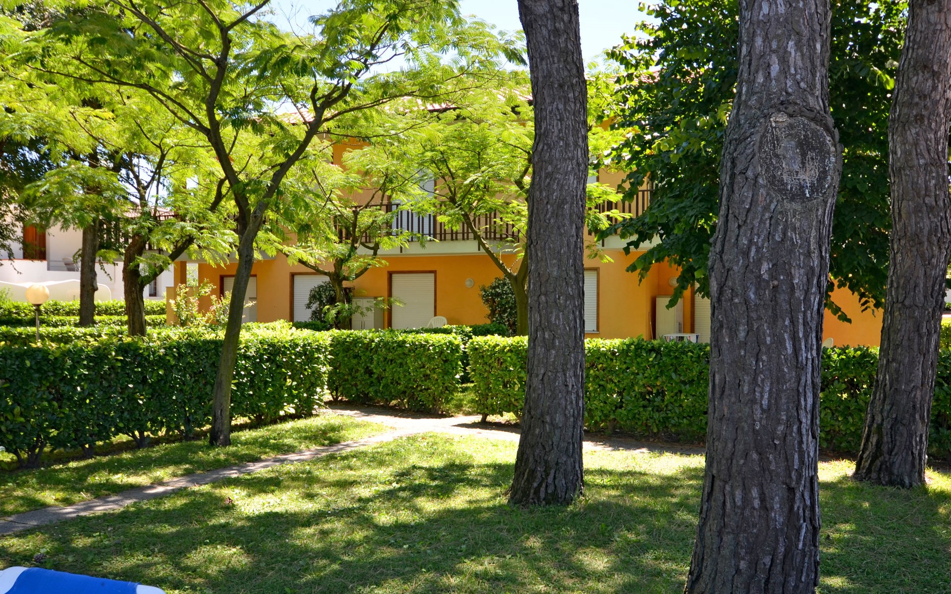 Kleine Ferienanlage "Villaggio Gelsomini", auf 2 Stockwerken. 20 Wohnungen in der Residenz. Im Ortsteil Bibione-Spiaggia, 1 km vom Zentrum von Bibione, 13 km vom Zentrum von Lignano, 100 km vom Zentrum von Venezia, 1.3 km vom Meer. Zur Mitbenutzung: Grundstück (eingezäunt), Garten mit Pflanzen und Bäumen, Schwimmbad (16 x 6 m, saisonale Verfügbarkeit: 15.Mai. - 27.Sep.). Kinderbecken. In der Anlage: Wireless LAN (extra). Fahrradverleih. Öffentliche Parkplätze auf der Strasse. Supermarkt 400 m, Restaurant 650 m, Bushaltestelle 400 m, Bahnstation "Latisana (Milano-Venezia-Triest)" 21 km, Sandstrand 1.3 km, Thermalbad "Bibione Thermae" 2.2 km. Golfplatz (18 Loch) 11 km. Nahe gelegene Sehenswürdigkeiten: Oasi Naturalistica Val Grande - Bibione. Der Besitzer akzeptiert keine Gruppen. Strandservice: Von ca. Anfang Mai bis ca. Ende September sind jeweils 1 Liegestuhl, 1 Sonnenliege und 1 Sonnenschirm pro Wohnung im Mietpreis enthalten. Shuttleservice: Von ca. 23.05.-11.09. kostenloser Shuttlebus zum Strandabschnitt 'Un Nuovo Posto al Sole' (täglich im 30-Minuten-Rhythmus, von 8-19 h).