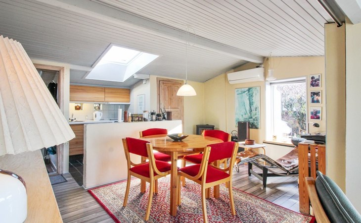 Einfamilienhaus, Baujahr 1920. 20 m vom Meer. Zur Alleinbenutzung: naturbelassenes Grundstück 650 m2. Terrasse (90 m2), Grill. Im Hause: Waschmaschine. Parkplatz beim Haus. E-Ladestation. Lebensmittelgeschäft 2.5 km. Golfplatz 4.5 km. Der Besitzer akzeptiert keine Jugendgruppen.