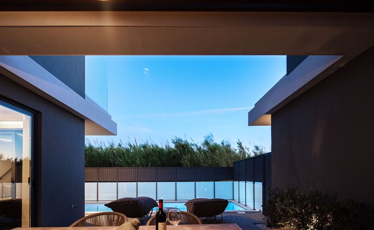 Die 125 m² große VillaSaints IΙ erstreckt sich über zwei Etagen und bietet Platz für bis zu 6 Gäste in völligem Komfort und Privatsphäre.