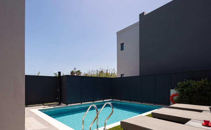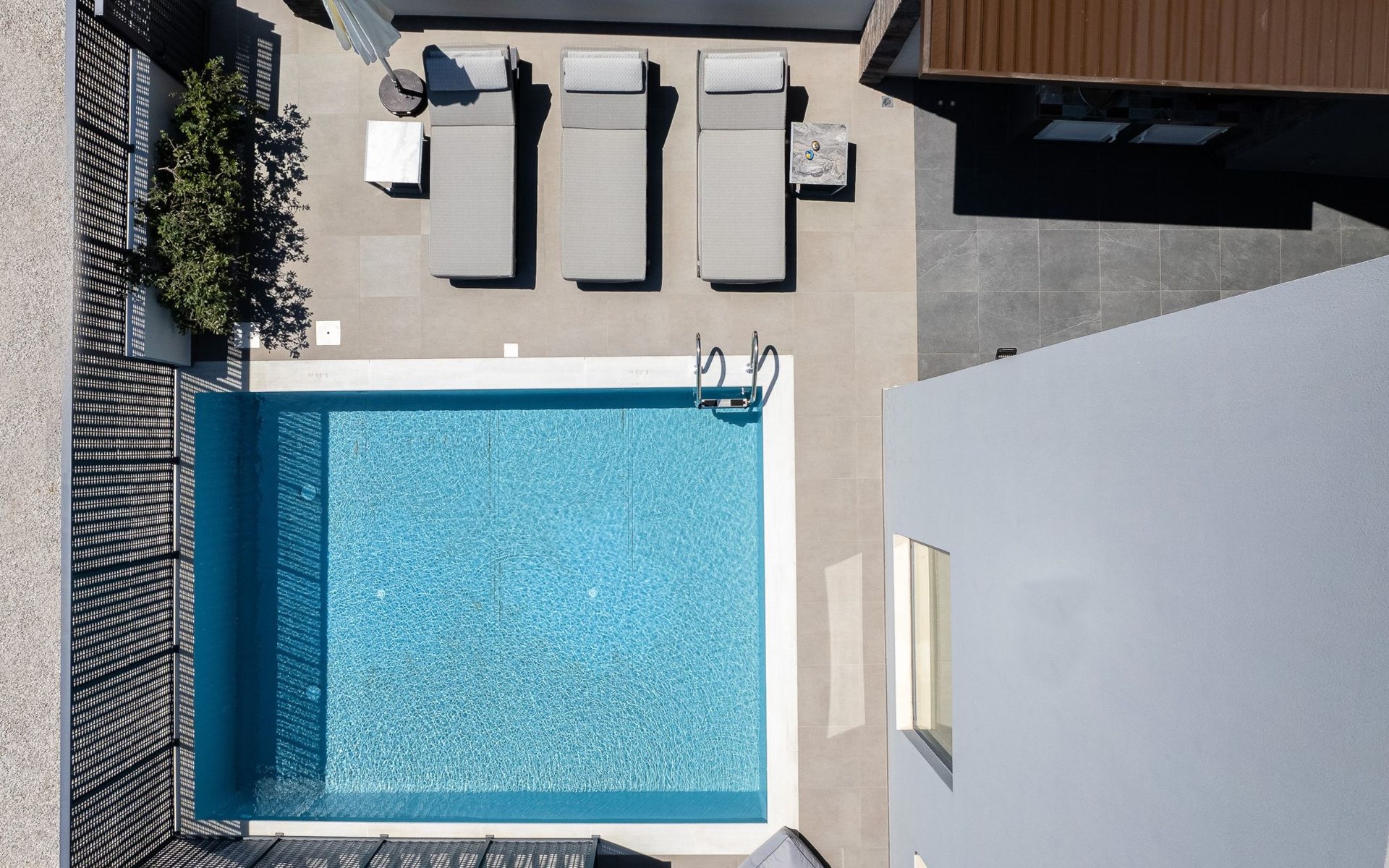 Die VillAgioi Villa III bietet einen ruhigen und einladenden Außenbereich, der zur Entspannung und Unterhaltung einlädt. Der private Pool mit einer Größe von 6,5 mal 4 Metern und einer gleichmäßigen Tiefe von 1,40 Metern ist das Herzstück des Gartens und wird durch eine erfrischende Dusche am Pool ergänzt. Rund um den Pool befinden sich drei bequeme, gepolsterte Sonnenliegen und ein gemütlicher, von einem Sonnenschirm beschatteter Liegestuhl - ideal, um die Sonne zu genießen oder sich mit einem Buch zu entspannen. Die voll ausgestattete Küchenzeile im Freien verfügt über einen Elektrogrill, mit dem sich köstliche Mahlzeiten im Freien zubereiten lassen. Ein großer Esstisch bietet Platz für alle Gäste für unvergessliche Abendessen im Freien oder zwanglose Zusammenkünfte. Der gesamte Bereich ist vom Wohnbereich der Villa aus leicht zugänglich, so dass Sie während Ihres gesamten Aufenthalts nahtlos von drinnen nach draußen leben können.