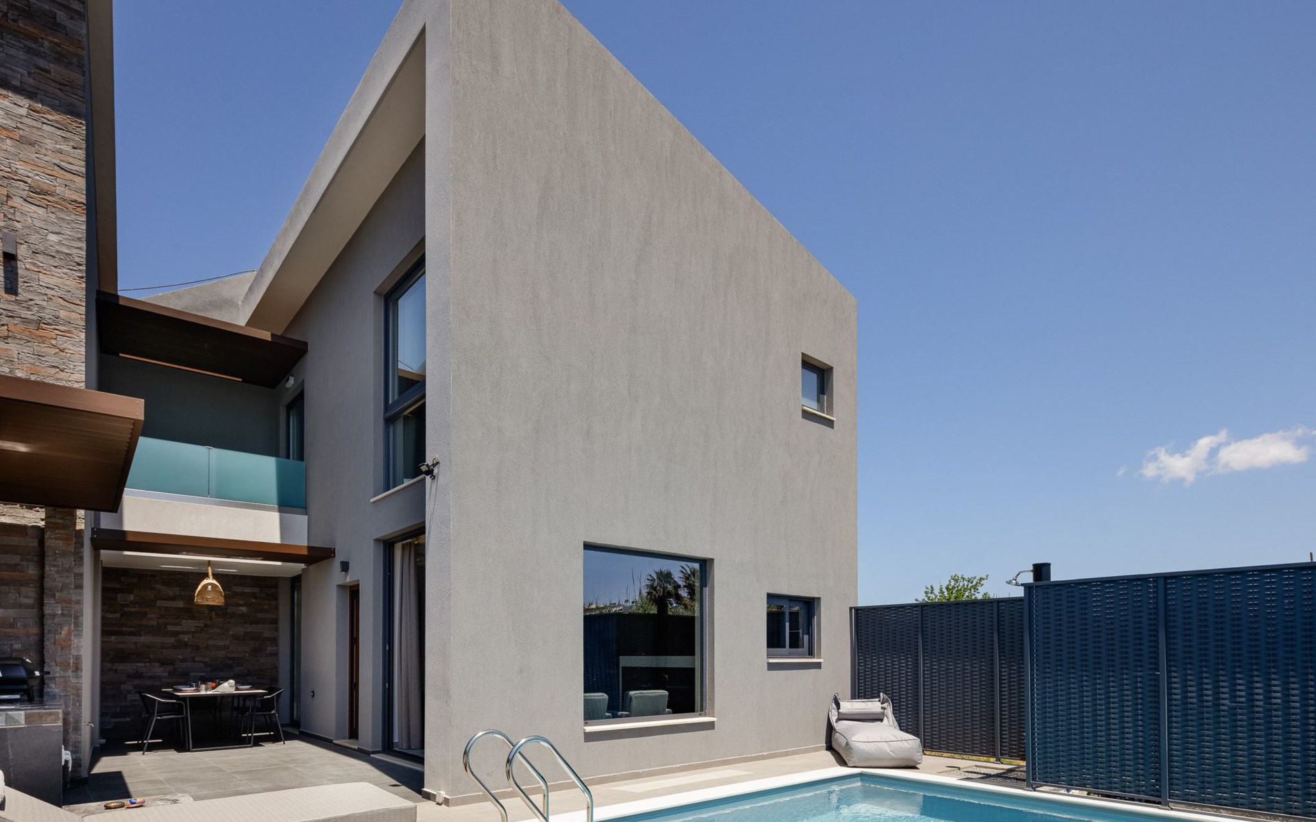 VillAgioi Villa III erstreckt sich über zwei durchdacht gestaltete Etagen und bietet Platz für bis zu 5 Gäste. Die Villa empfängt Sie durch das Haupttor und den Privatparkplatz direkt im Außenbereich, der nahtlos in das helle, offen gestaltete Innere übergeht.