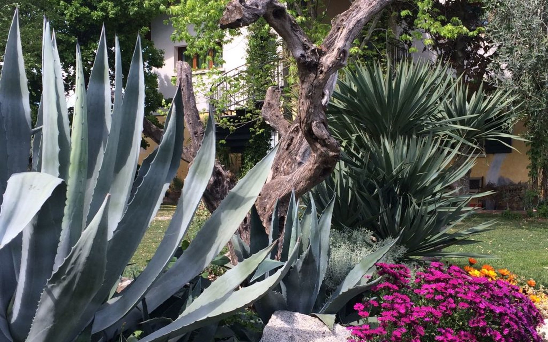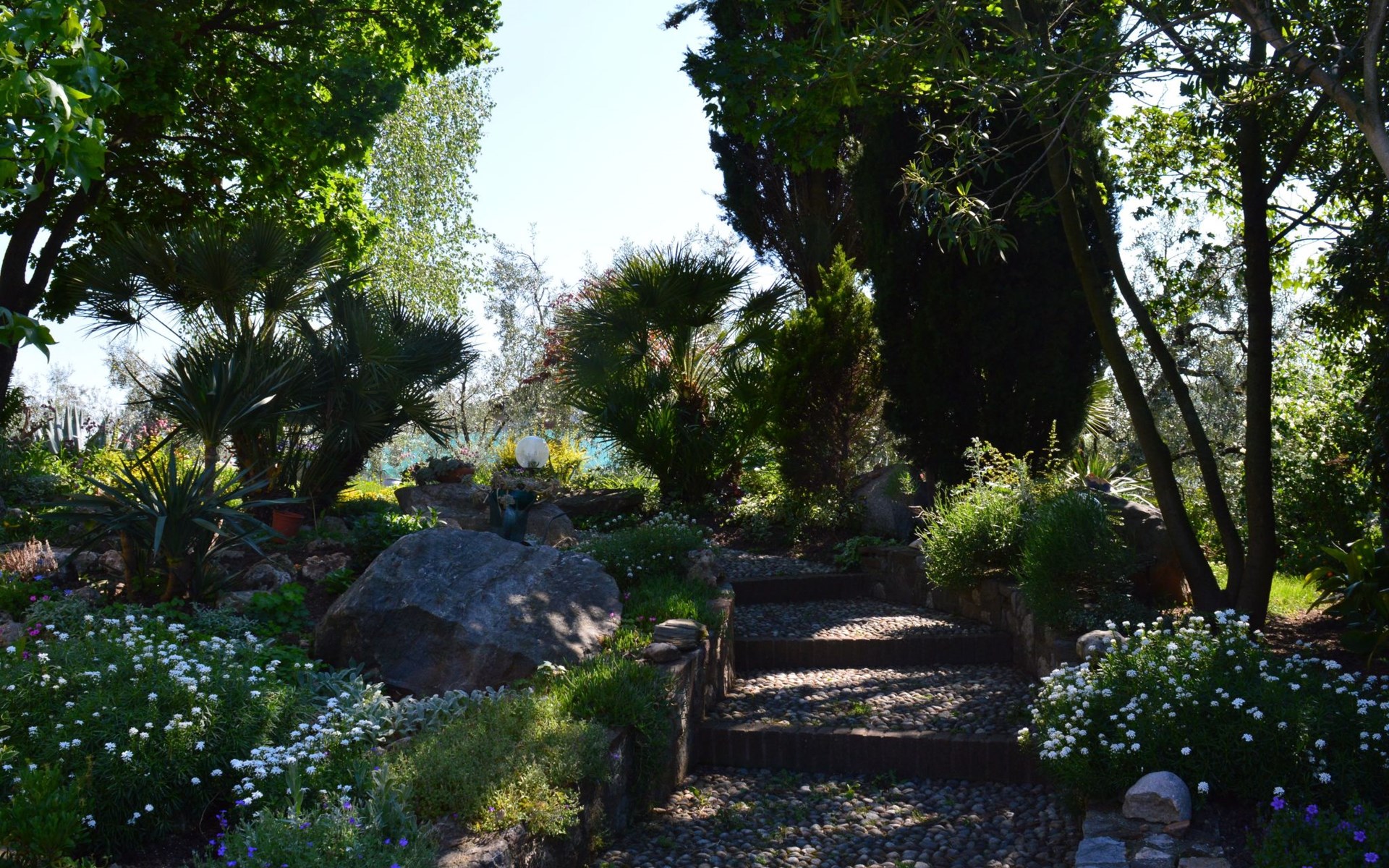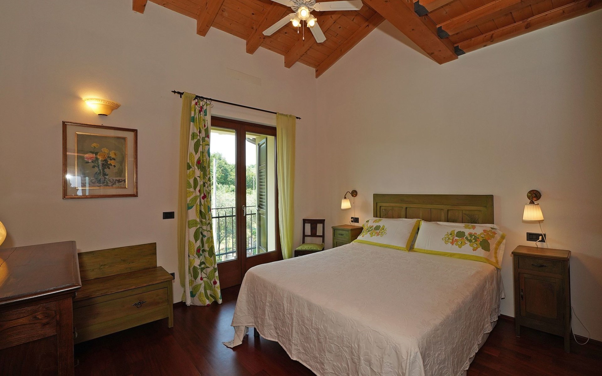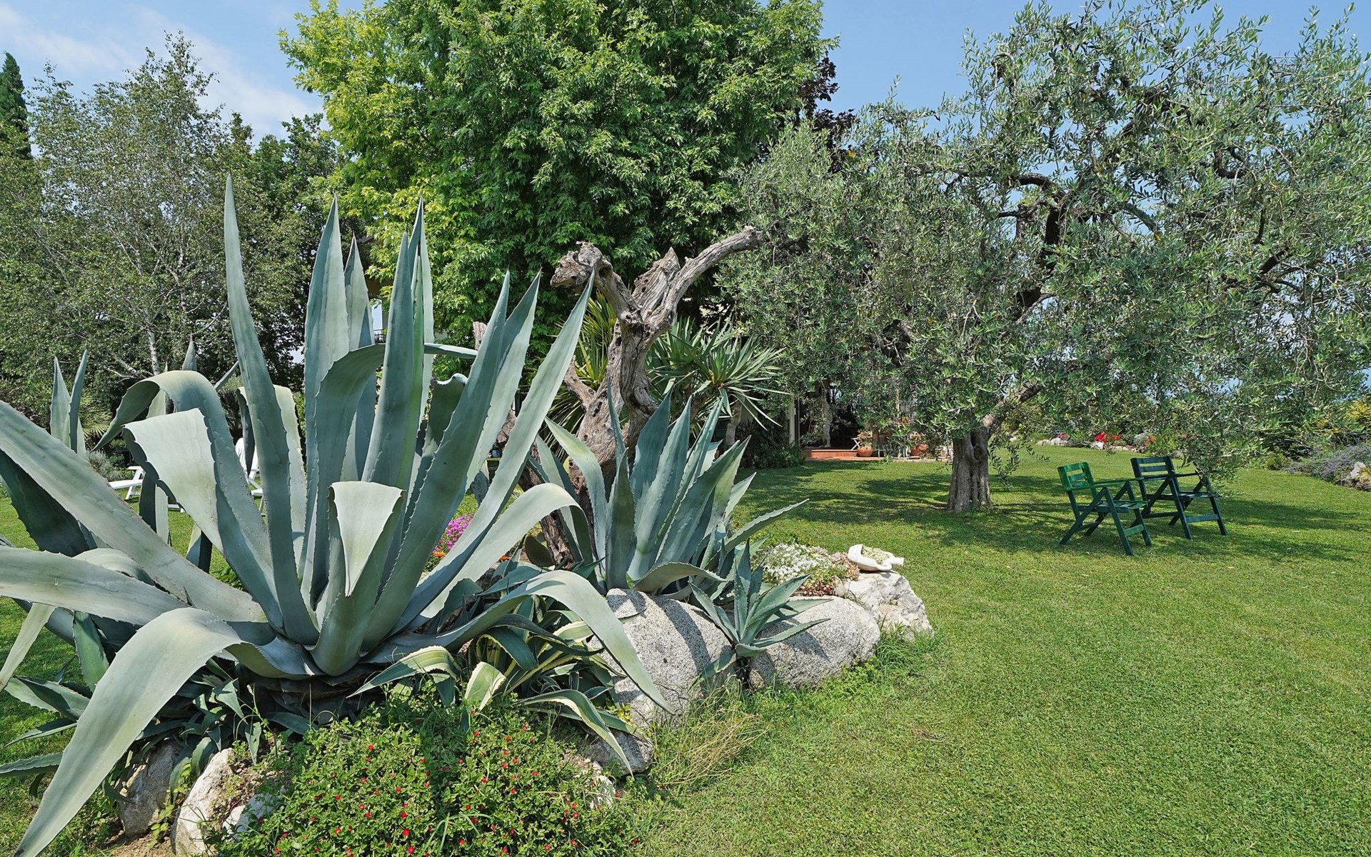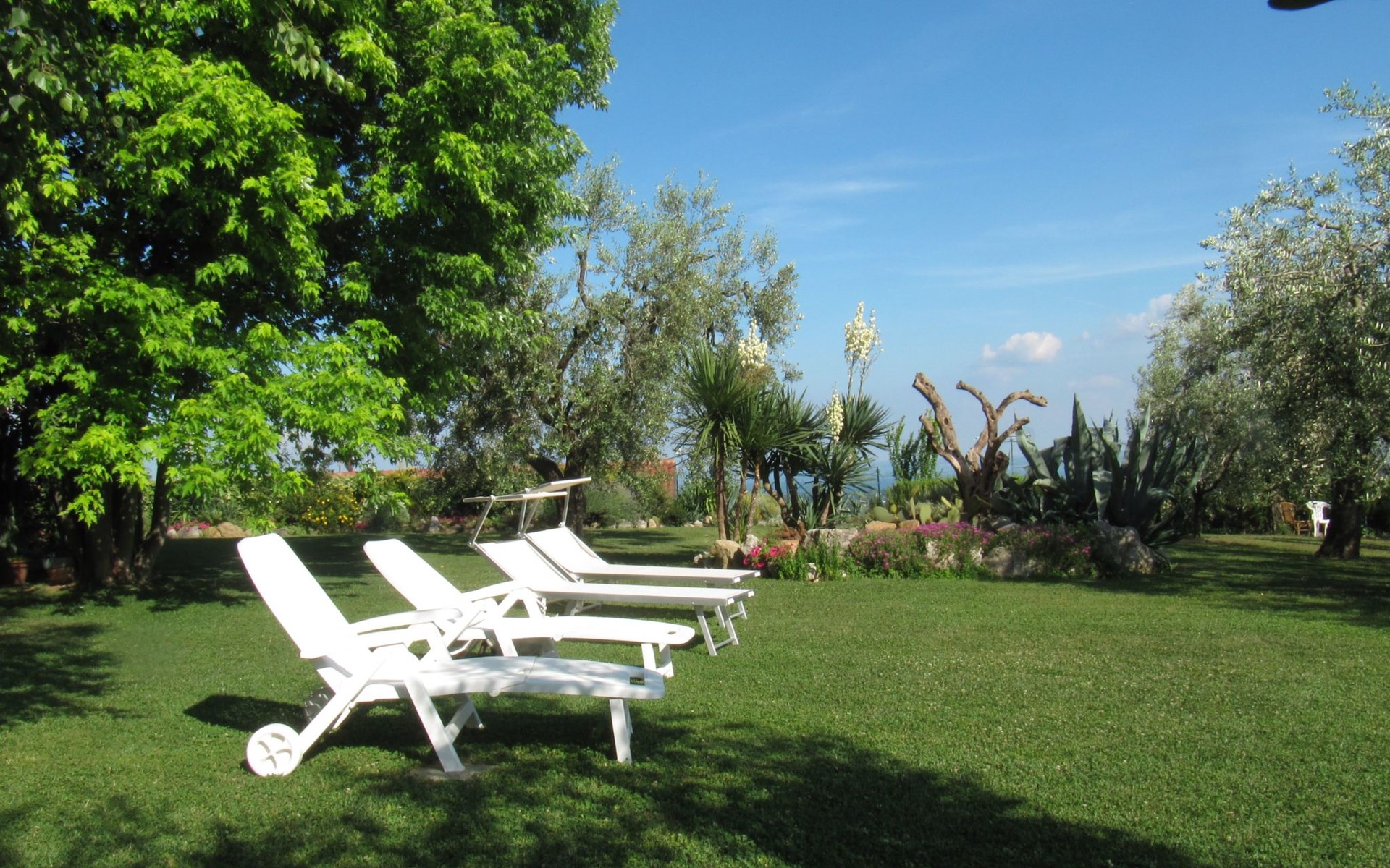 Die Wohnung "TERRAZZE SUL GARDA" ist fantastisch und einzigartig; sie befindet sich im ersten und letzten Stock eines zweistöckigen Hauses, ist durch einen separaten Eingang zu erreichen und ist von einem großen und gepflegten Garten umgeben. Die Wohnung ist dank der hohen Holzdecken und großen Fenster sehr hell. Sie ist ca. 100 qm groß und öffnet sich zu einer ca. 40 qm großen Terrasse, von der aus man einen der schönsten Ausblicke auf den Gardasee und die Valtenesi-Hügel genießen kann. Die Wohnung ist mit modernen Annehmlichkeiten wie Geschirrspüler, TV, Heizung, Internet usw. ausgestattet, aber mit antiken Möbeln eingerichtet. Sie besteht aus 2 Doppelschlafzimmern mit Parkettboden, von denen man Zugang zu einer weiteren Terrasse mit Blick auf die umliegenden Hügel hat; beide haben ein eigenes Bad mit Dusche und Bidet. Ein großes Wohnzimmer mit einer voll ausgestatteten Küchenzeile und einem Entspannungsbereich mit einem Doppelschlafsofa führt auf die über 40 qm große Terrasse, die für Mahlzeiten im Freien ausgestattet ist. Die Wohnung ist ideal für Familien mit 5/6 Personen oder für zwei Paare.