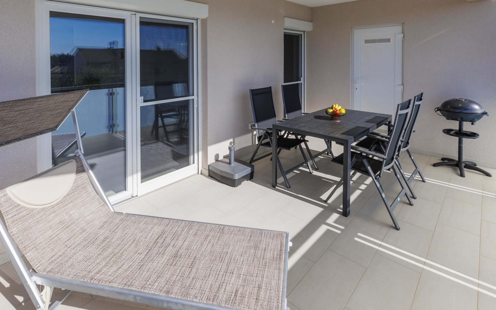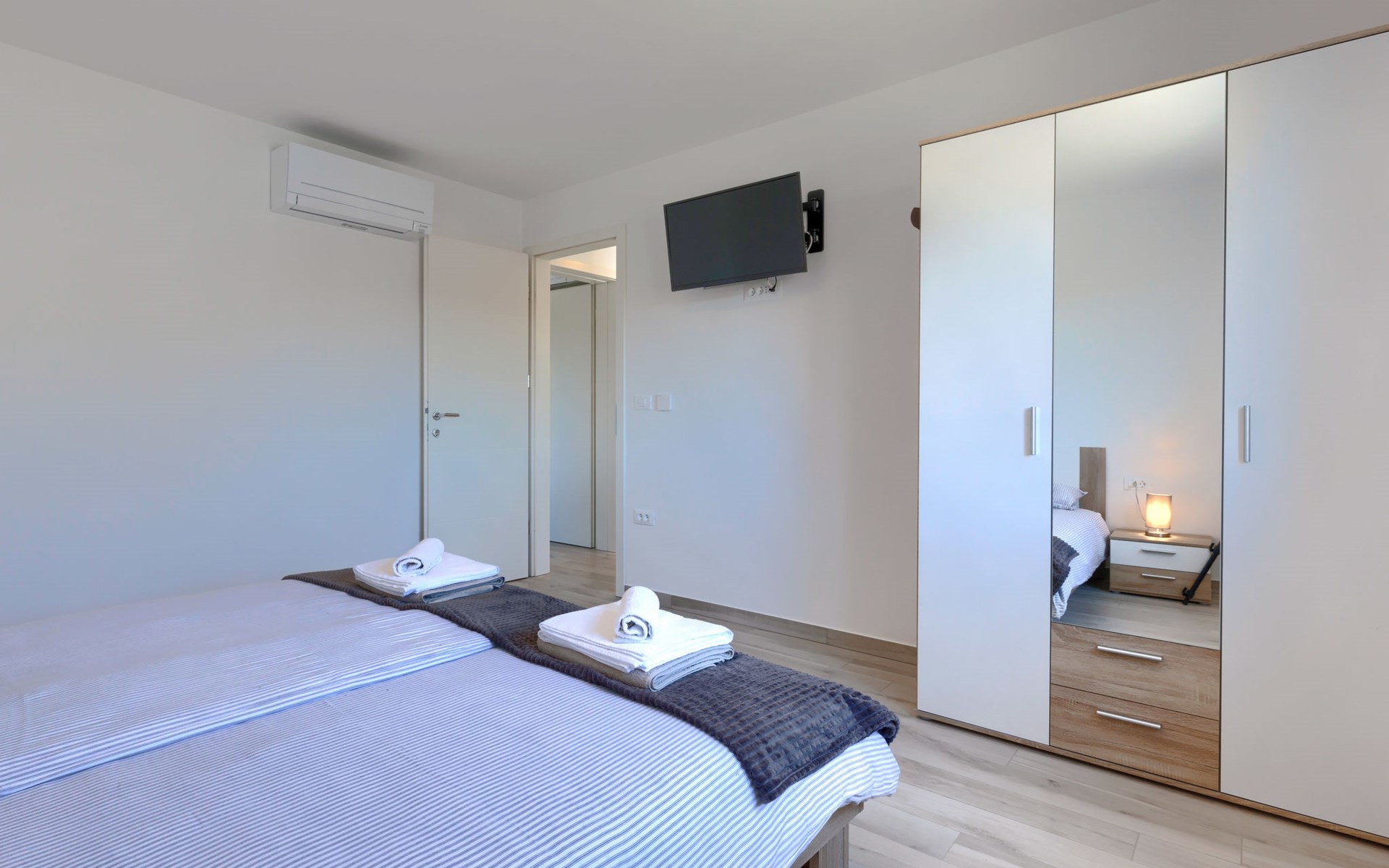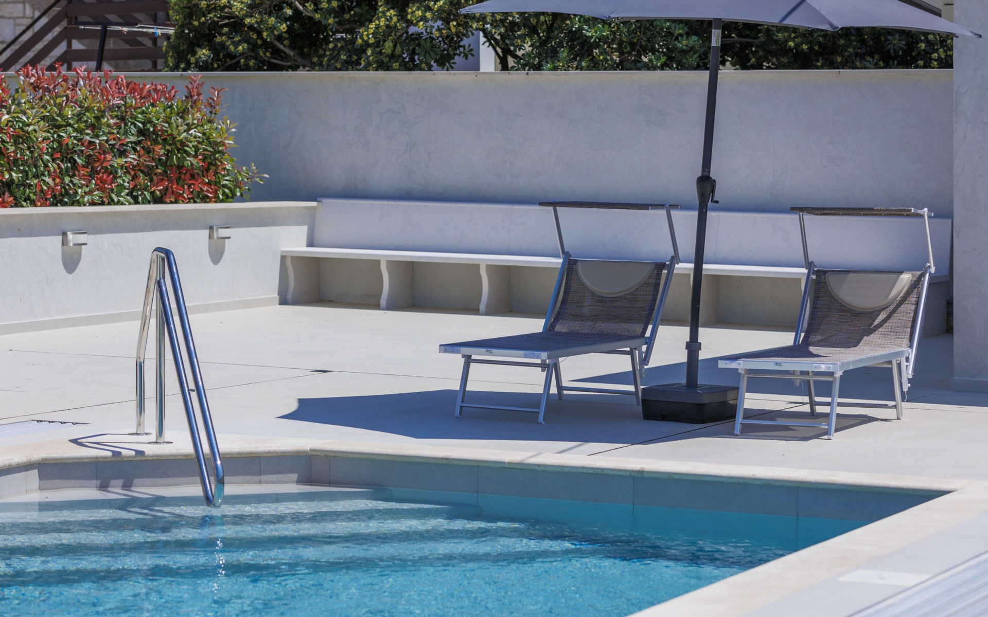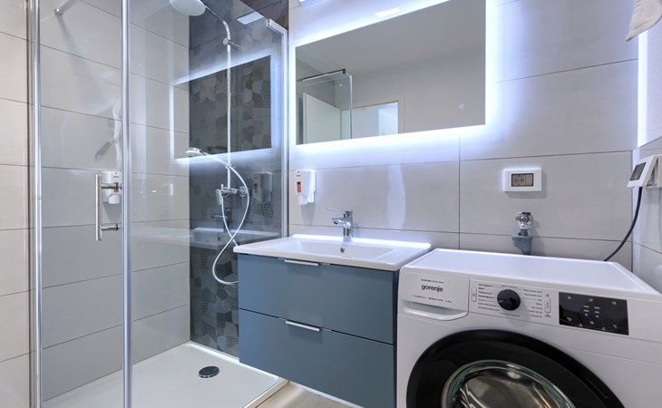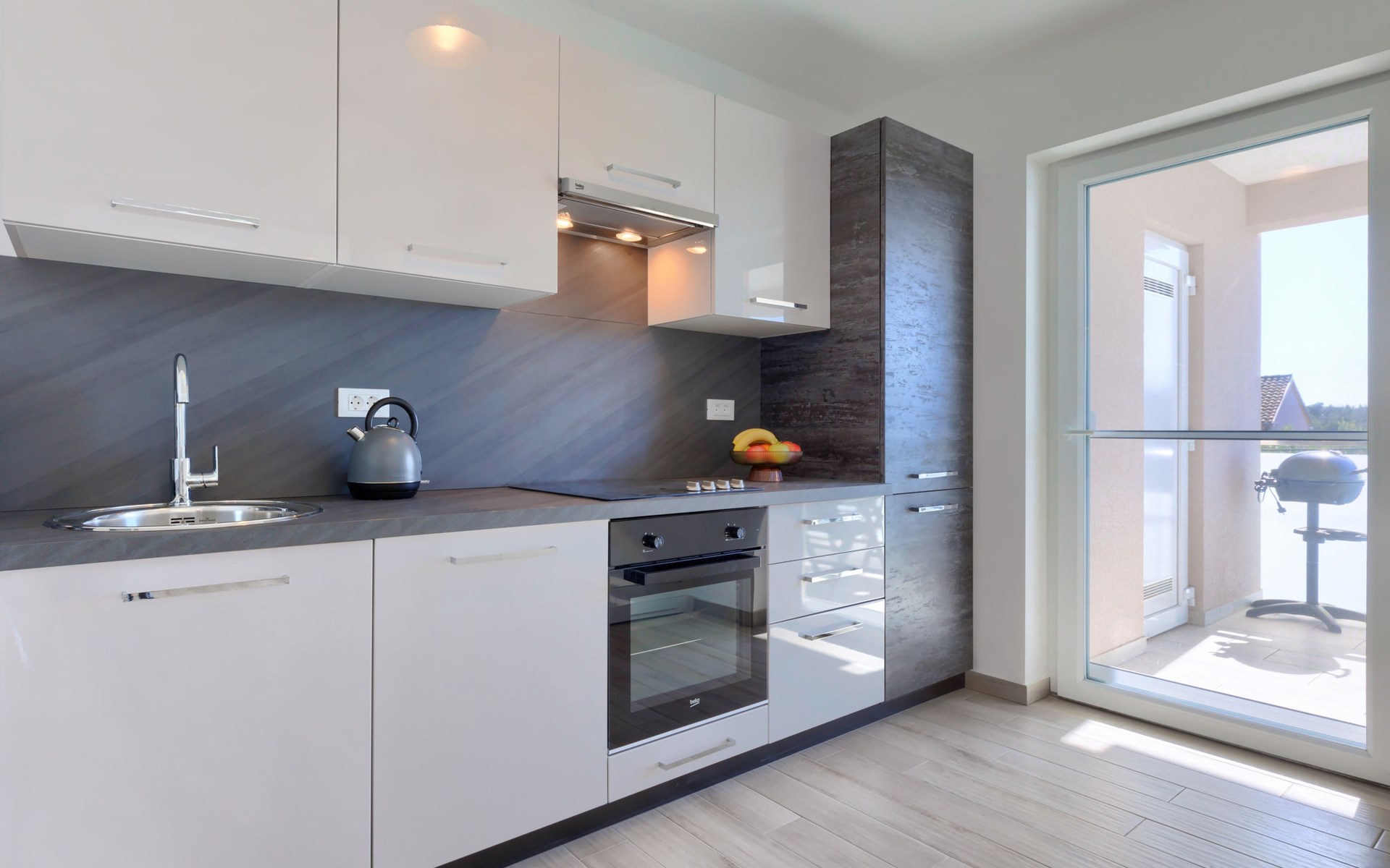 Murine 3 km von Umag: Mehrfamilienhaus "Villa Galici", Baujahr 2022. Im Weiler Galići, 1 km vom Zentrum von Murine, sonnige Lage, 2.5 km vom Meer, 2.5 km vom Strand. Zur Mitbenutzung: Grundstück 1'000 m2 mit Rasen, Schwimmbad eckig beheizt (10 x 5 m, 150 cm tief, saisonale Verfügbarkeit: 01.Jan. - 31.Dez.) mit Innentreppe und Rollladenabdeckung. Aussendusche. Im Hause: Internetzugang, Tischfussball. Parkplatz beim Haus auf dem Grundstück. Einkaufsgeschäft 1.5 km, Restaurant 800 m, Bushaltestelle 4.1 km, Kieselstrand 2.5 km, Felsstrand 2.5 km. Wanderwege ab Haus 100 m, Radweg 150 m. Der Besitzer akzeptiert keine Jugendgruppen.