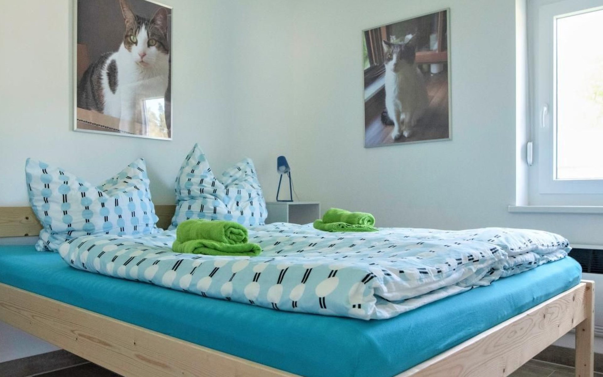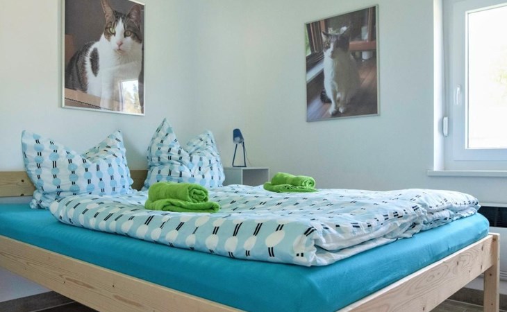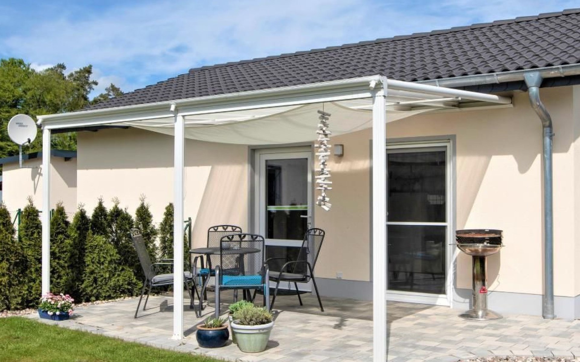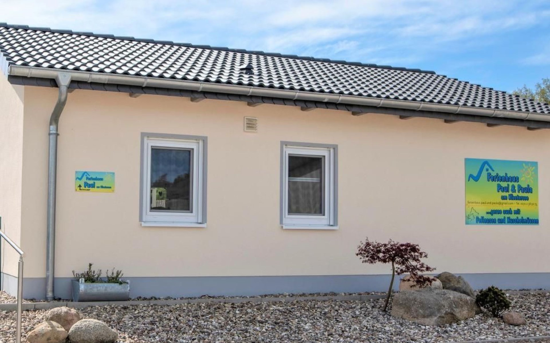 Bitte beachten Sie, dass wir auch ausdrücklich Hundehaltern den Urlaub bei uns gestatten. Urlaub mit Hund bedeutet: Wenn sich kein Mensch im Ferienhaus befindet, befindet sich auch kein Hund im Haus! Tiere werden nicht in unseren Häusern eingesperrt, sondern sind immer an der Seite ihrer Halter. Bei uns sind Kinder unbedingt erwünscht. Bringen Sie bei Bedarf Ihr Zustellbettchen einfach mit. Bitte packen Sie auch einen Koffer für Ihre vierbeinigen Begleiter, da wir keine Tierutensilien zur Verfügung stellen.Die Sonnenerrasse ist nach Südwesten ausgerichtet und mit Gartenmöbeln und einem Sonnensegel ausgestattet. Das Grundstück ist mit einem Zaun umfriedet und somit auch für Kinder bestens geeignet. Die Zaunhöhe von 1m gestattet den Hunden freien Auslauf auf dem 200 m² großem Grundstück. Direkt am Ferienhaus auf dem Weg können Sie Ihr Auto abstellen.Der ebenerdige vollgeflieste Bungalow ist ca. 50 m² groß. In der Wohnküche mit komplett eingerichteter Küche und Essplatz befindet sich ein Zweisitzer aus Leder. Ein Minibackofen, ein Cerankochfeld, eine Filterkaffeemaschine und ein Toaster gehören zur Kücheneinrichtung. In der Schlafstube können Sie auf dem extra hohen Doppelbett (160X200) relaxen und süß träumen. Das Bad hat eine moderne ebenerdige Dusche und ein Fenster. Zwei Sat-TV und ein Internet-Radio mit USB-Anschluss komplettieren die technische Ausstattung. Verbinden Sie Ihr Handy mit dem Radio und schon hören Sie Ihre Musik. Nicht nur im Haus sondern auch auf dem gesamten Grundstück steht Ihnen W-Lan zur Verfügung. Bei Kälte sorgt eine moderne Elektroheizung für mollige Wärme. Besuchen Sie uns einfach! Überzeugen Sie sich selbst!KurzbeschreibungSonstiges : Nichtraucherhaus