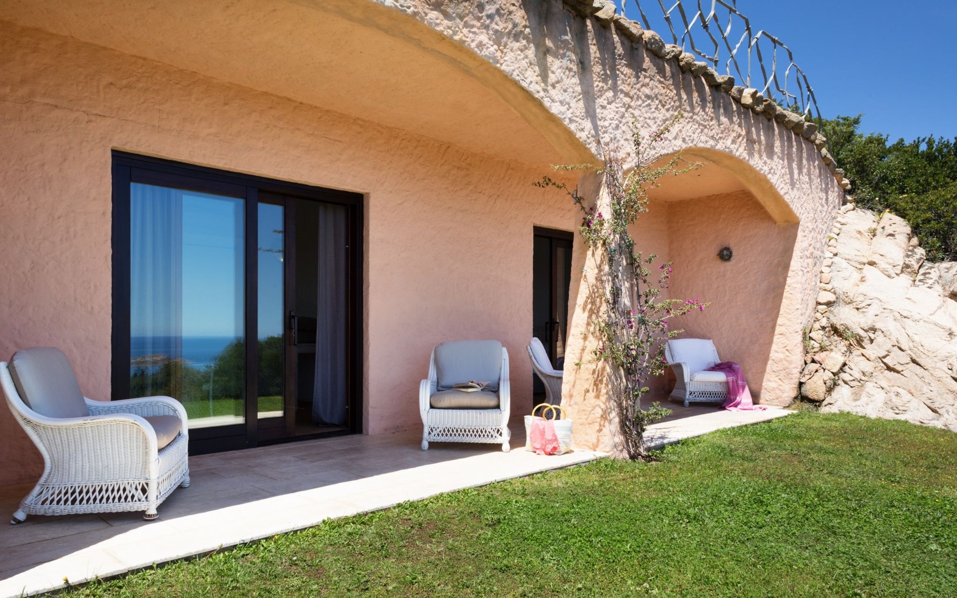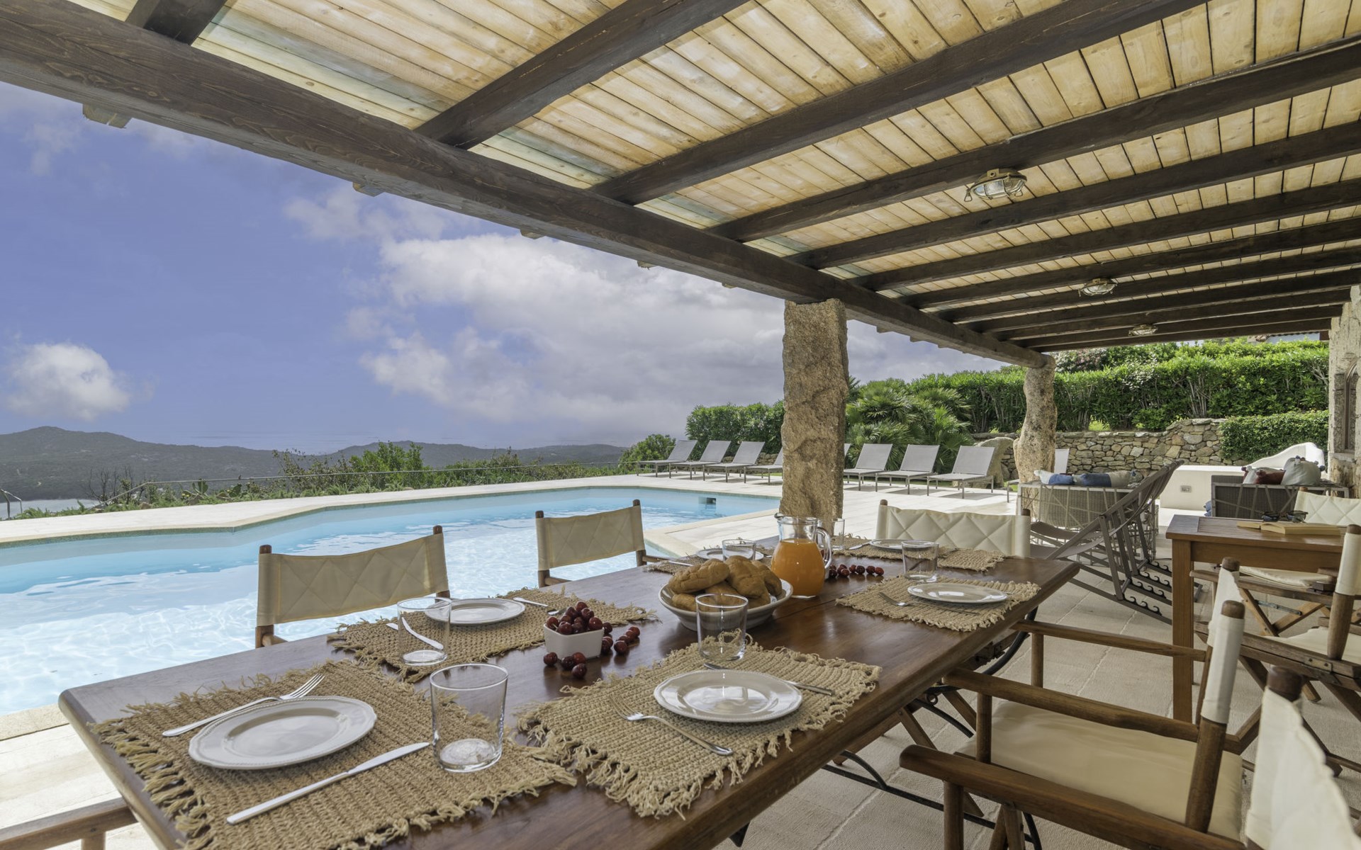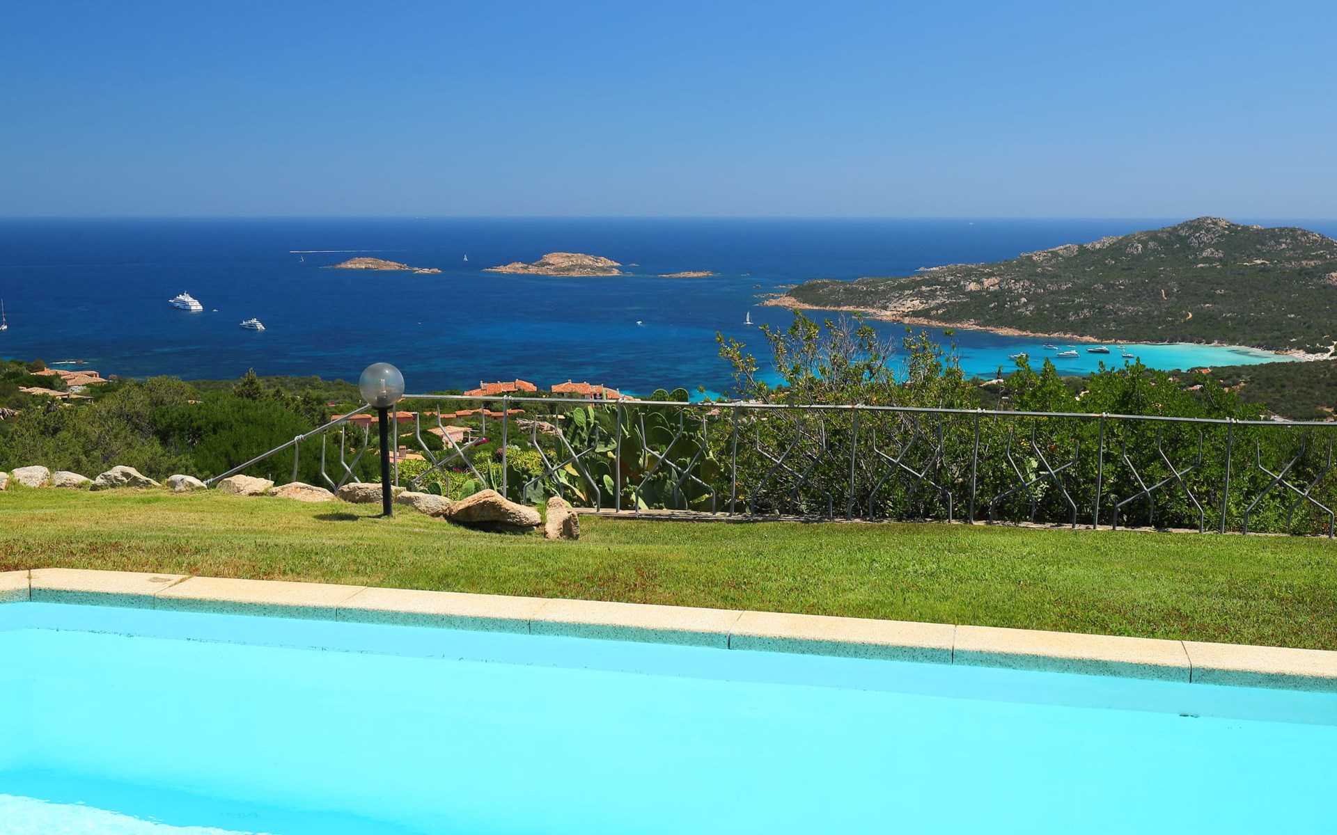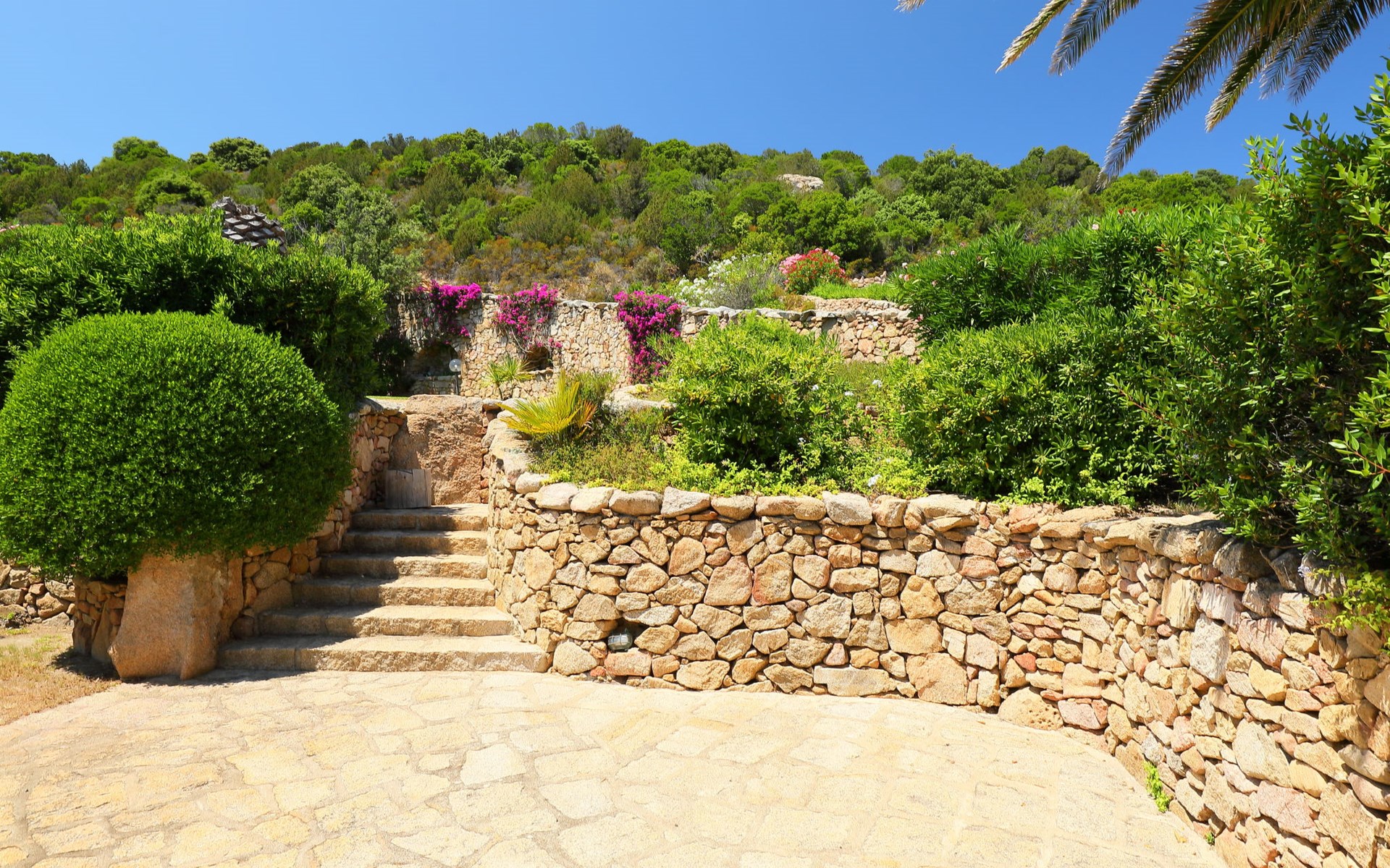 Pantogia: Luxuriöse Villa "Paradiso", auf 2 Stockwerken. 2 km vom Zentrum von Porto Cervo, ruhige, sonnige, erhöhte Lage am Hang, im Villenviertel, 2 km vom Meer. Zur Alleinbenutzung: Grundstück 2'000 m2, Garten 1'500 m2, Schwimmbad (9 x 13 m, 160 - 180 cm tief, saisonale Verfügbarkeit: 07.Mai. - 30.Sep.). Aussendusche, Sitzplatz (15 m2), Gartenmöbel, Grill. Zufahrt bis zum Haus. Parkplatz auf dem Grundstück, öffentliche Parkplätze auf der Strasse. Supermarkt 2 km, Restaurant 1 km, Bar 1 km, Bushaltestelle 1.5 km, Sandstrand 2 km. Sporthafen 3 km. Nahe gelegene Sehenswürdigkeiten: Olbia 30 km, Golfo Aranci 30 km, Palau 30 km, S Teresa di Gallura 50 km. Bitte beachten: Fahrzeug empfohlen.