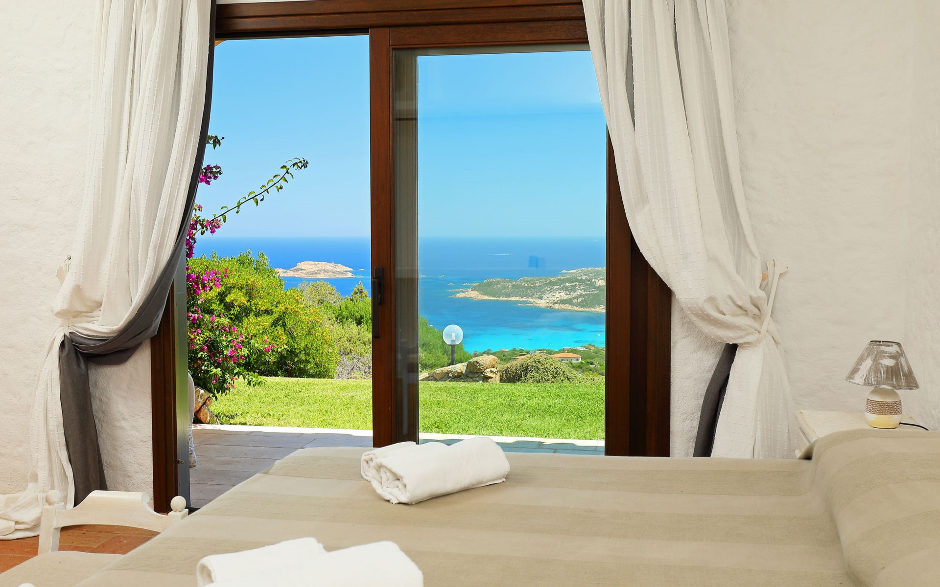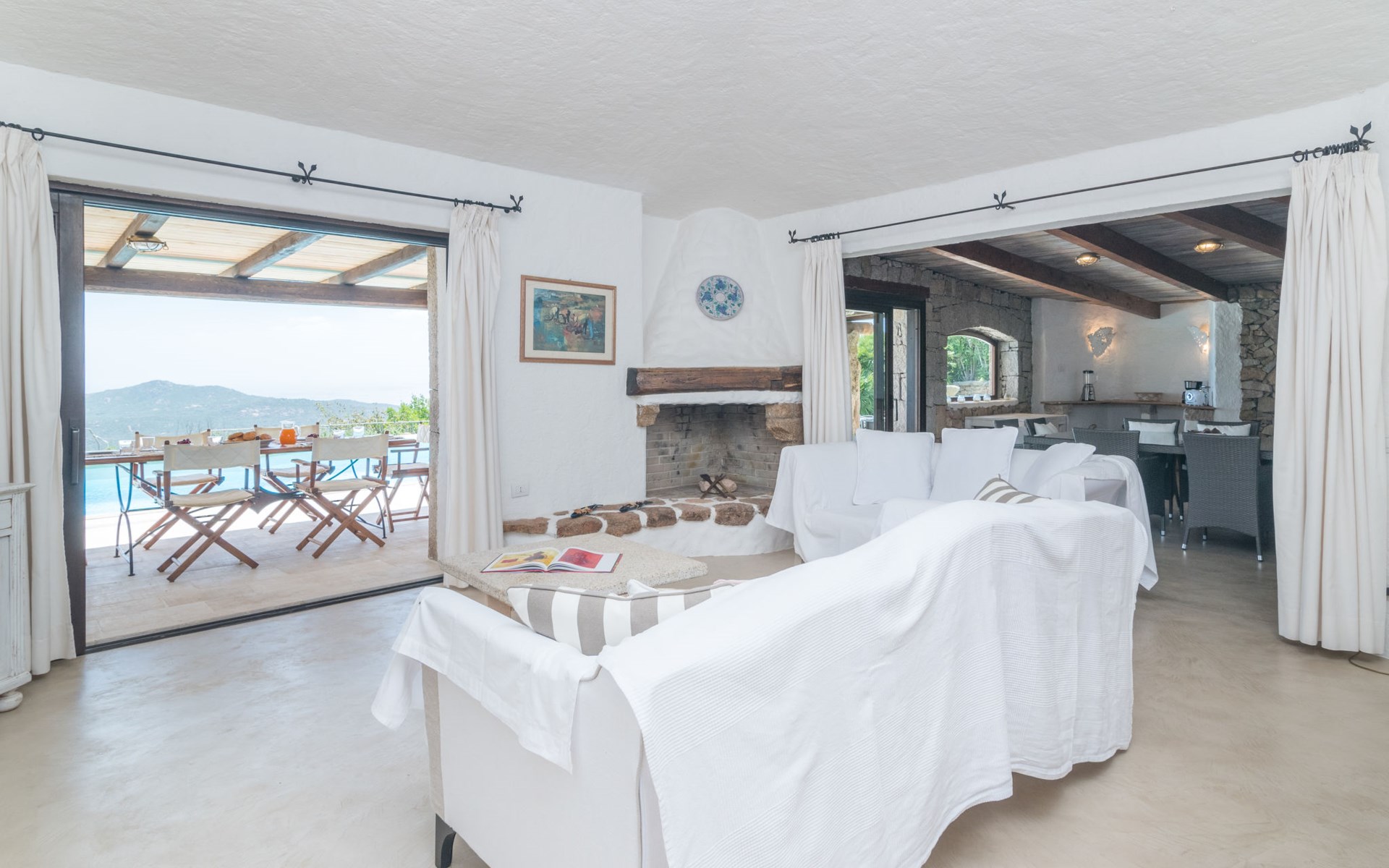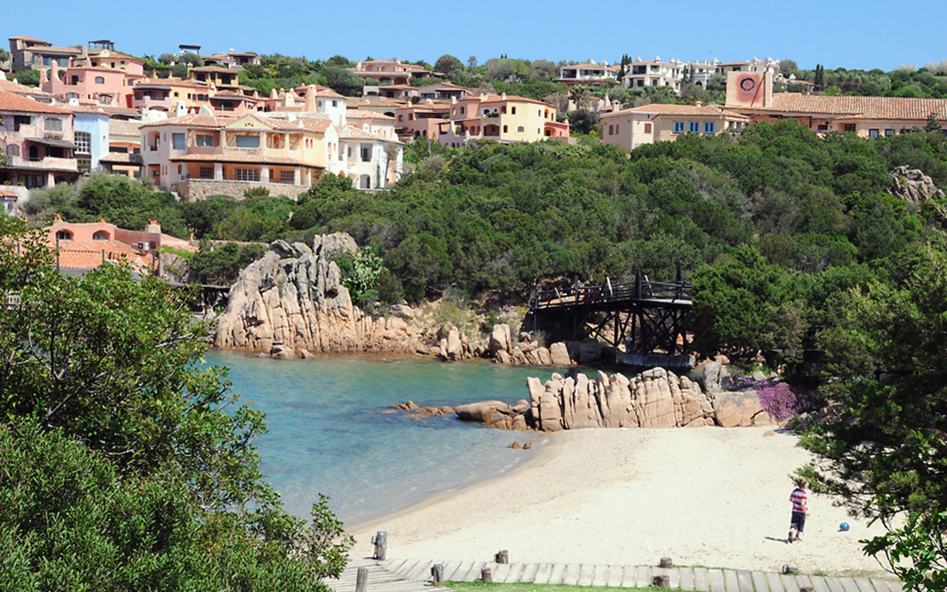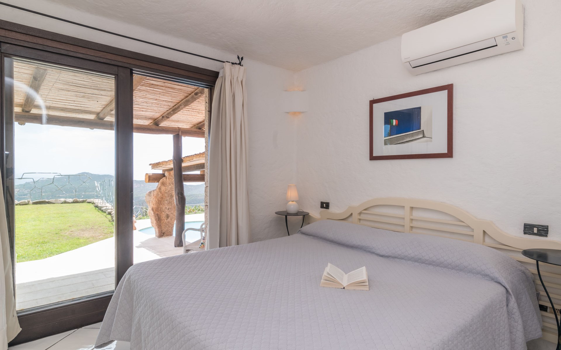 Pantogia: Luxuriöse Villa "Paradiso", auf 2 Stockwerken. 2 km vom Zentrum von Porto Cervo, ruhige, sonnige, erhöhte Lage am Hang, im Villenviertel, 2 km vom Meer. Zur Alleinbenutzung: Grundstück 2'000 m2, Garten 1'500 m2, Schwimmbad (9 x 13 m, 160 - 180 cm tief, saisonale Verfügbarkeit: 07.Mai. - 30.Sep.). Aussendusche, Sitzplatz (15 m2), Gartenmöbel, Grill. Zufahrt bis zum Haus. Parkplatz auf dem Grundstück, öffentliche Parkplätze auf der Strasse. Supermarkt 2 km, Restaurant 1 km, Bar 1 km, Bushaltestelle 1.5 km, Sandstrand 2 km. Sporthafen 3 km. Nahe gelegene Sehenswürdigkeiten: Olbia 30 km, Golfo Aranci 30 km, Palau 30 km, S Teresa di Gallura 50 km. Bitte beachten: Fahrzeug empfohlen.