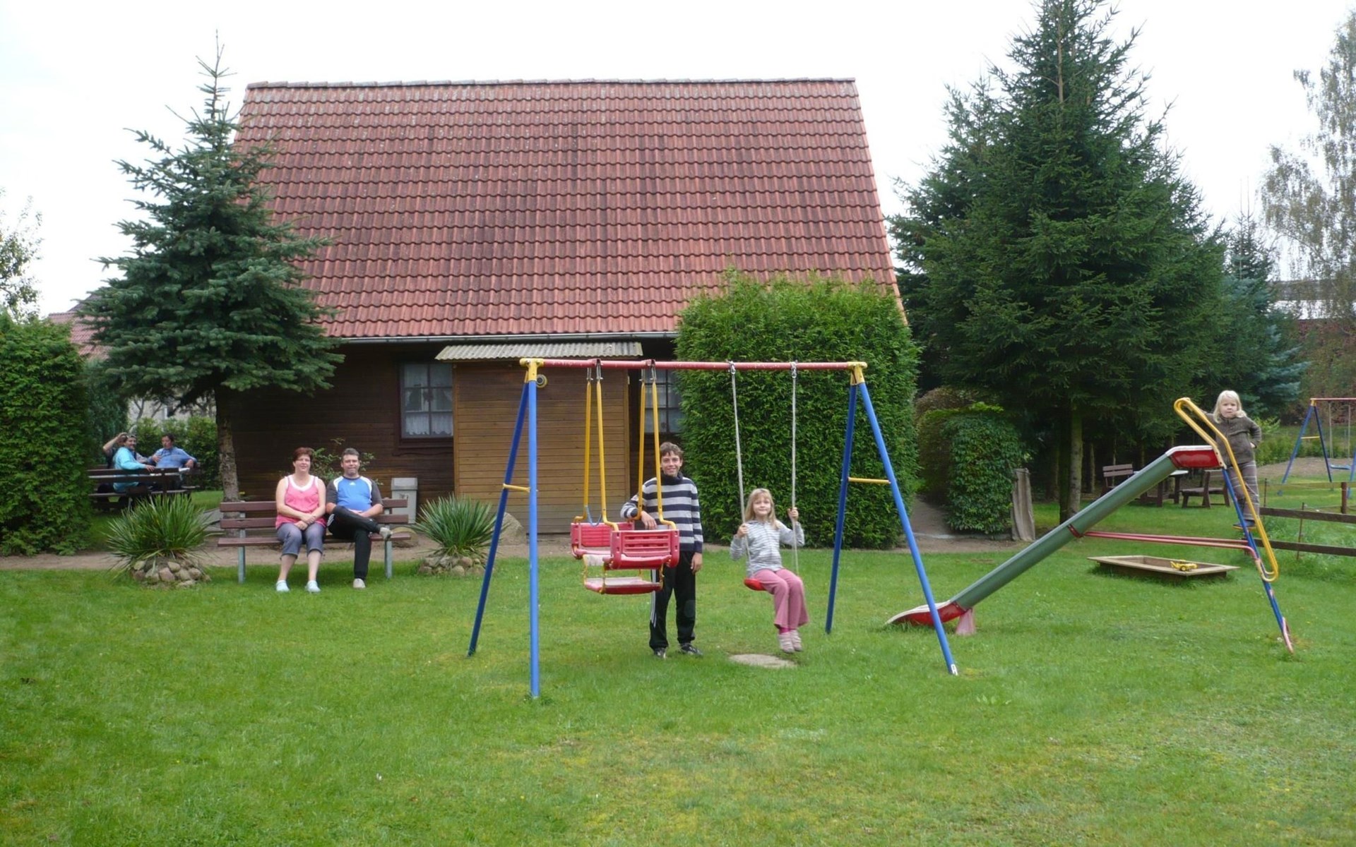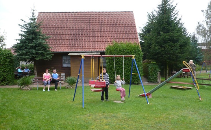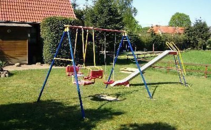 Der Außenbereich lädt mit seiner Terrasse zum Entspannen und Grillen ein, während der riesige Spielplatz den perfekten Ort für Kinder bietet, um sich auszutoben, ohne dabei aus dem Blickfeld der Eltern zu geraten. Der Parkplatz direkt am Ferienhaus ermöglicht ein unkompliziertes Be- und Entladen Ihres Fahrzeugs. Dieser großzügige Außenbereich ist ideal, um die sonnigen Tage voll auszukosten und gemeinsame Momente im Freien zu genießen.