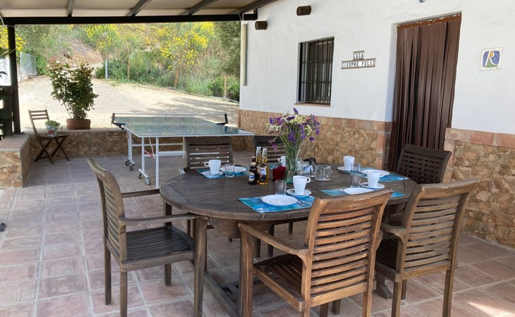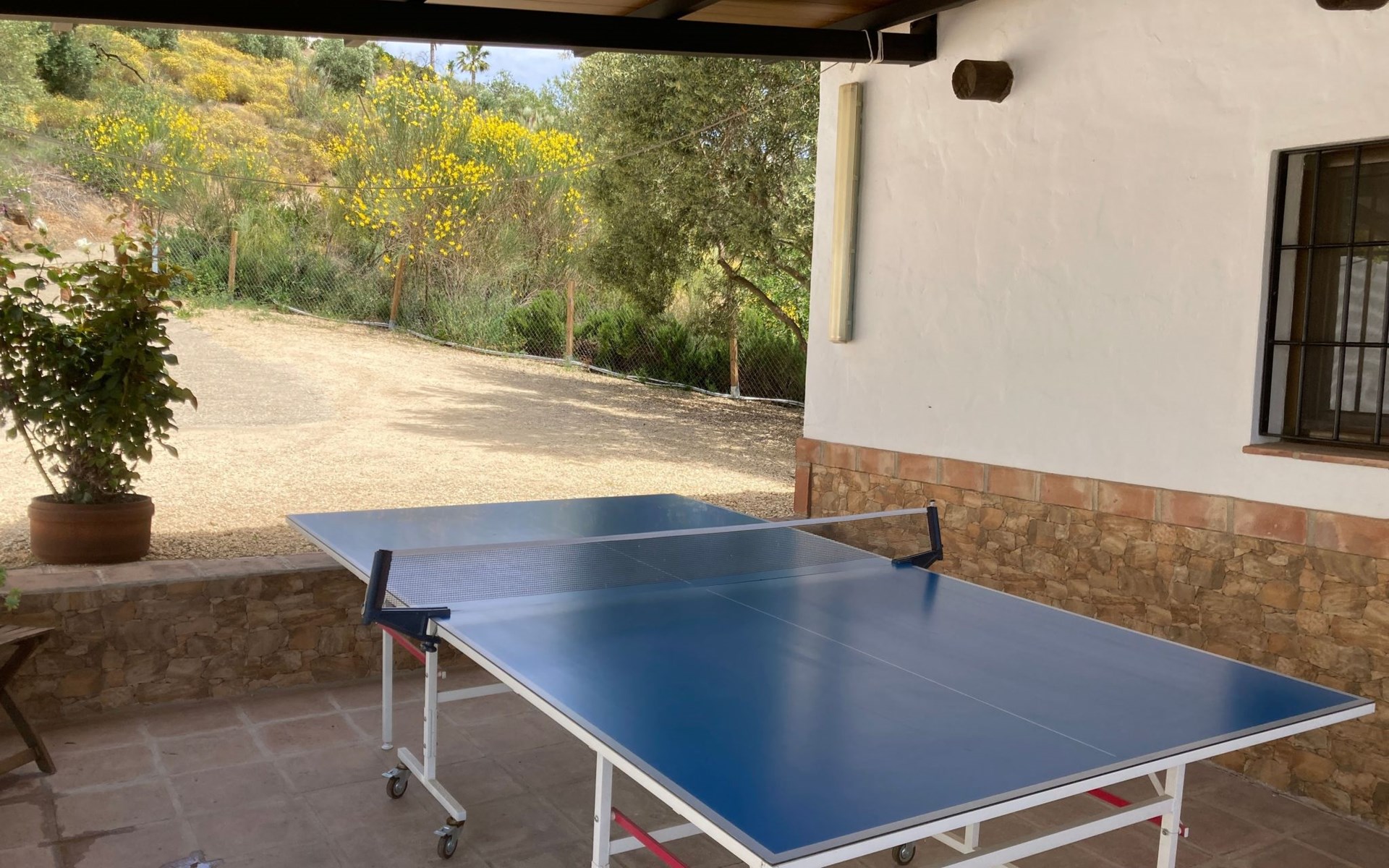 Im Außenbereich finden Sie eine große überdachte Terrasse, ideal für Frühstück, Mittagessen oder zum Grillen. Hier gibt es auch eine Tischtennisplatte für Liebhaber. Außerdem gibt es einen vollständig umzäunten Privatpool mit Sonnenliegen. Der Garten, der ausschließlich Ihnen zur Verfügung steht, garantiert Privatsphäre und ist komplett eingezäunt, so dass er ein sicherer Ort für Ihre mittelgroßen Hunde ist, die hier herzlich willkommen sind.
