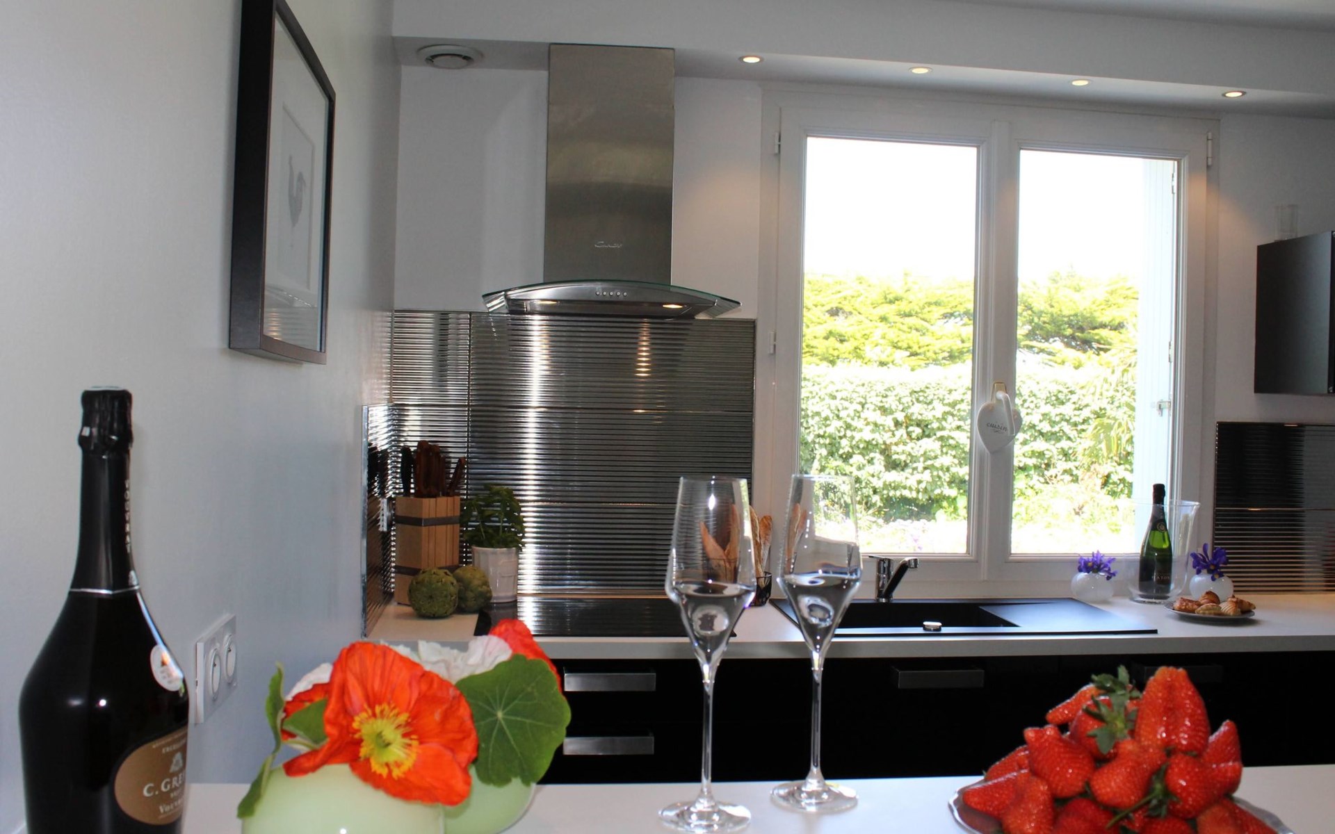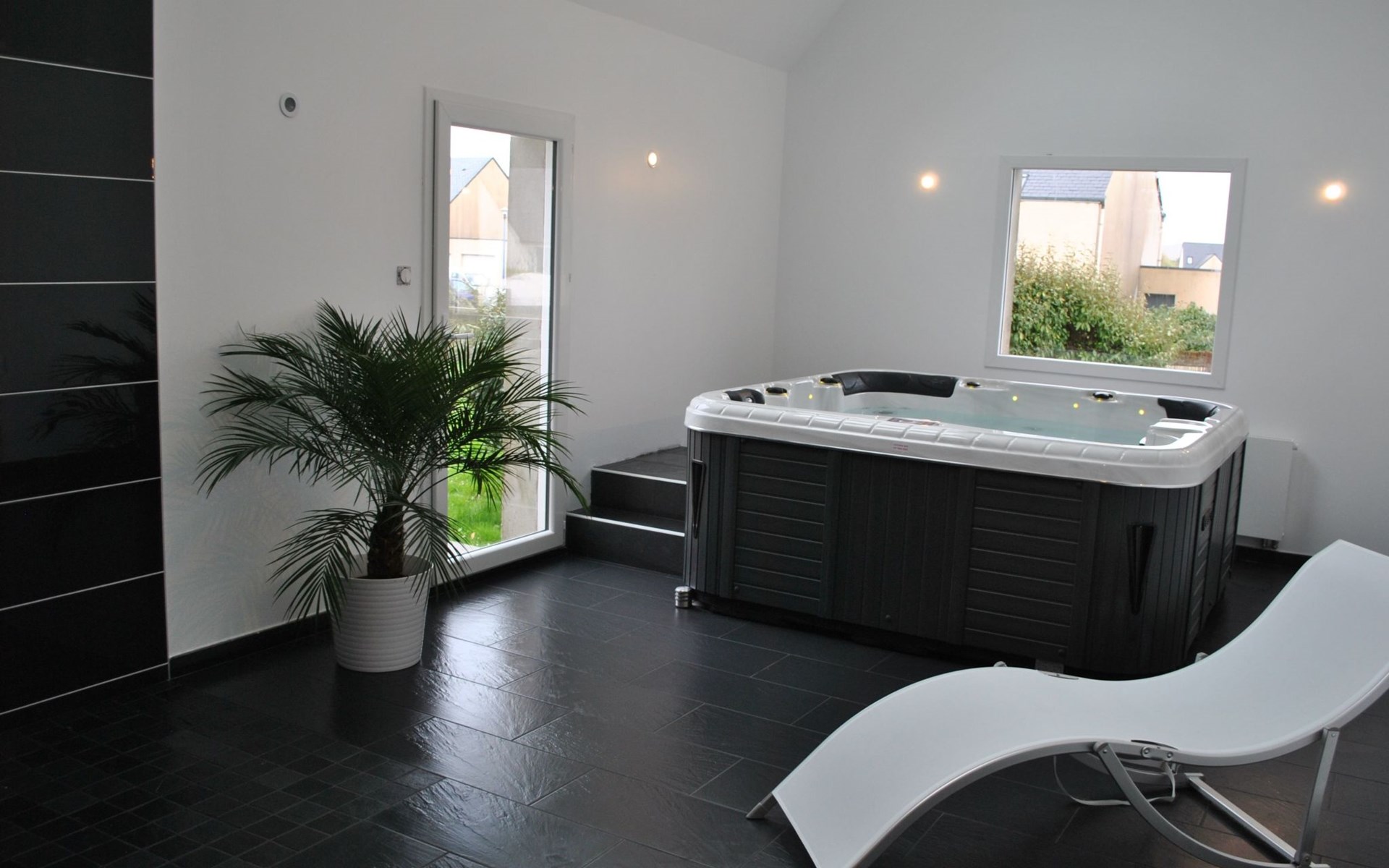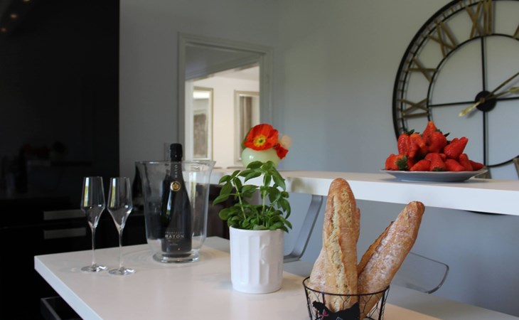 Die Villa DUXCAAR ist ein Bau im klassischen Neo-Bretonischen Stil. Zum Beispiel säumen die für die Bretagne typischen Granitblöcke Türen und Fenster. Auch typisch sind die vier Dachgauben und das aus Naturschiefer gedeckte Dach. Die Villa DUXCAAR wurde und wird fortlaufend renoviert und immer auf einem aktuellen und komfortablen Stand gehalten. So wurden in den letzten Jahren eine komplett neue Küche geschaffen, alle Bäder mit modernen Fliesen, bodentiefer Dusche versehen und es wurden auch alle Fenster erneuert. Es wurde aber auch sehr viel Wert darauf gelegt, dass typische lokale Stilelemente erhalten blieben. So wurde der original bretonische Granit Kamin zwar auch modernisiert, aber der massive Steincharakter in Verbindung mit typischen kleinen Butzenfenster des Brenneinsatzes wurden erhalten. Auch wurden sämtliche vier Schlafzimmer komfortabel und hochwertig neu gestaltet, zum Teil sogar mit kleinem Granitarbeitsbereich, um auch den Anforderungen für einen "Flexcation"-Aufenthalt gerecht sein zu können. Für Aufenthalte ab dem Frühjahr 2022 wird sogar ein separater komplett neu ausgebauter Office Bereich mit Schreibtisch, Bildschirm, Drucker und hochwertiger Webcam zur Verfügung stehen, damit auch längere Aufenthalte mit einer Kombination aus Arbeit und Urlaub jederzeit möglich sein werden.Absolut das Wichtigste beim Umbau war der SPA Bereich. Aus einem alten "Grenier", wurde ein mit Licht durchzogener Bereich geschaffen, hier findet man immer Ruhe und Erholung, auch wenn es draußen einmal etwas ungemütlicher scheint. Es wurden große Dachfenster eingebaut um Oberlicht zu gewinnen, die Decken wurden entfernt so entstand ein heller Raum mit über vier Meter Höhe. Zentral steht dort der große Jacuzzi, wir haben eine weitere großzügige Duschmöglichkeit geschaffen und im weiteren eine Infrarot Sauna platziert. Außerdem befinden sich vier komfortable Ruheliegen zur Entspannung im SPA Bereich. Der gesamte Spa Bereich verfügt über ein angenehmes indirektes Beleuchtungssystem aus hochwertigen LED Leuchten.Das gesamte Haus ist hochwertig ausgestattet und insbesondere bei der Küche wurde sehr viel Wert darauf gelegt, dass die Ausstattung auch Ansprüchen an das kulinarische französische "Savoir Vivre" genügt. Beispielhaft seien hier ein eigener Weinkühlschrank genannt, aber auch kleinere Ausstattungsmerkmale wie Laguiole Messer, Austernmesser, Hummer-Cracker und ähnliches.