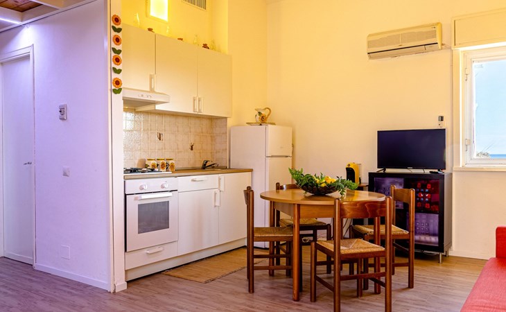 Draußen bietet die große Terrasse nicht nur einen herrlichen Blick auf das Meer, sondern auch einen perfekten Platz, um ruhige Momente im Freien zu genießen. Die Residenz verfügt über großzügige Gemeinschaftsbereiche, darunter ein kleiner Spielplatz für die Kleinen, eine Bar für erfrischende Pausen und Duschen im Freien sowie einen saisonal geöffneten Swimmingpool, in dem Sie sich entspannen und vergnügen können.