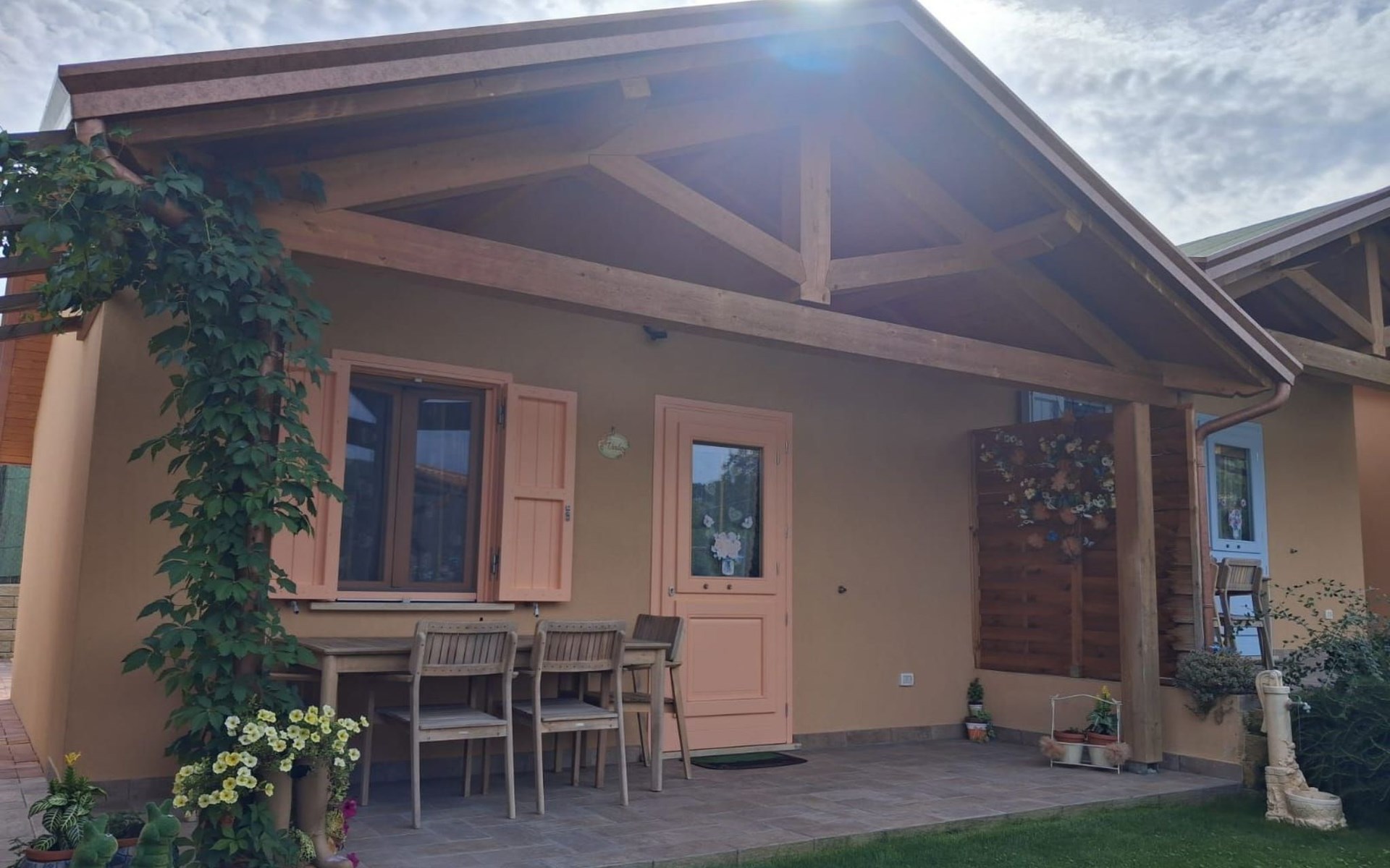 Das Ferienhaus ist einstöckig und ebenerdig. Es bietet Platz für bis zu 5 Personen und verfügt über jeglichen Komfort: ein Schlafzimmer mit Doppelbett, ein blaues Bad, eine Küche, einen kleinen Dachboden und eine gemütliche Veranda, auf der man je nach Jahreszeit auch im Freien essen kann.