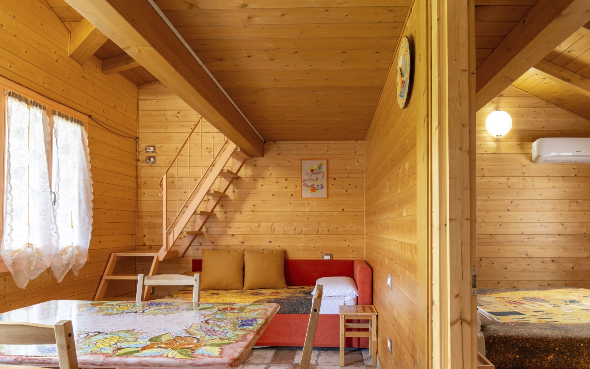 Das Innere jedes Ferienhauses ist mit allen notwendigen Annehmlichkeiten ausgestattet, um einen unbeschwerten Aufenthalt zu gewährleisten. Klimaanlagen sorgen jederzeit für ein ideales Klima und Haushaltsgeräte wie Geschirrspüler, Induktionsherd, Mikrowelle, Kaffeemaschine und vieles mehr, im Preis inbegriffenes WiFi und Android-Fernseher ermöglichen es Ihnen, Ihren Urlaub mit maximaler Autonomie zu genießen.