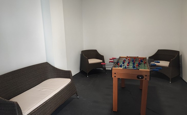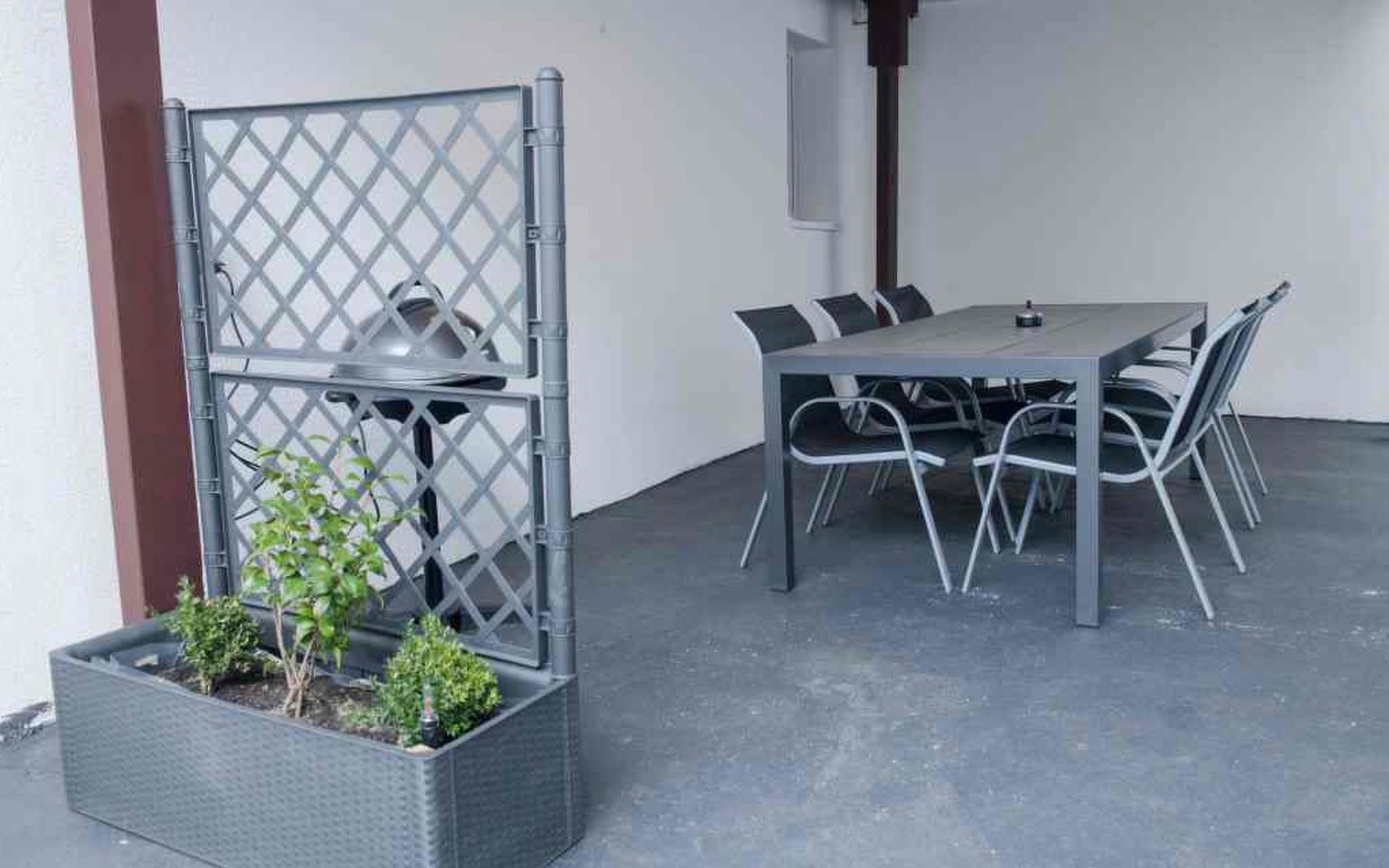 Im Hinterhof finden Sie zwei gemütliche, überdachte Sitzecken und eine Möglichkeit zum Grillen mit einem Elektrogrill. Die Sitzecken stehen für alle Gäste des Hauses zur freien Verfügung. In einem Separaten Raum steht ein Kicker Tisch, der ebenfalls von allen Gästen im Haus benutzt werden darf.