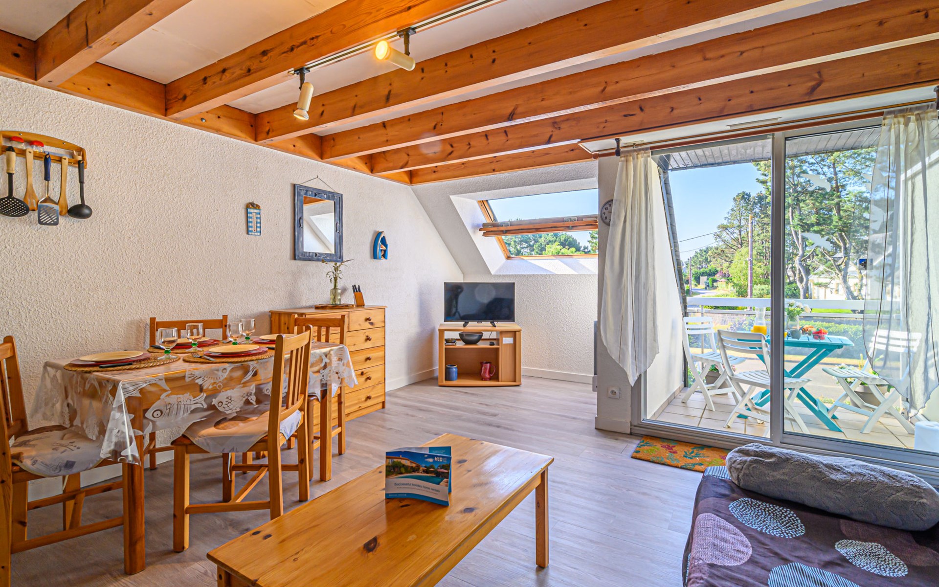 Appartementhaus "Phare de Kernevest". Am Ortsrand, 200 m vom Meer, 500 m vom Strand. Zur Mitbenutzung: Tennis, Parkplatz. Einkaufsgeschäft 2 km, Lebensmittelgeschäft 2 km, Supermarkt 2 km, Restaurant 2 km, Bäckerei 2 km, Sandstrand "Kernevest" 500 m. Golfplatz (18 Loch) 18 km, Segelschule 500 m. Nahe gelegene Sehenswürdigkeiten: La Trinité sur Mer 4.3 km, Alignements de Carnac 8 km, Auray 14 km, Presqu'Ile de Quiberon 21 km, Vannes 30 km, Belle-Ile-en-Mer.