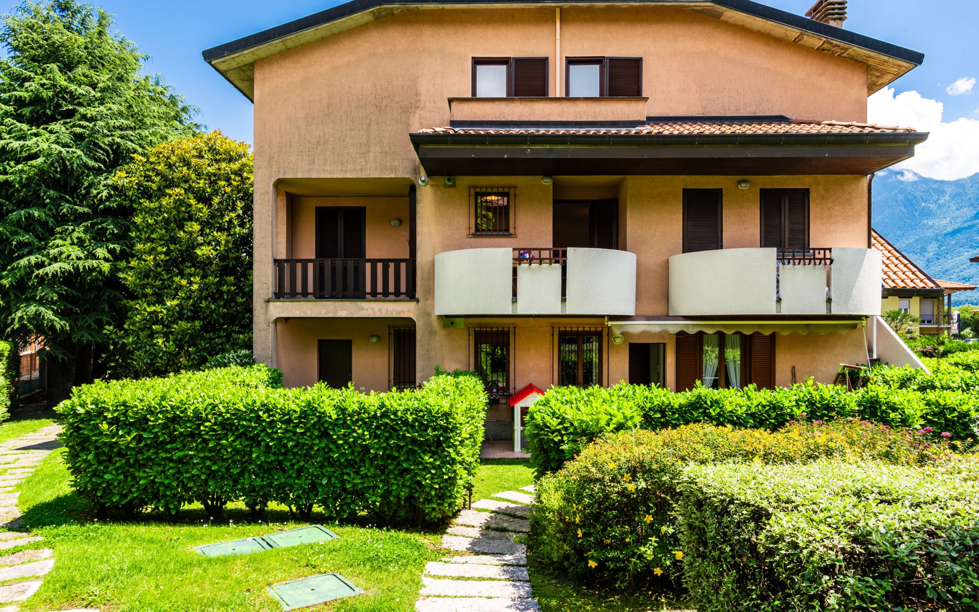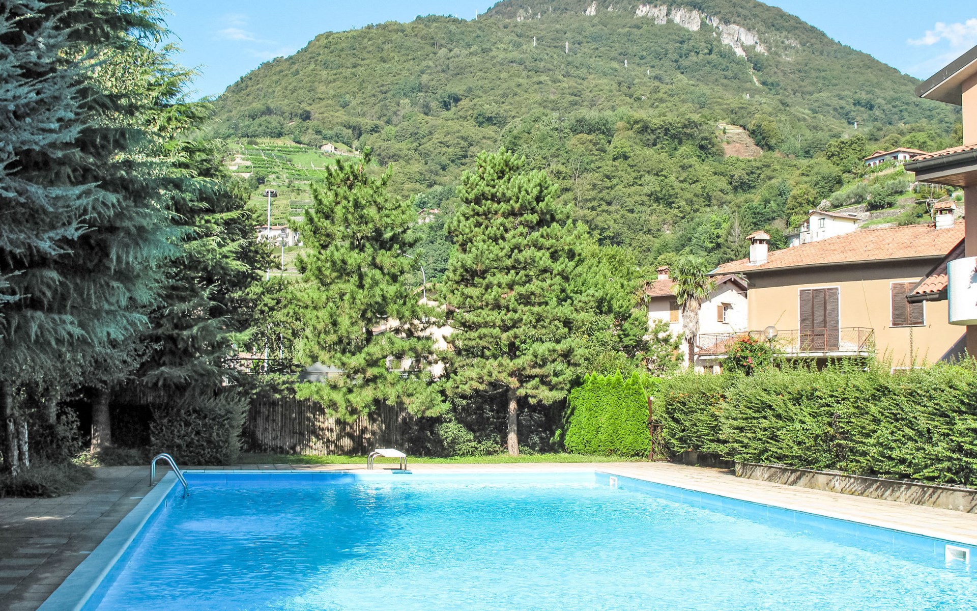 Residenz "Residence la Roggia", auf 3 Stockwerken. 4 Häuser in der Residenz. 51 Wohnungen in der Residenz. Im Ortsteil, 750 m vom Zentrum von Domaso, 25 km vom Zentrum von Menaggio, 50 km vom Zentrum von Como, 500 m vom See. Zur Mitbenutzung: Grundstück 2'000 m2 (eingezäunt), Park, Rasen und Blumen, Schwimmbad geschützt (20 x 9 m, 140 - 230 cm tief, saisonale Verfügbarkeit: 01.Jun. - 15.Sep.). Aussendusche, Poolpflege durch den Besitzer/Gärtner. Wäschewechsel (zusätzlich extra). Handtuchwechsel (zusätzlich extra). Parkplatz, Einzelgarage beim Haus. Supermarkt 300 m, Restaurant 50 m, Bar 350 m, Zentrum zu Fuss in 5 Minuten erreichbar, Bushaltestelle 450 m, Bahnstation "Colico" 13.7 km, Fähre "Domaso" 1.2 km, Grasstrand 500 m. Jacht-Hafen 400 m, Golfplatz (18 Loch) 25 km, Surfschule 750 m, Segelschule 400 m, Radweg 500 m, Kinderspielplatz 450 m. Nahe gelegene Sehenswürdigkeiten: Villa Camilla, Chiesa di San Bartolomeo, Ponte del Passo. Bekannte Skigebiete sind gut erreichbar: Madesimo. Bekannte Seen in der Umgebung sind gut erreichbar: Lago di Mezzola. Wandergebiete: Grotto Dangri, Monte Berlinghera. Der Besitzer akzeptiert keine Jugendgruppen. Badekappenpflicht.