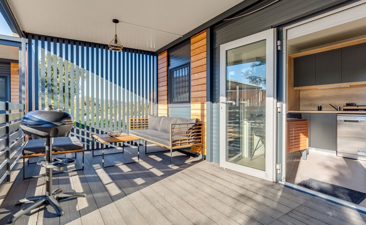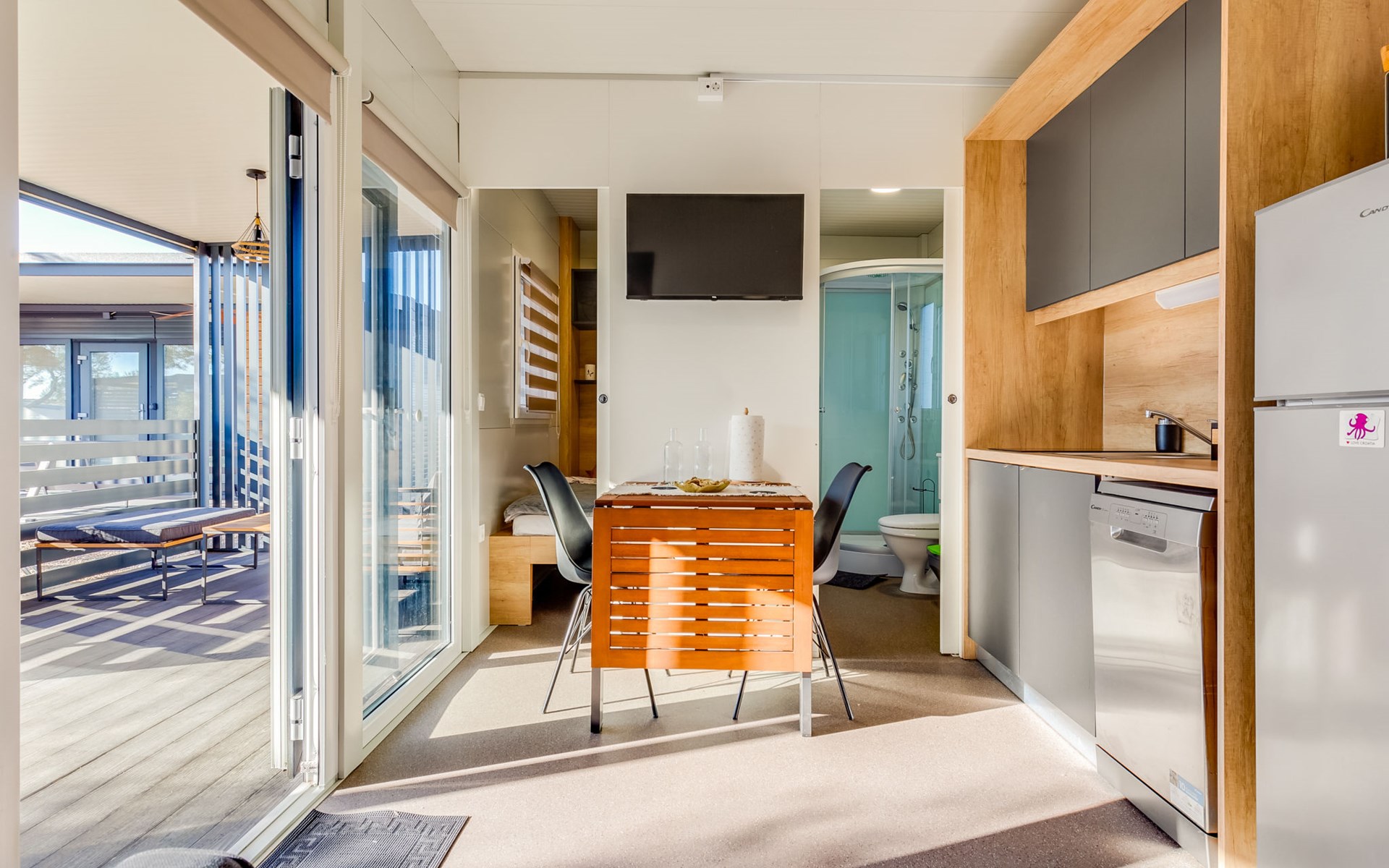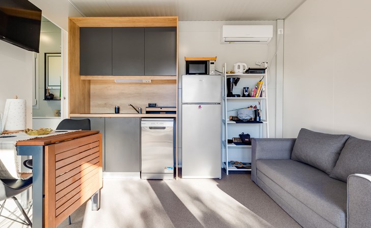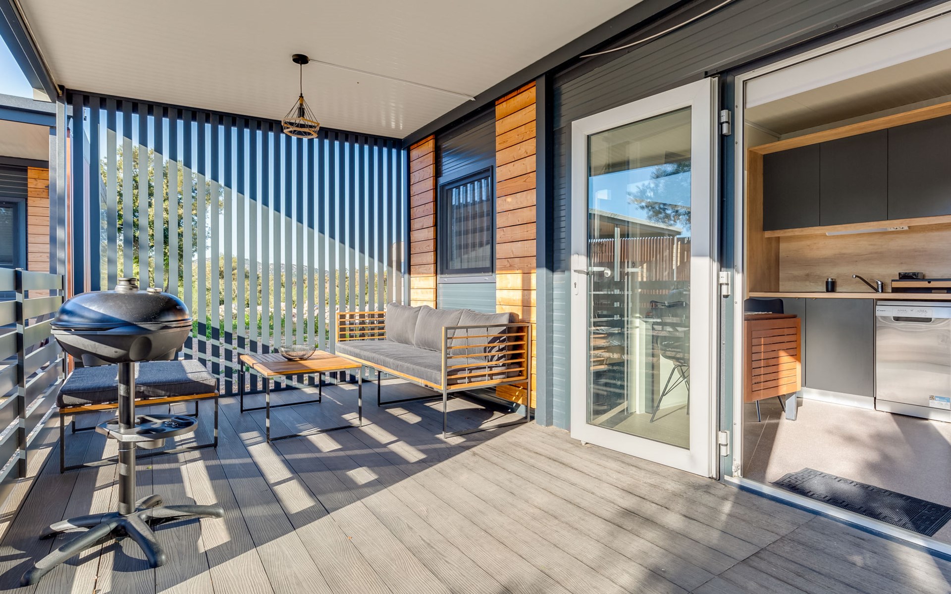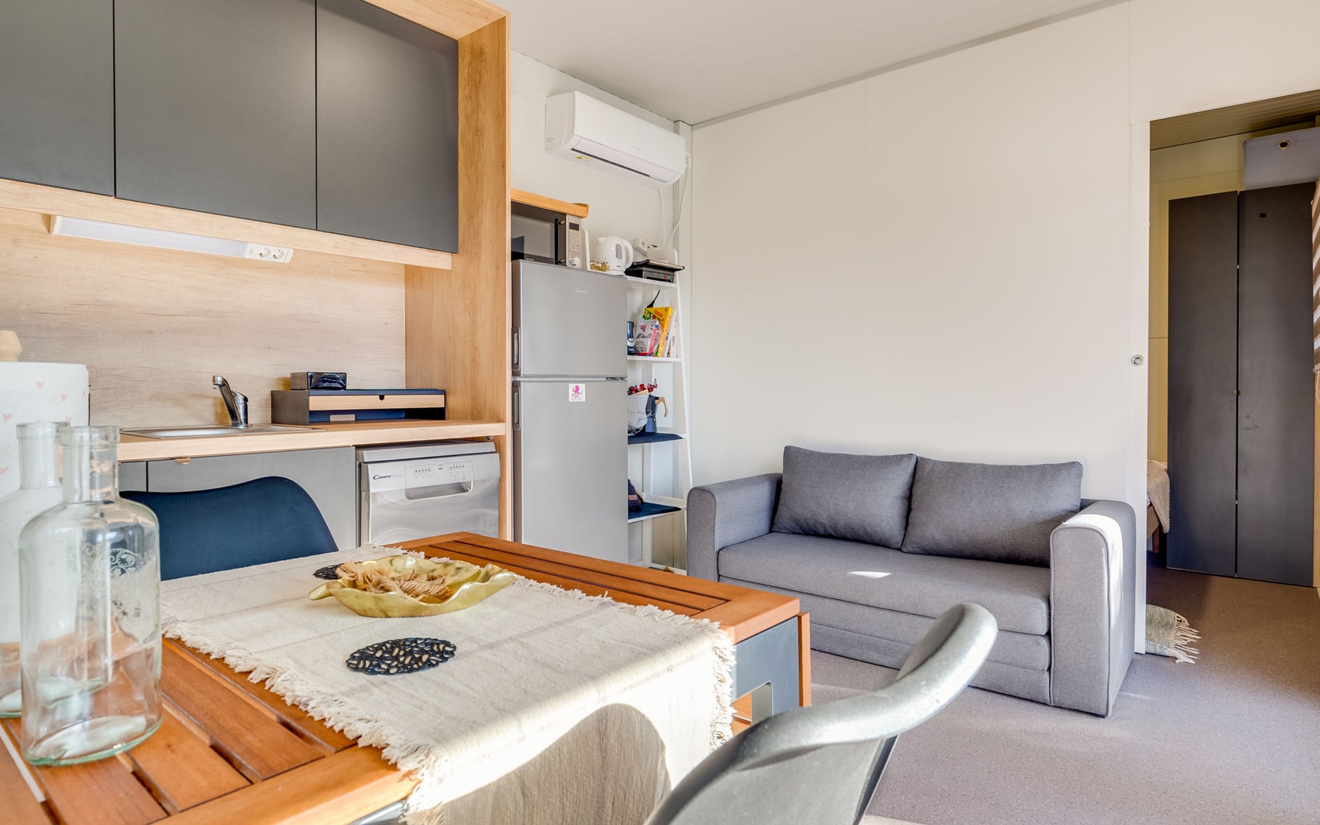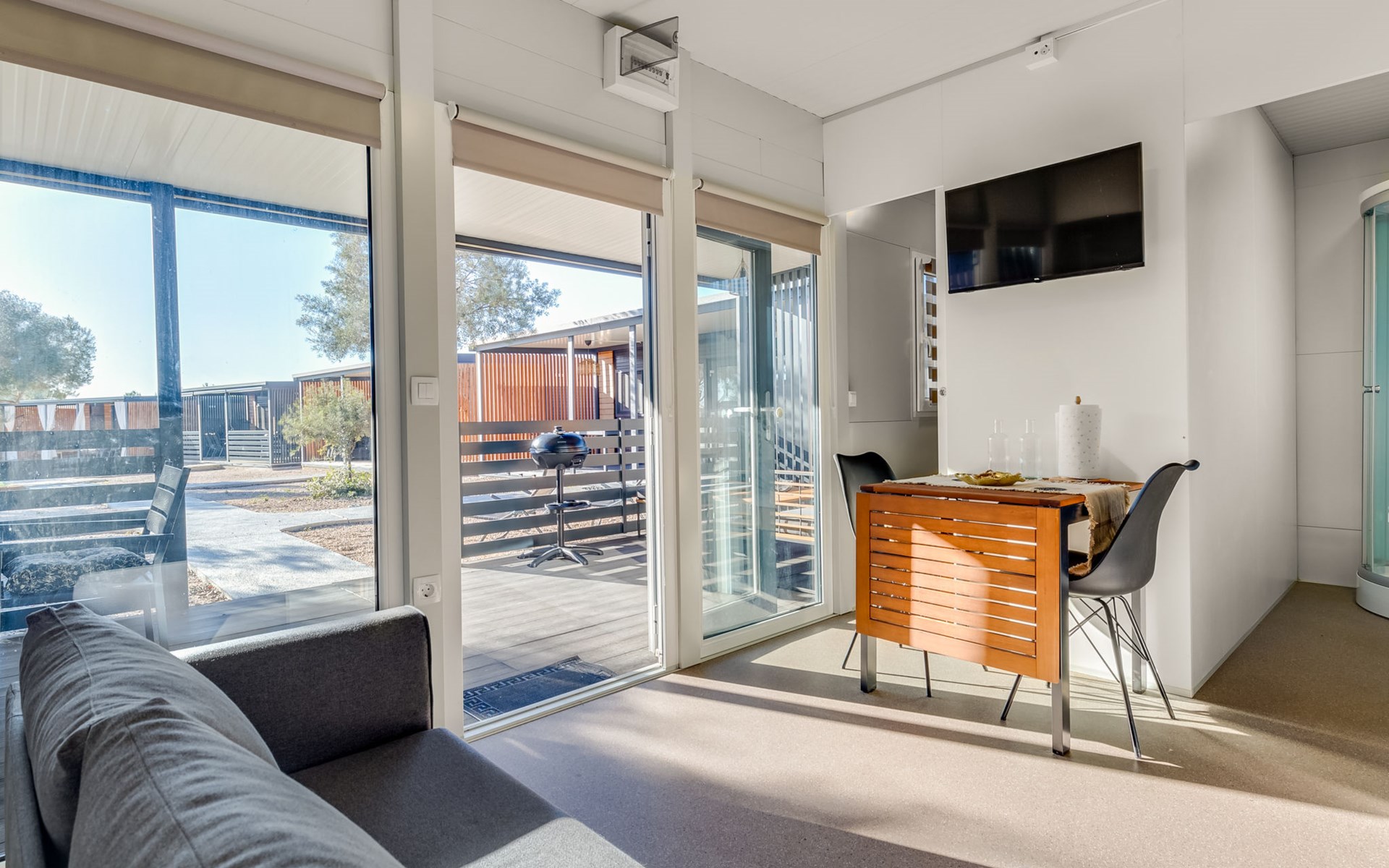 Camping Pirovac: Bungalow "Delux Eco", Baujahr 2023. Sonnige Lage, 150 m vom Meer, 150 m vom Strand. Zur Mitbenutzung: Grundstück mit Bäumen, Schwimmbad beheizt (9 x 4 m, 34 m2, 150 cm tief, saisonale Verfügbarkeit: 01.Mai. - 15.Sep.). Dusche/WC im Poolbereich, Tischtennis, Kinderspielplatz. In der Anlage: Restaurant, Bar, Internetzugang. Parkplatz beim Haus auf dem Grundstück. Einkaufsgeschäft 500 m, Restaurant, Café 20 m, Bushaltestelle 1 km, Kieselstrand, betonierter Strand 150 m. Jacht-Hafen 2 km. Nahe gelegene Sehenswürdigkeiten: NP Krka 33 km, Aquapark 30 km. Bekannte Seen in der Umgebung sind gut erreichbar: Vransko jezero 24 km.