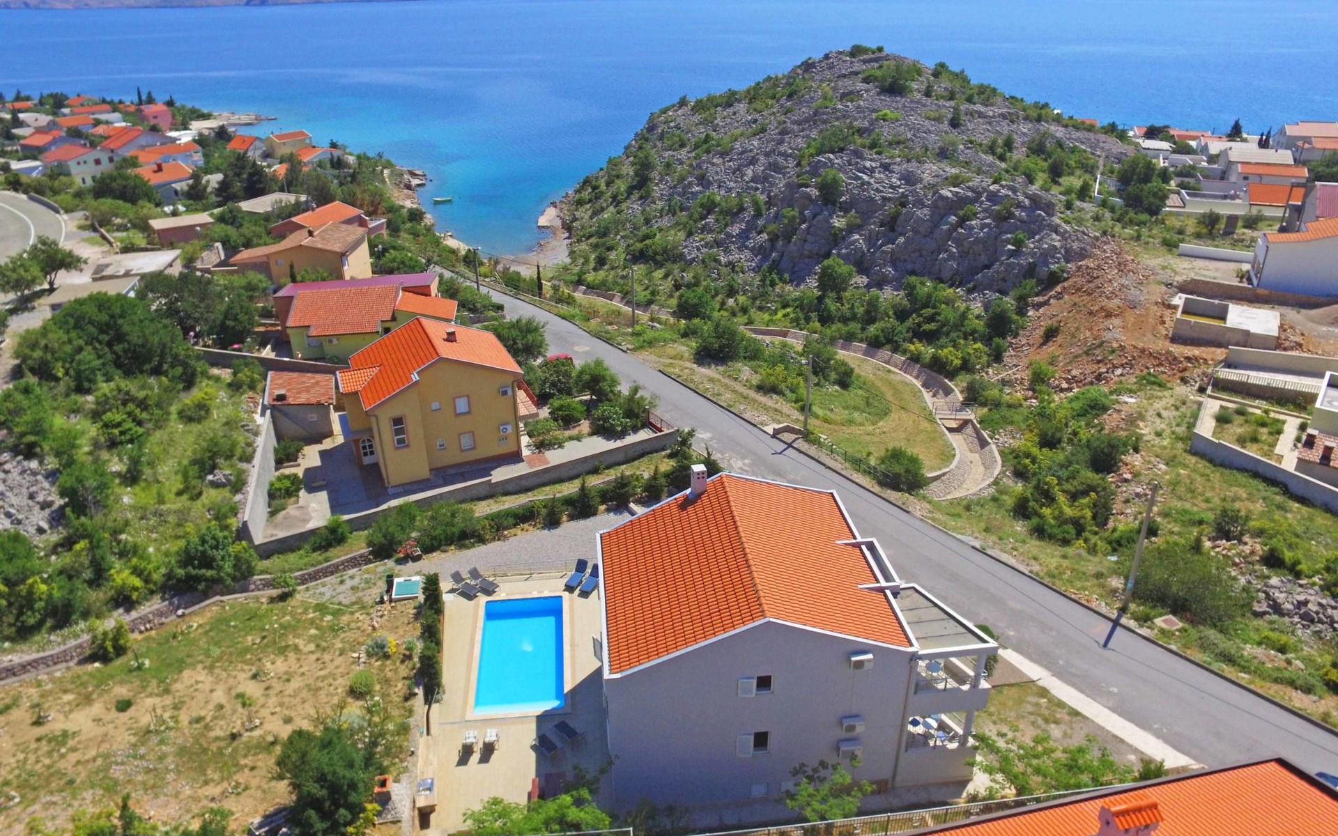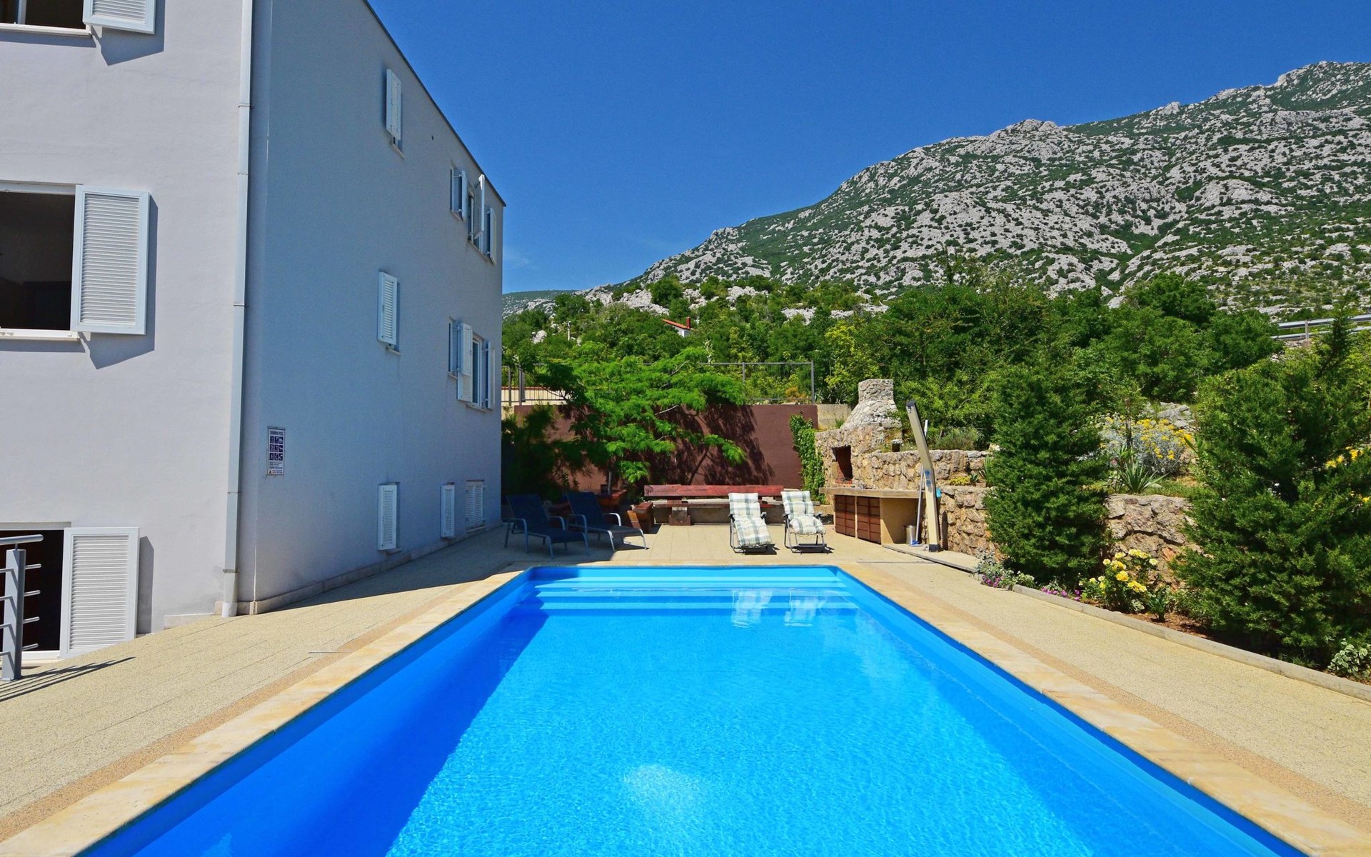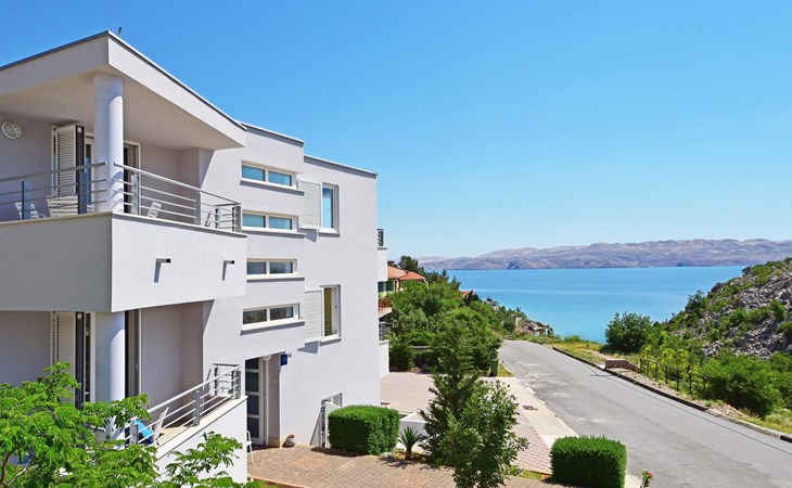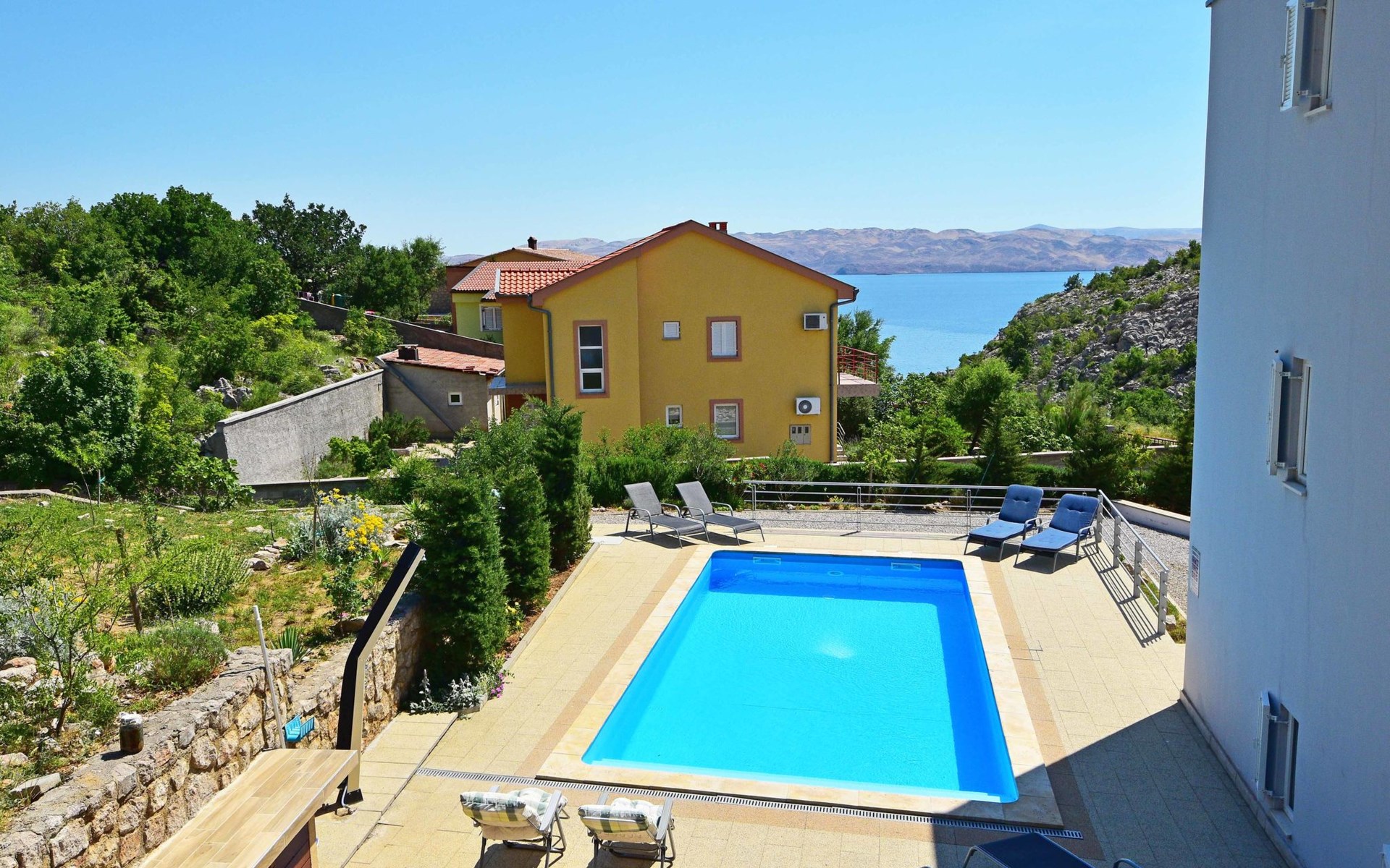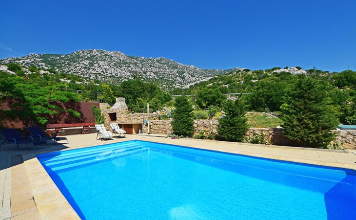 Ribarica 4 km von Karlobag: Appartementhaus "Sani". Sonnige Lage am Hang, 90 m vom Meer, 90 m vom Strand. Zur Mitbenutzung: Schwimmbad eckig (8 x 4 m, 140 cm tief, saisonale Verfügbarkeit: 01.Mai. - 30.Sep.) mit Innentreppe. Aussendusche, Terrasse, Gartenmöbel, Grill. Im Hause: Internetzugang. Zur Verfügung: Boot (extra). Parkplatz auf dem Grundstück. Einkaufsgeschäft 350 m, Lebensmittelgeschäft 5 km, Restaurant 350 m, Bushaltestelle 1 km, Kieselstrand 90 m, Felsstrand 350 m.