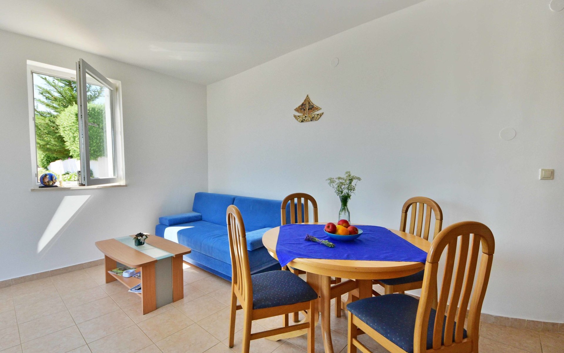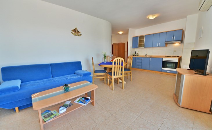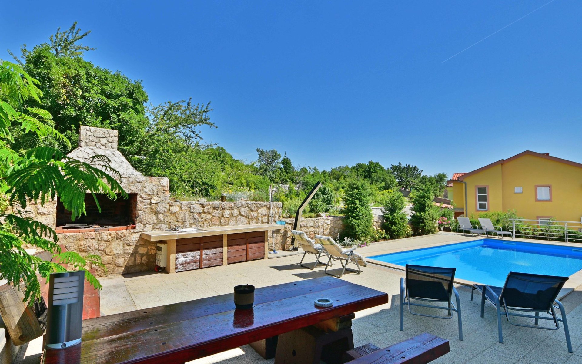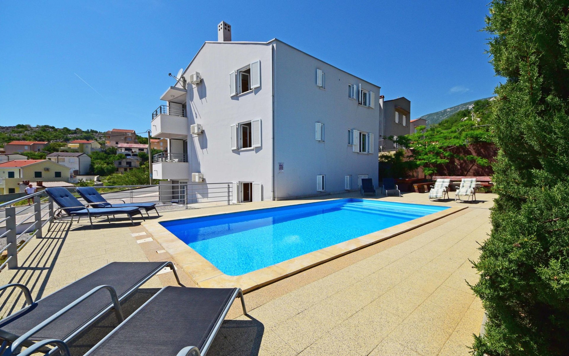 Ribarica 4 km von Karlobag: Appartementhaus "Sani". Sonnige Lage am Hang, 90 m vom Meer, 90 m vom Strand. Zur Mitbenutzung: Schwimmbad eckig (8 x 4 m, 140 cm tief, saisonale Verfügbarkeit: 01.Mai. - 30.Sep.) mit Innentreppe. Aussendusche, Terrasse, Gartenmöbel, Grill. Im Hause: Internetzugang. Zur Verfügung: Boot (extra). Parkplatz auf dem Grundstück. Einkaufsgeschäft 350 m, Lebensmittelgeschäft 5 km, Restaurant 350 m, Bushaltestelle 1 km, Kieselstrand 90 m, Felsstrand 350 m.