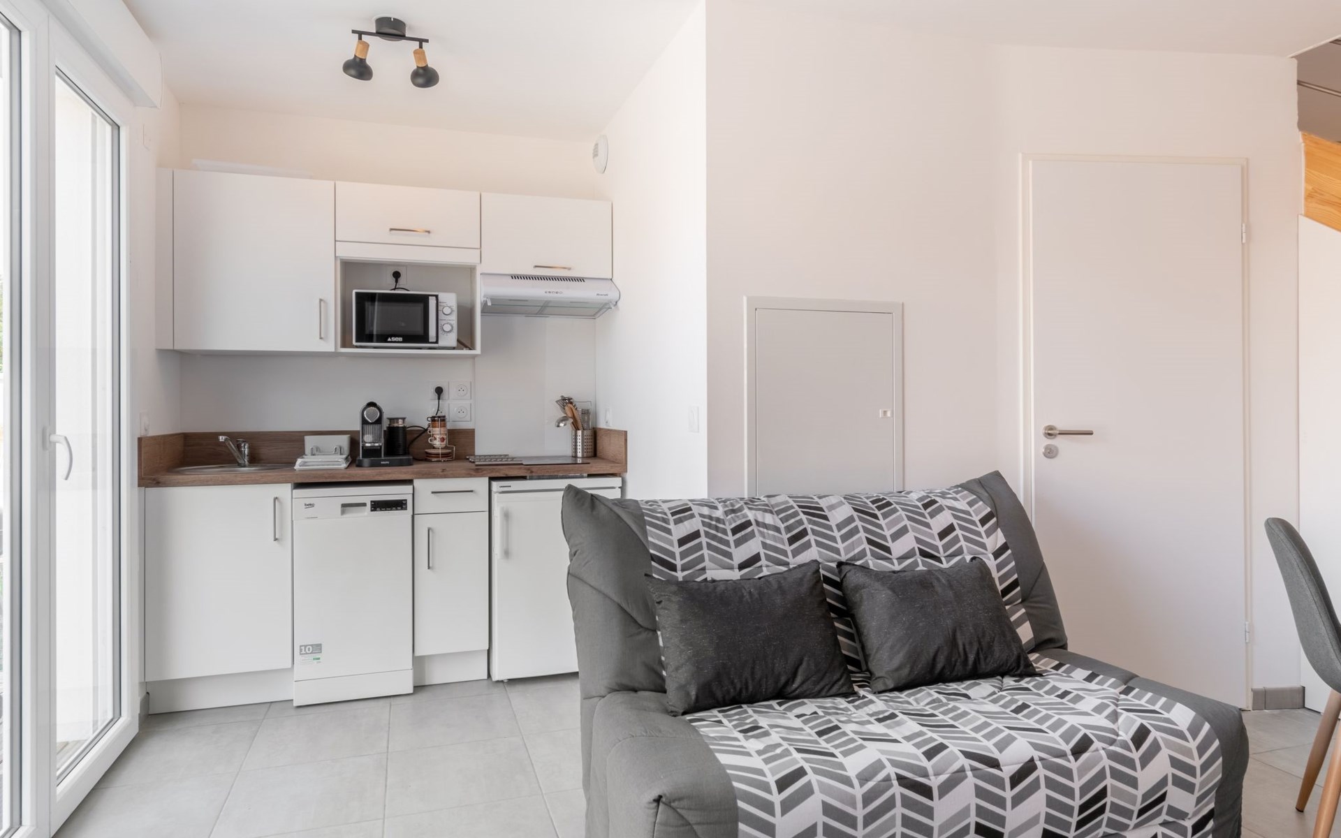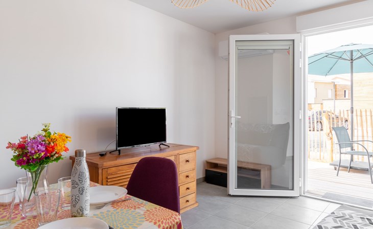 Residenz "Soleil couchant". Im Ort, 900 m vom Zentrum von de Mimizan Plage, 100 m vom Waldrand, 900 m vom Meer, 10 km vom See, 900 m vom Strand. Zur Mitbenutzung: Schwimmbad eingezäunt (4 x 5 m, 150 - 160 cm tief, saisonale Verfügbarkeit: 01.Mai. - 30.Sep. Öffnungszeiten Schwimmbad: 10:00-21:00). Einkaufsgeschäft 850 m, Lebensmittelgeschäft, Bäckerei 800 m, Fußgängerzone 800 m, Fahrradverleih 750 m, Bushaltestelle "Office du tourisme Mimizan" 700 m, Sandstrand "la garluche" 900 m, Badesee "Aureilhan" 10 km. Golfplatz (9 Loch) 7 km, Surfschule 900 m, Tennis 2.5 km. Nahe gelegene Sehenswürdigkeiten: Arcachon 70 km, Biscarrosse 40 km, parcs aventure 7 km, Disc Golf 2 km. Bekannte Seen in der Umgebung sind gut erreichbar: Aureilhan Mimizan 8 km. Alle Häuser/Wohnungen sind individuell eingerichtet.