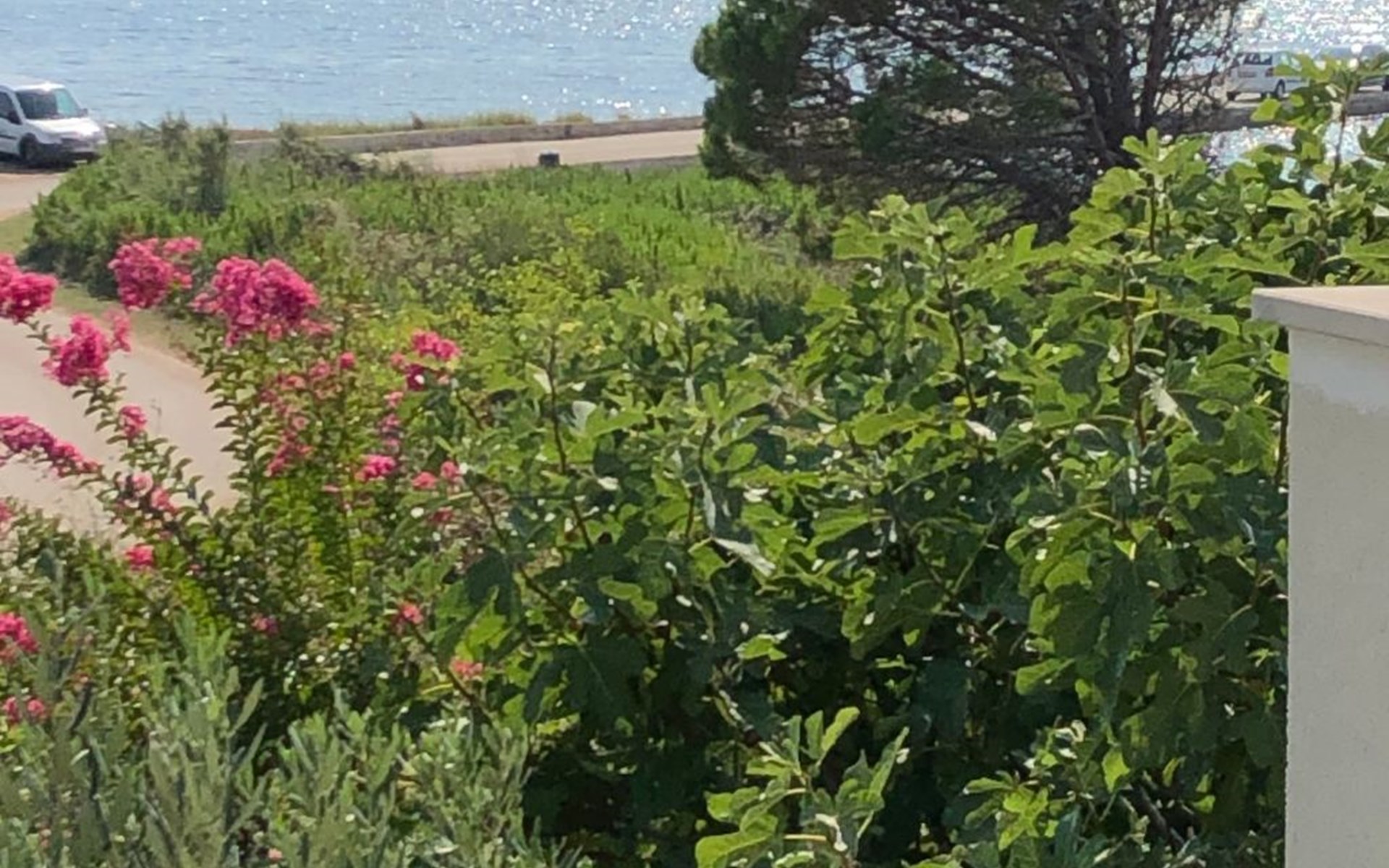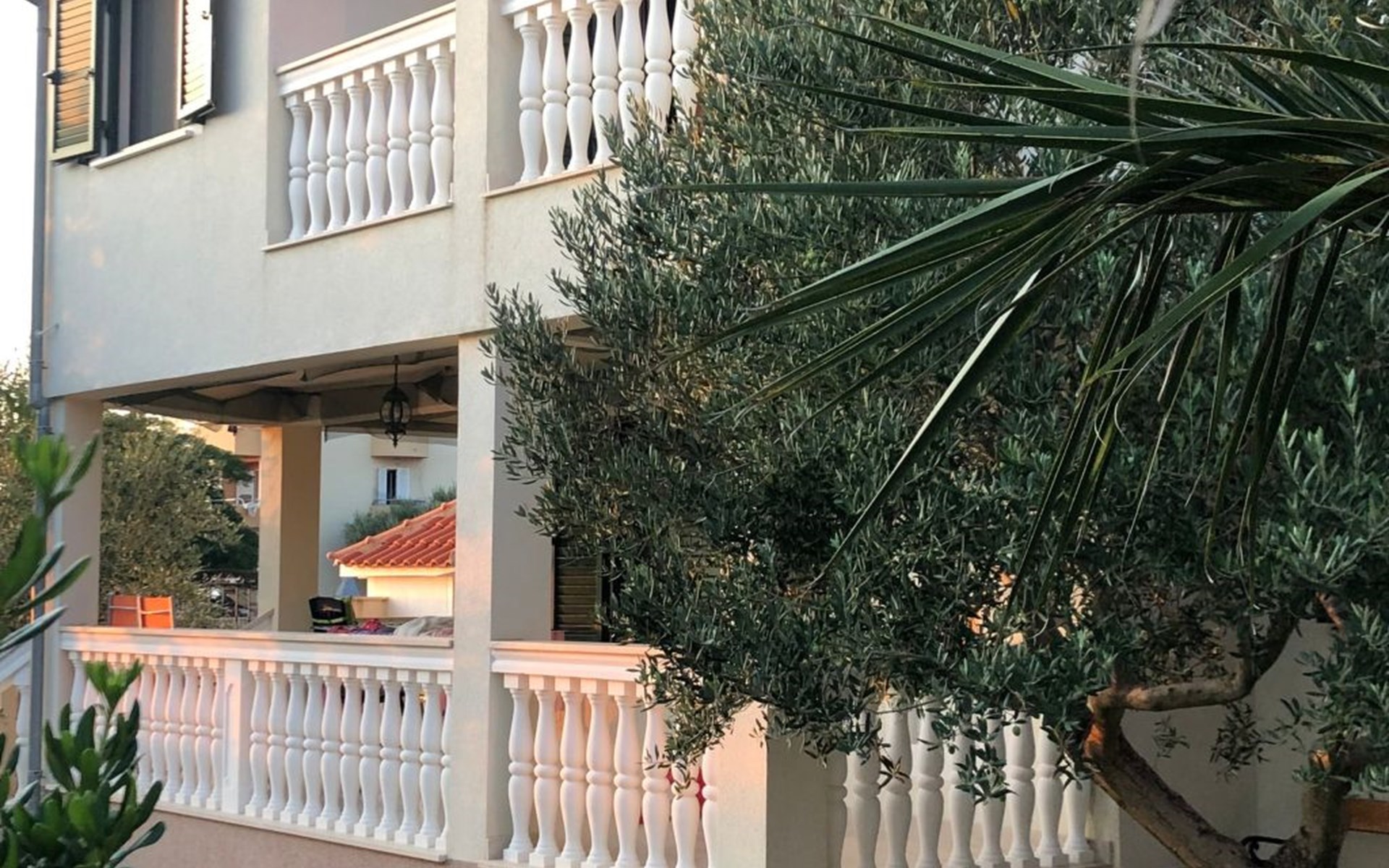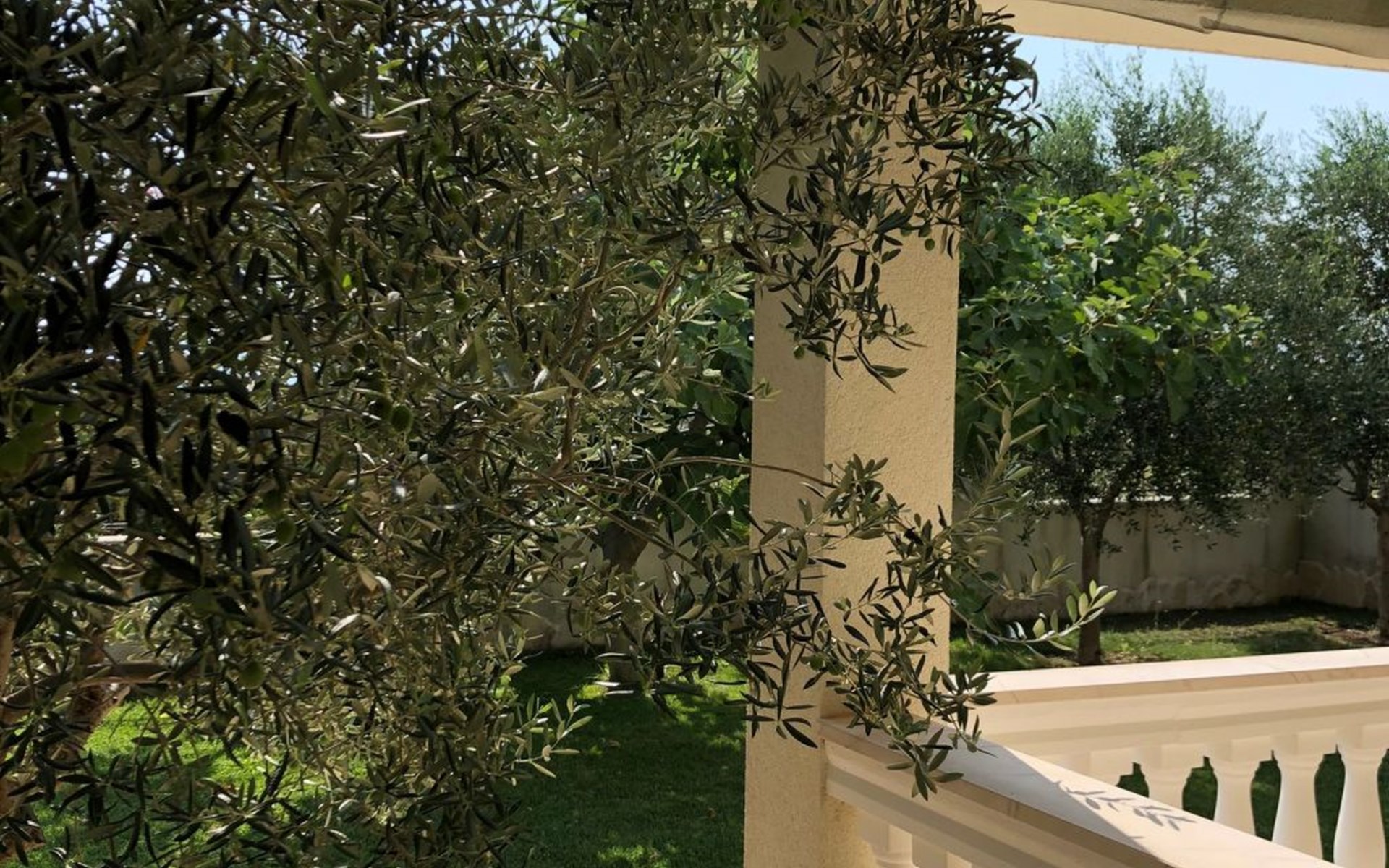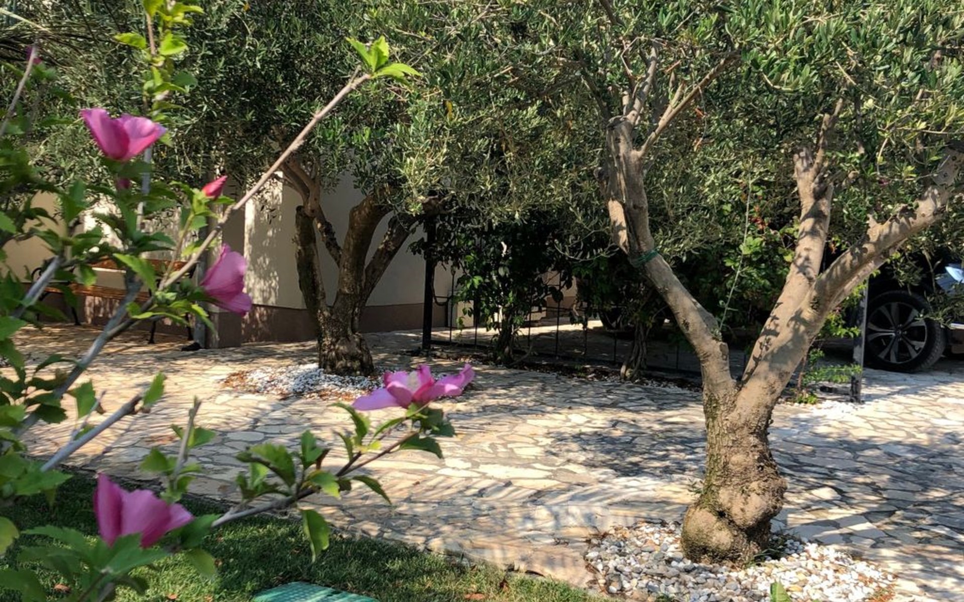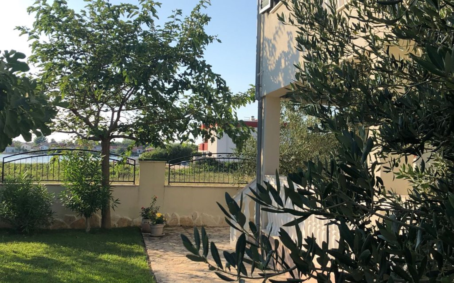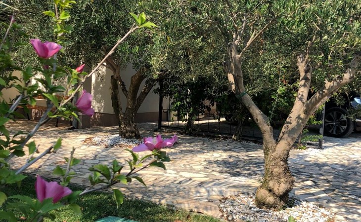 Das ganze Grundstück ist umzäunt. Auf dem Gelände finden Sie ein Carport für zwei Austos, einen Grillplatz und eine Gartendusche. Der Garten ist typisch mediterran und in der richtigen Jahreszeit können Sie honigsüße Feigen, Mandarinen oder Zitronen direkt vom Baum pflücken. Mehrere Olivenbäume, die hier wachsen gehören geschützt, da sie im Herbst einen erstklassigen Olivenöl spenden - eine Kostprobe ist Ihnen sicher :-). Im Garten, oder auf der Terrasse können Sie im Schatten, oder in der Sonne ihre Zeit zwischen den Sprüngen ins Meer genießen.