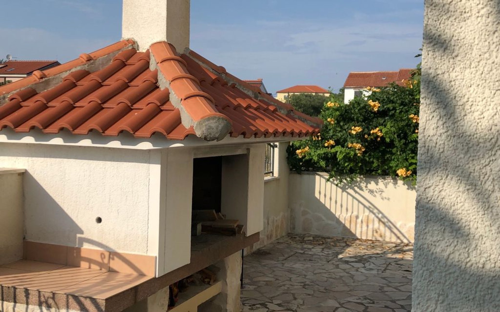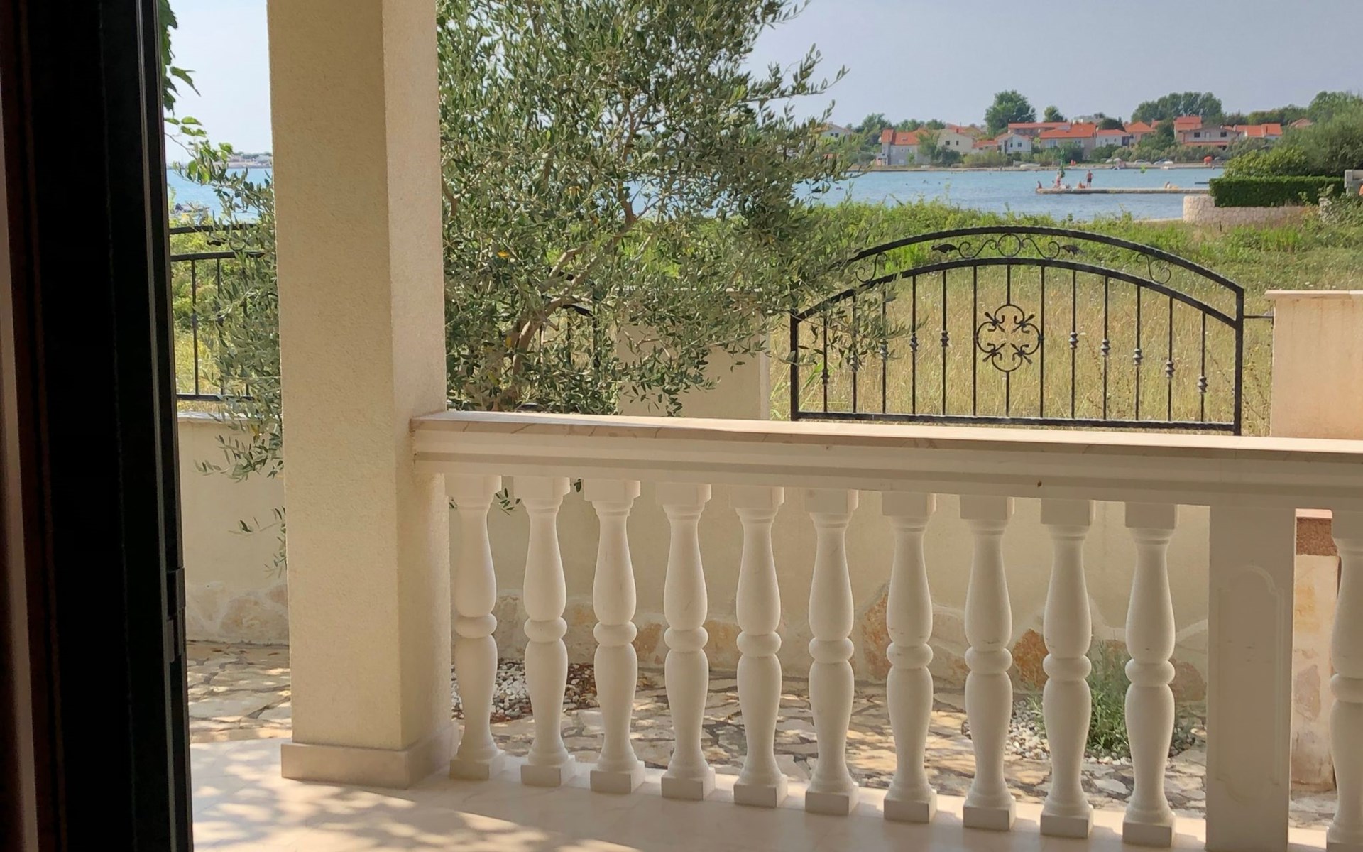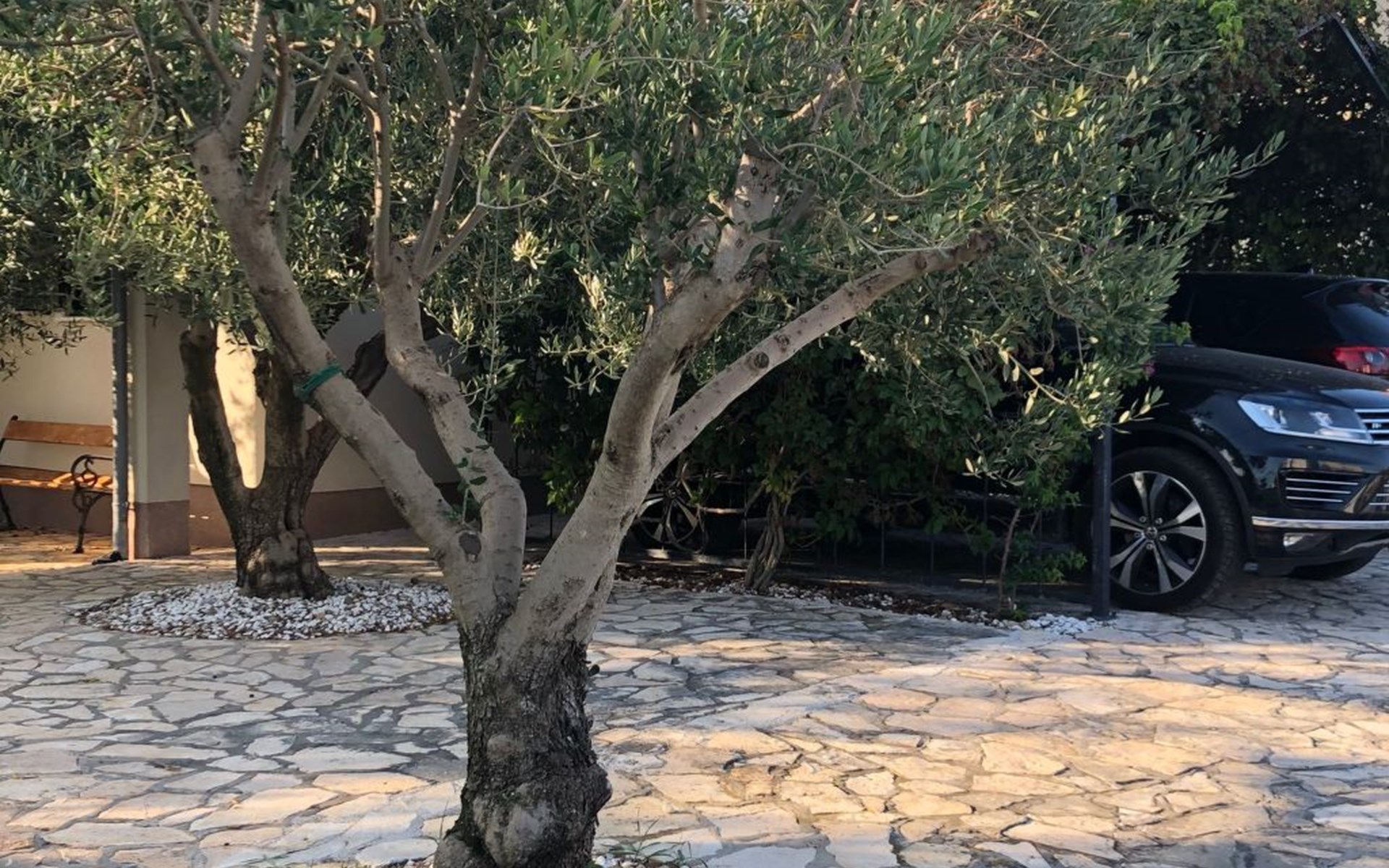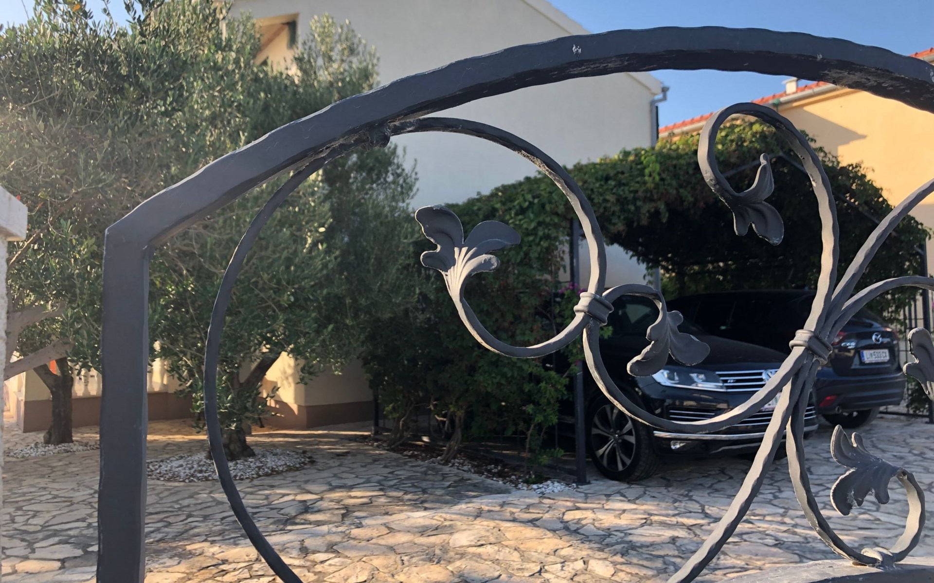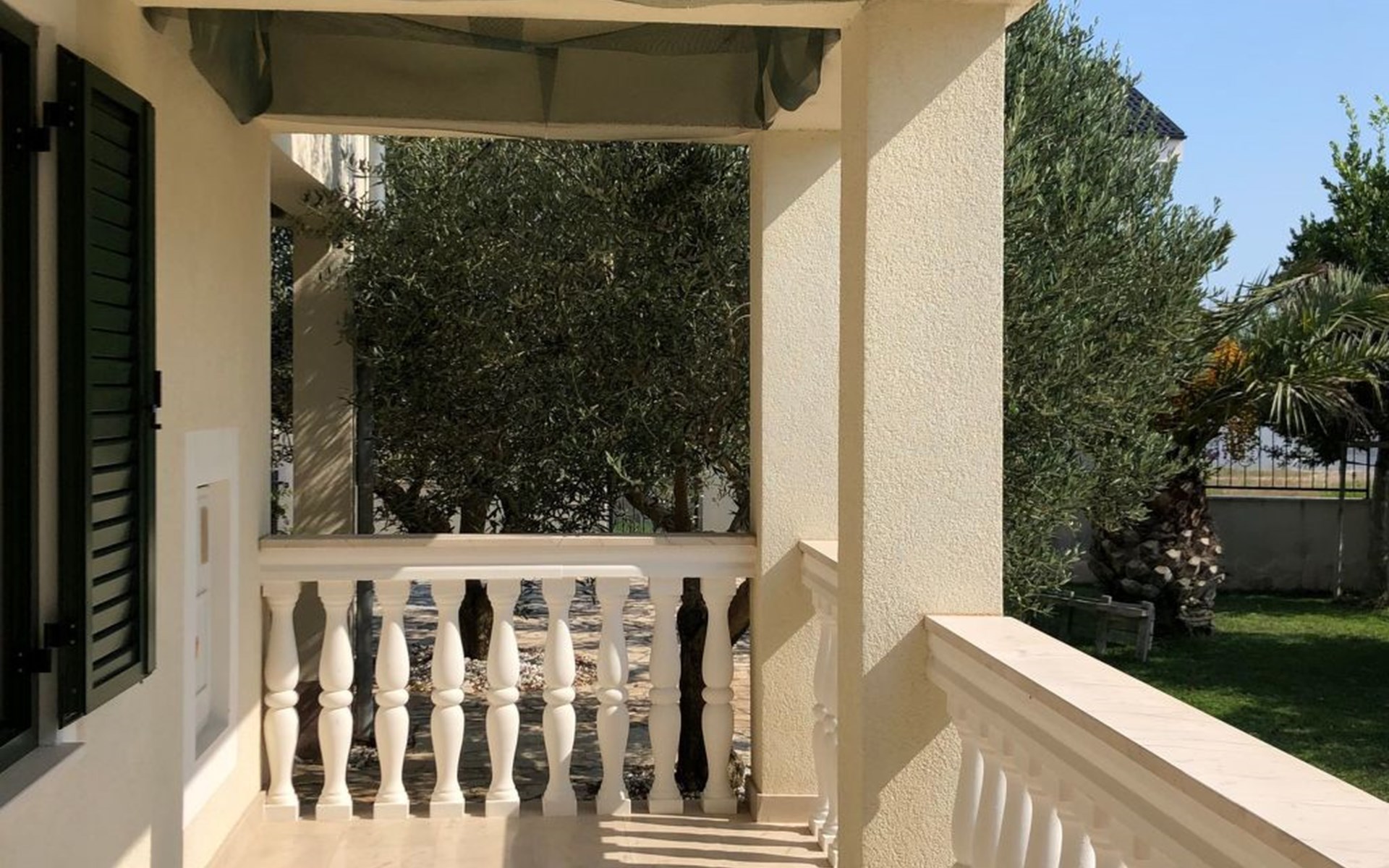 Das ganze Grundstück ist umzäunt. Auf dem Gelände finden Sie ein Carport für zwei Austos, einen Grillplatz und eine Gartendusche. Der Garten ist typisch mediterran und in der richtigen Jahreszeit können Sie honigsüße Feigen, Mandarinen oder Zitronen direkt vom Baum pflücken. Mehrere Olivenbäume, die hier wachsen gehören geschützt, da sie im Herbst einen erstklassigen Olivenöl spenden - eine Kostprobe ist Ihnen sicher :-). Im Garten, oder auf der Terrasse können Sie im Schatten, oder in der Sonne ihre Zeit zwischen den Sprüngen ins Meer genießen.