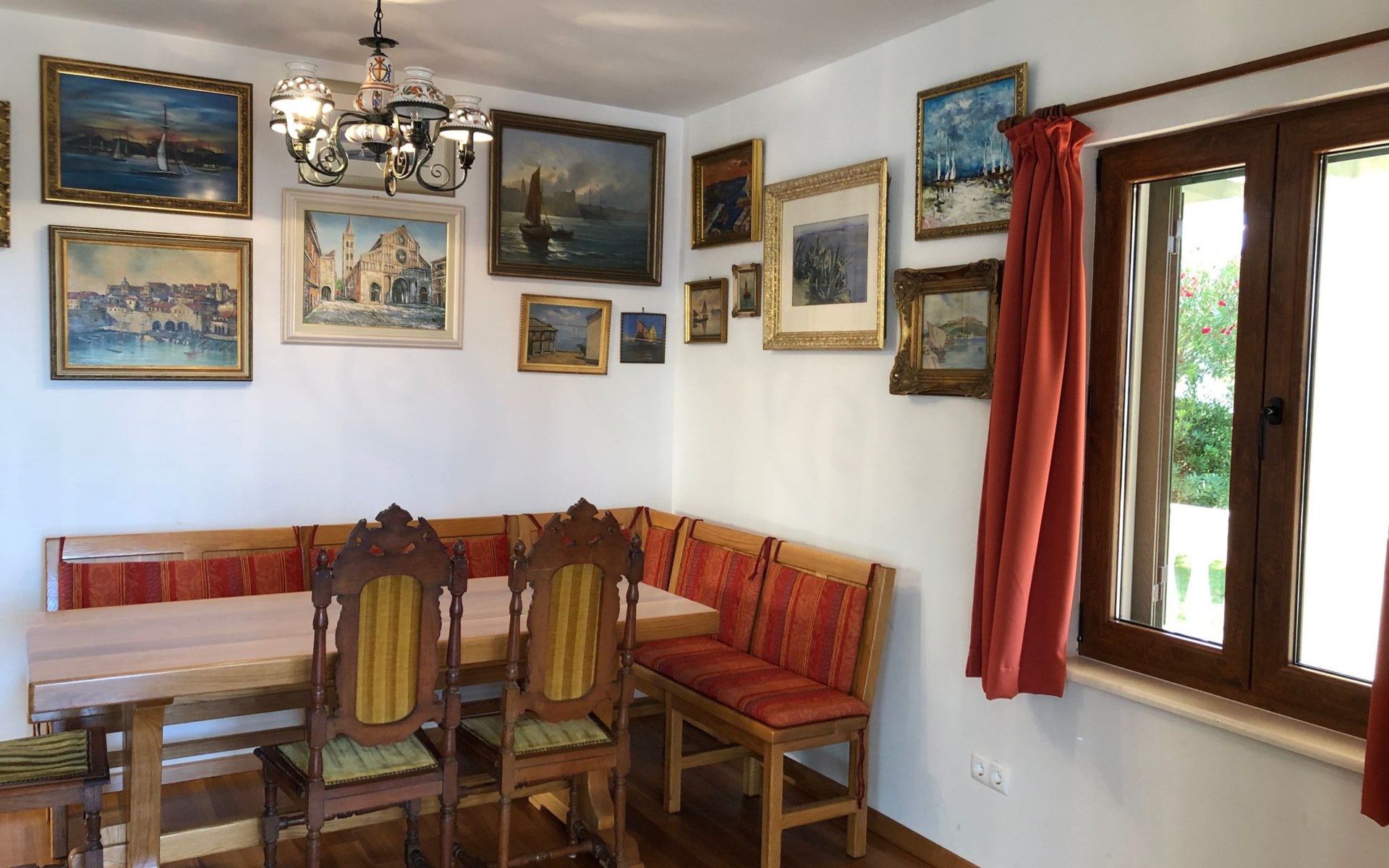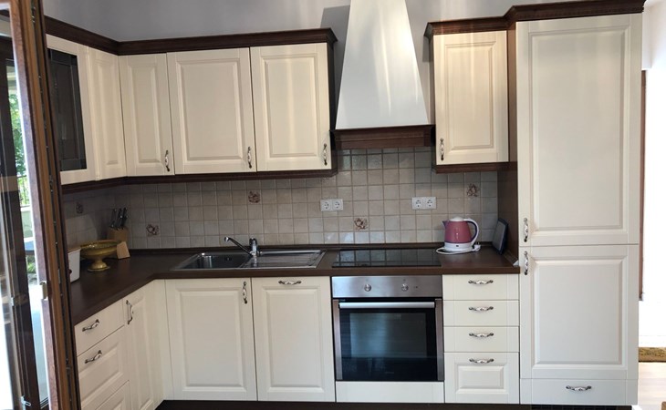 Die Villa ist mit sehr stilvollen und bequemen Möbeln ausgestattet. Aufbettung auf bis zu 9 Schlafplätze möglich. Ein Schlafzimmer mit einem Doppelbett ohne Fußteil befindet sich im Erdgeschoss. Aus diesem Zimmer können Sie an der Küche vorbei direkt auf die Terrasse rausgehen und in der frischen Brise das Mees bestaunen. Zwei Schlafzimmer befinden sich im ersten Stock und hier können Sie von zwei Balkonen aus die Adriapanorama bewundern, Es stehen Ihnen drei Badezimmer, eins im Erdgeschoss und zwei im ersten Stock zur Verfügung, alle mit einer Duschkabine, einem Waschbecken und mit einer Toilette. Im Erdgeschoss finden Sie ein Wohnzimmer und eine geräumige Wohnküche, im ersten Stock einen Lese- und Ruheraum vor. Zwei Fernsehr (SAT-TV) haben wir im Wohnzimmer und im Schlafzimmer im ersten Stock installiert.