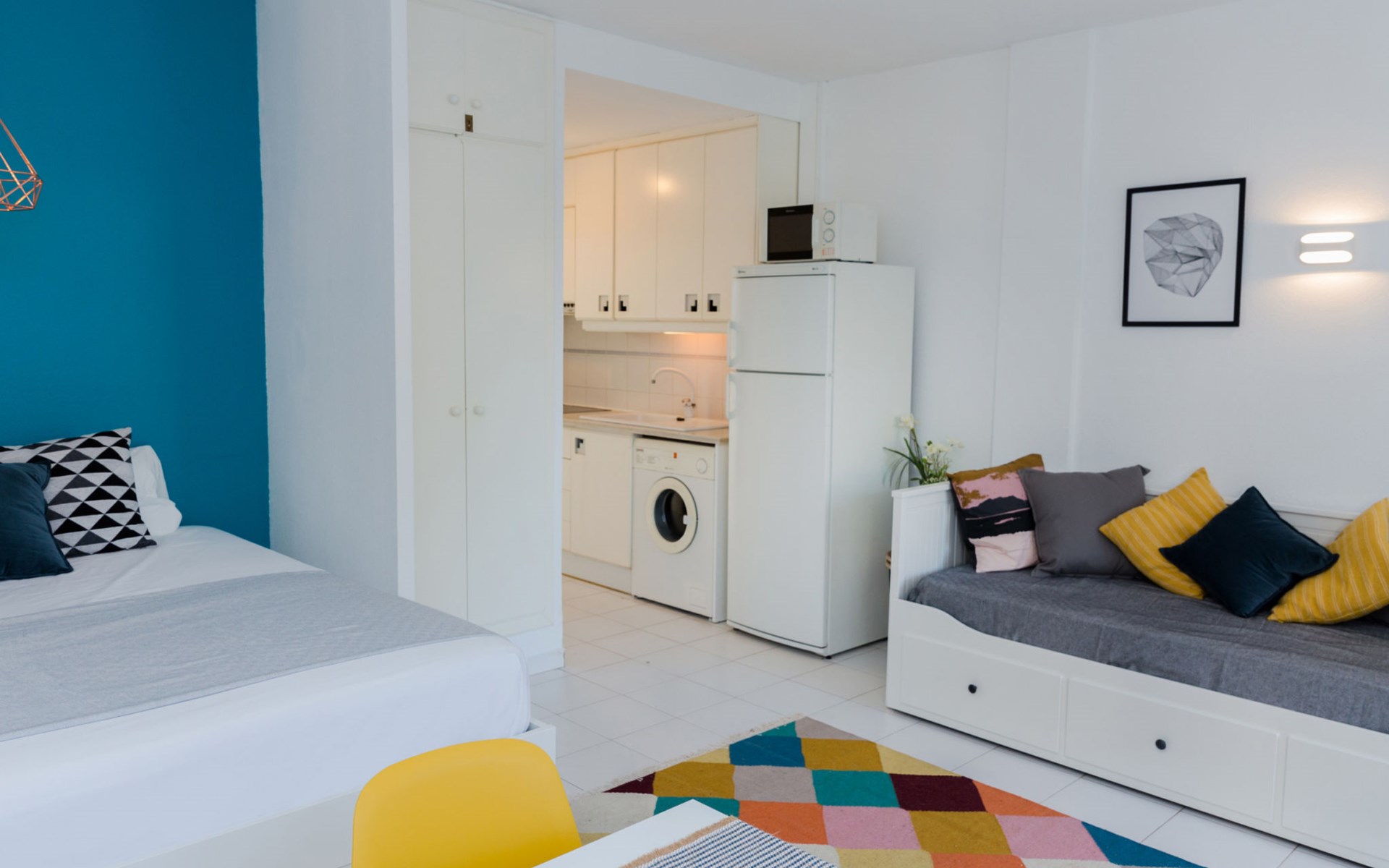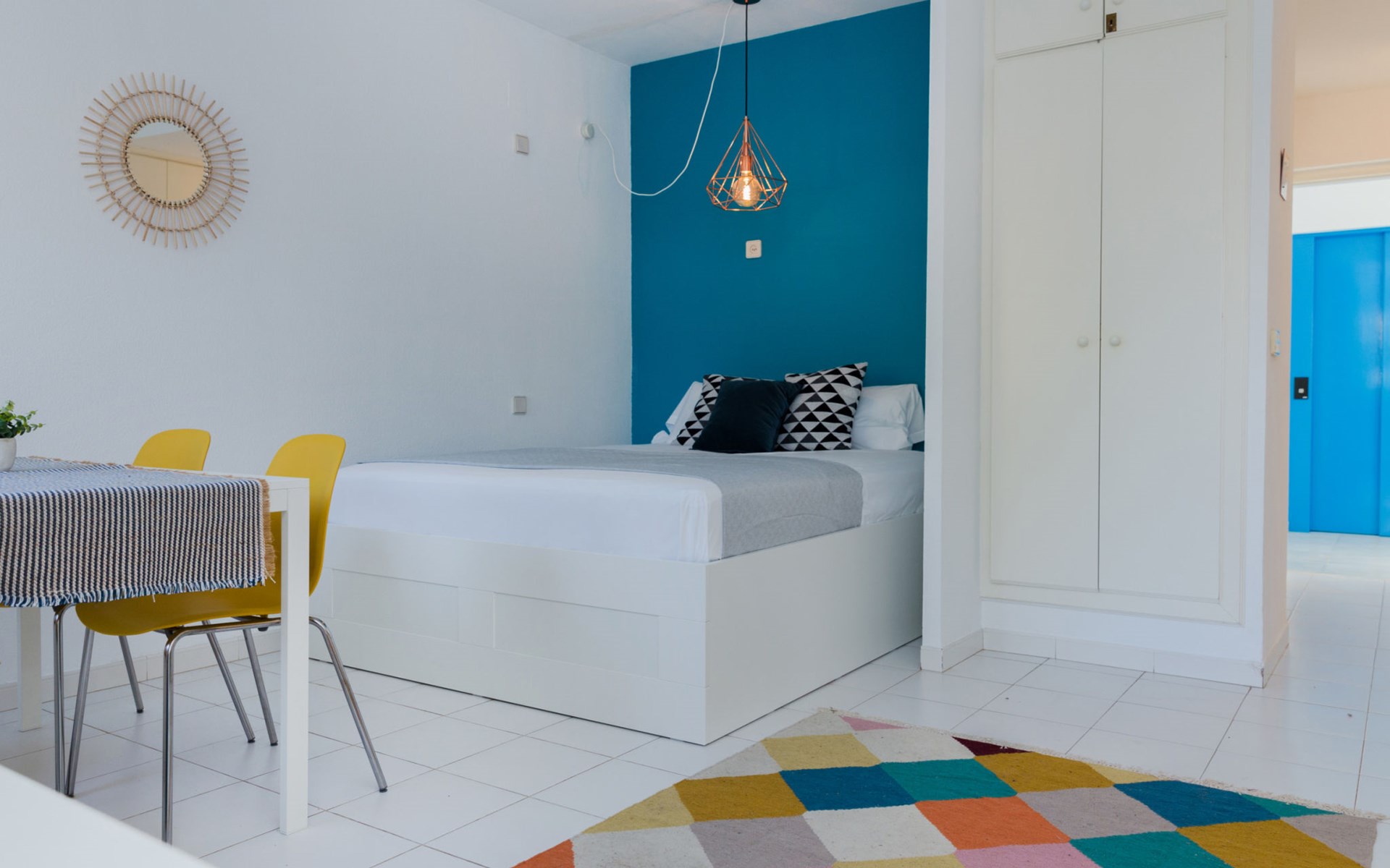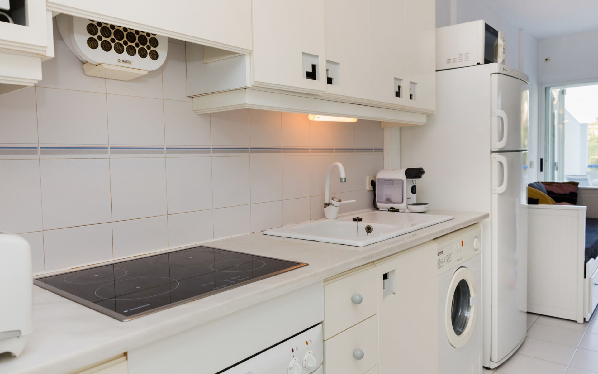 Sehr schönes, gemütliches Appartementhaus "Cala Blanca Denia". Im Ort, 5 km vom Zentrum von Dénia, ruhige, sonnige Lage, vom Meer, 400 m vom Strand. Zur Mitbenutzung: grosser, schöner, gepflegter Garten mit Rasen, Schwimmbad eckig (34 x 15 m, 40 - 180 cm tief, saisonale Verfügbarkeit: 01.Jan. - 31.Dez.). Aussendusche, Parkplatz auf dem Grundstück. Supermarkt 600 m, Restaurant 140 m, Bar 150 m, Bushaltestelle 400 m, Bahnstation 6.5 km, Fähre 6.5 km, Sandstrand "Playa Els Molins" 400 m. Sporthafen 5 km, Surfschule, Segelschule 500 m. Der Besitzer akzeptiert keine Jugendgruppen.