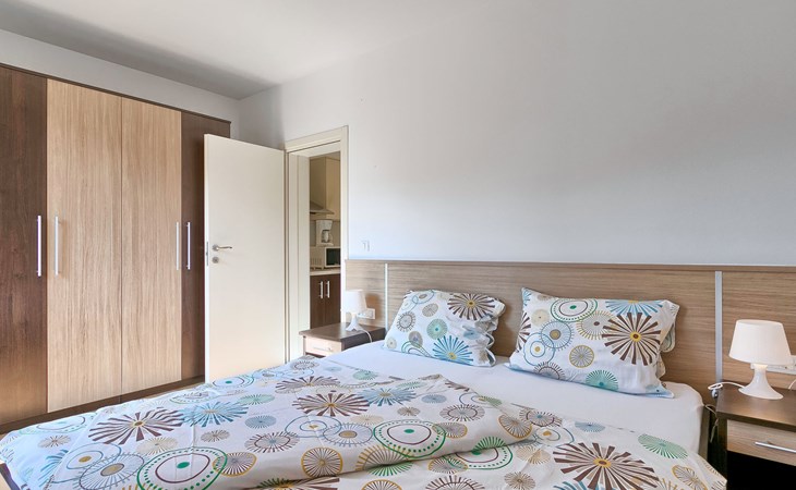 Mehrfamilienhaus "Villa Alpa". Im Ortsteil Punta, 1 km vom Zentrum von Umag, ruhige, sonnige Lage, 400 m vom Meer, 400 m vom Strand. Zur Mitbenutzung: Grundstück 730 m2 (eingezäunt), kleiner Garten, Aufstellpool (2 x 2 m, saisonale Verfügbarkeit: 29.Mar. - 15.Nov.). Gartenmöbel. Im Hause: Internetzugang, Trampolin, Dachterrasse. Zur Verfügung: Fahrräder (extra). Parkplatz beim Haus auf dem Grundstück. Einkaufsgeschäft, Restaurant 300 m, Bushaltestelle 1.9 km, Kieselstrand, Felsstrand 400 m. Golfplatz (18 Loch) 8 km, Tennis 500 m, Reitstall 1.5 km. Schwimmbad zur Mitbenutzung ist ein Sprudelbad für 6 Personen, das zweimal am Tag eine Stunde pro Wohnung benutzt werden kann.