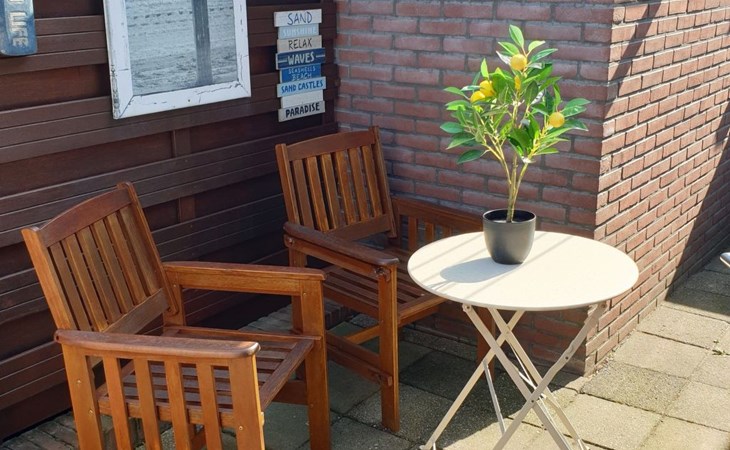 Auf der Rückseite des Sommerhauses sind Sie völlig ungestört, mit Zugang sowohl von der Küche als auch über einen Seiteneingang. Hier können Sie in Ruhe einen Kaffee trinken oder ein Sandwich essen.