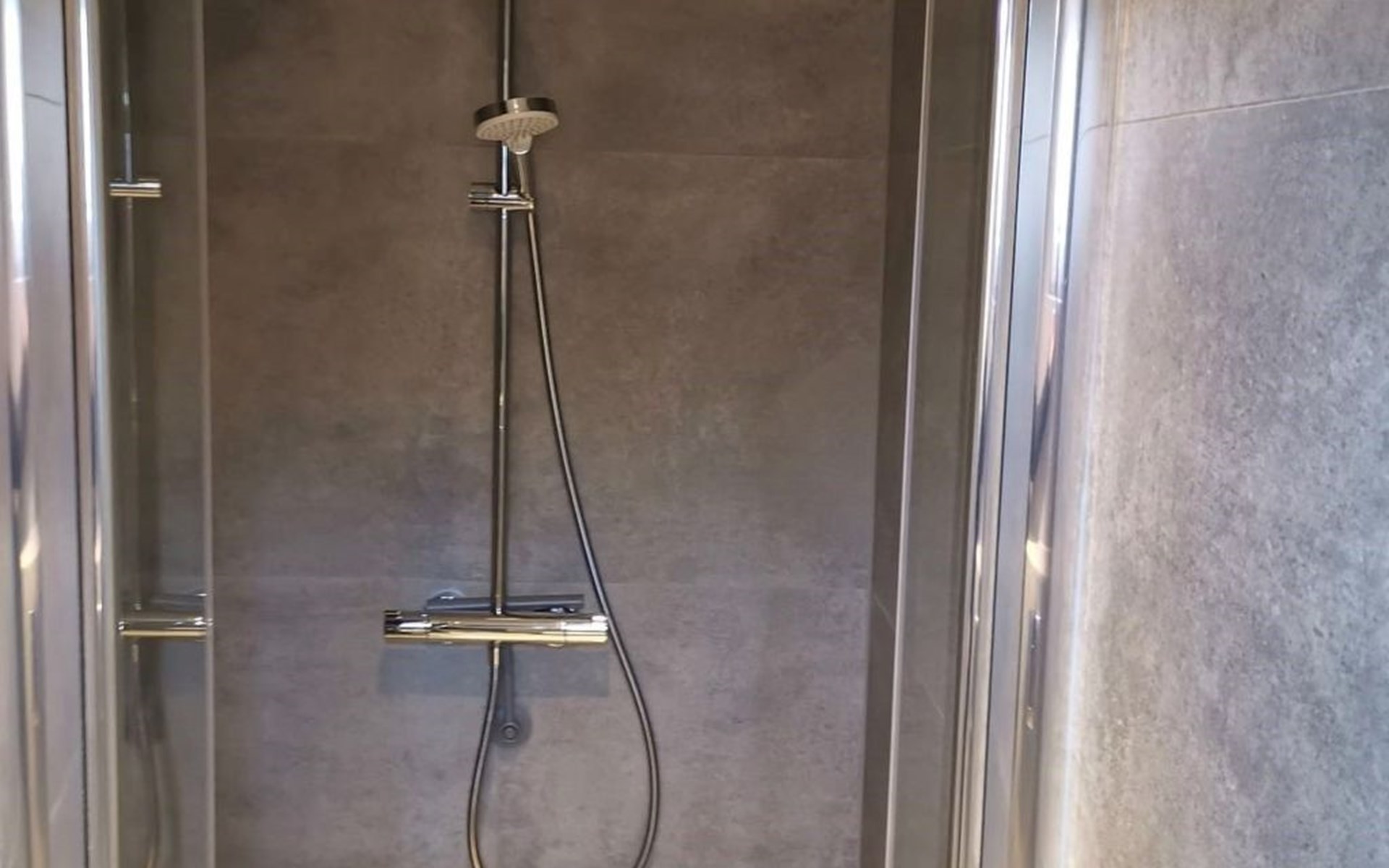 Wenn Sie das Haus betreten, kommen Sie zuerst in den Flur, wo sich die Dusche und die Toilette befinden.