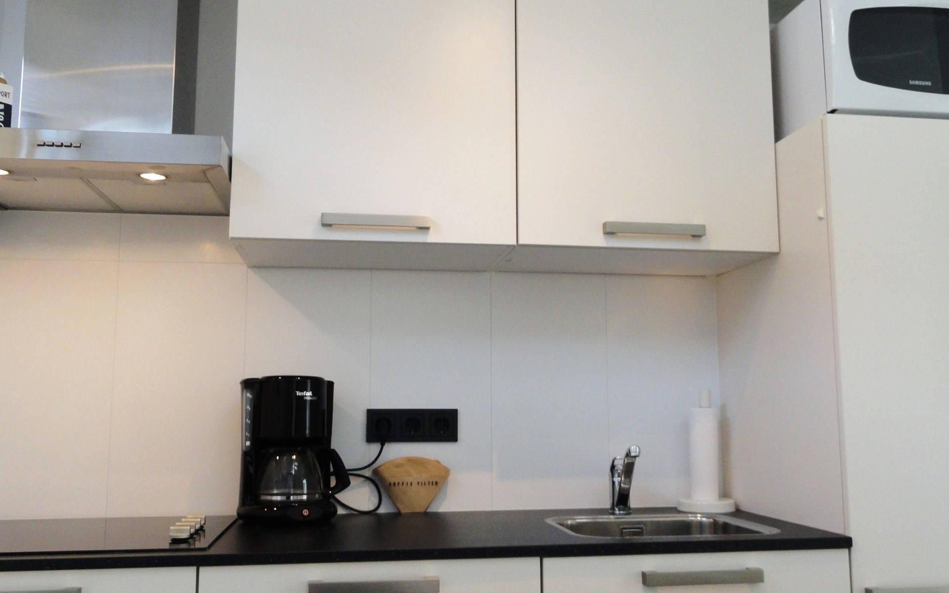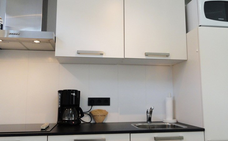 Die Küche ist mit einem Combi-Magnetron, einem Kühlschrank mit Gefrierfach, einer Kaffeemaschine und einer Filterkaffeemaschine, einem Brot/Toaster, einem Mixer und Besteck ausgestattet.