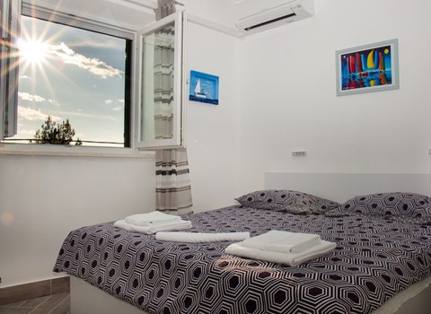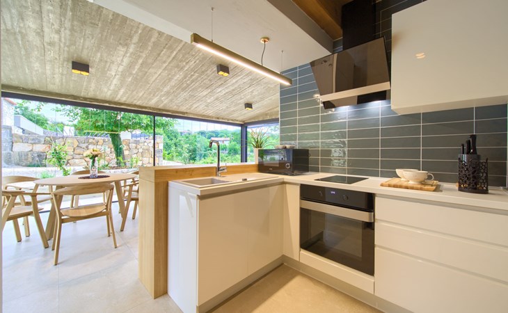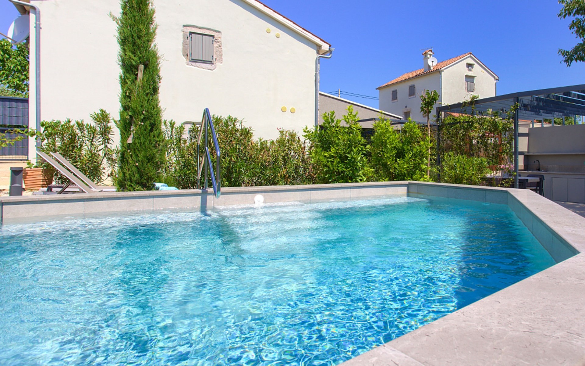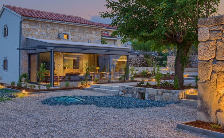 Rustikales, komfortables Einfamilienhaus "Jerini The Barn", auf 2 Stockwerken. Im Weiler Bajčići, 10 km vom Zentrum von Krk, ruhige, sonnige Lage, 5.5 km vom Meer, im Grünen. Zur Alleinbenutzung: Grundstück 1'000 m2, Pflanzen und Bäumen, Schwimmbad (17 m2, 145 cm tief, saisonale Verfügbarkeit: 01.Mai. - 31.Okt.) mit Innentreppe und Salzelektrolyse-Reinigungssystem. Ungleichmässige Schwimmbadform, Aussendusche, Pergola (10 m2), Grill, Poolpflege durch den Besitzer/Gärtner. Im Hause: Internetzugang, Klimaanlage. Parkplatz (für 3 Autos) beim Haus auf dem Grundstück. Einkaufsgeschäft 450 m, Supermarkt 9 km, Restaurant 550 m, Bushaltestelle 400 m, Kieselstrand 6 km. Der Besitzer akzeptiert keine Jugendgruppen. Bitte beachten: Flugplatz 22 km vom Haus.